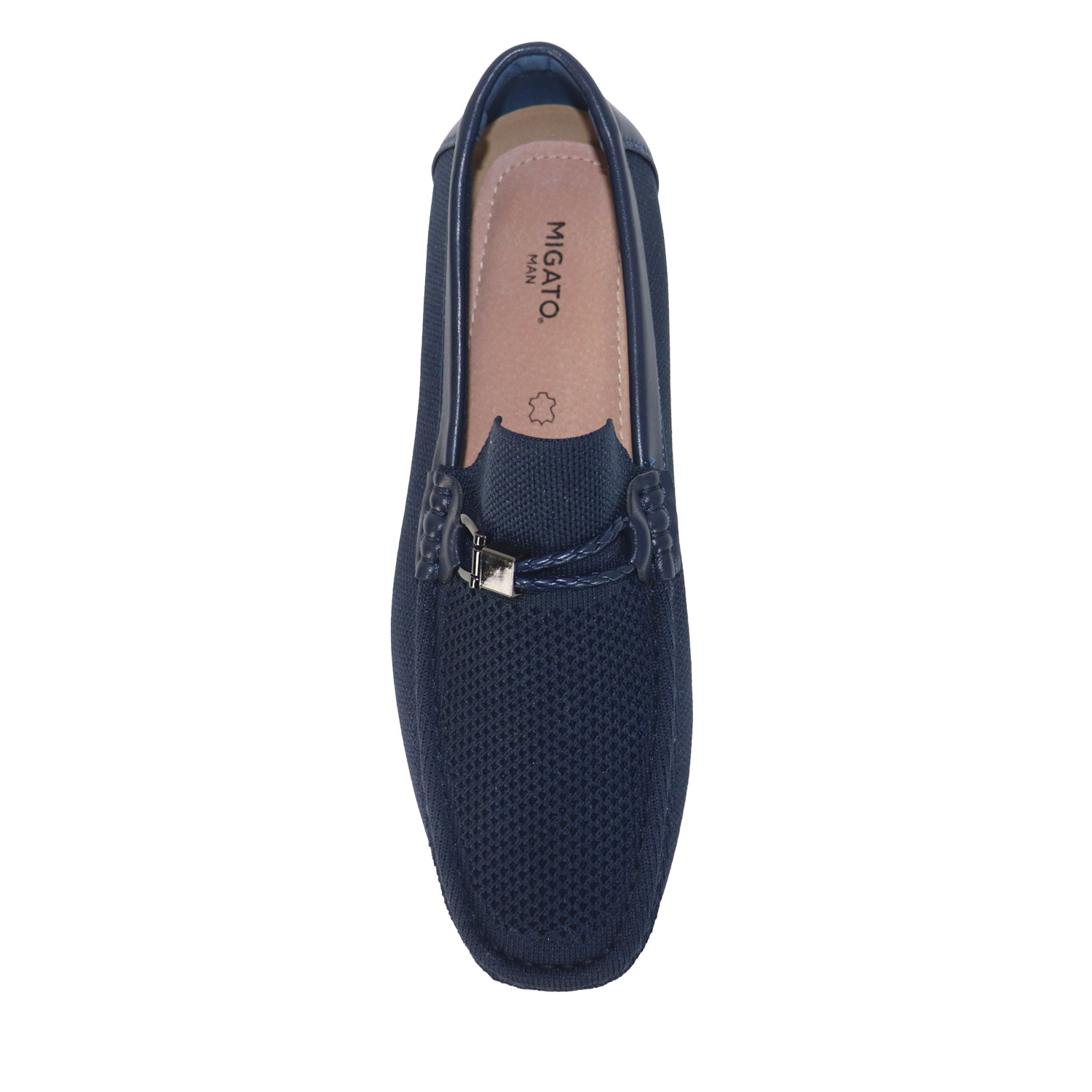 Migato ανδρικό μοκασίνι, σε μπλε χρώμα, κατασκευασμένο από ύφασμα. Ύψος τακουνιού 1εκ.