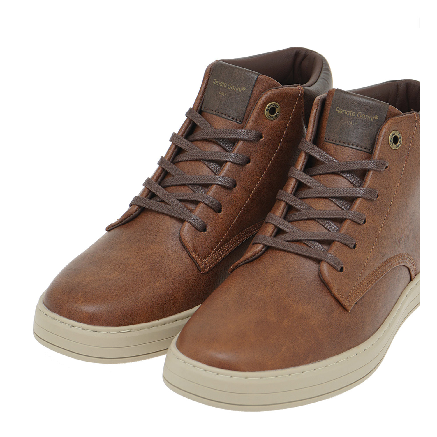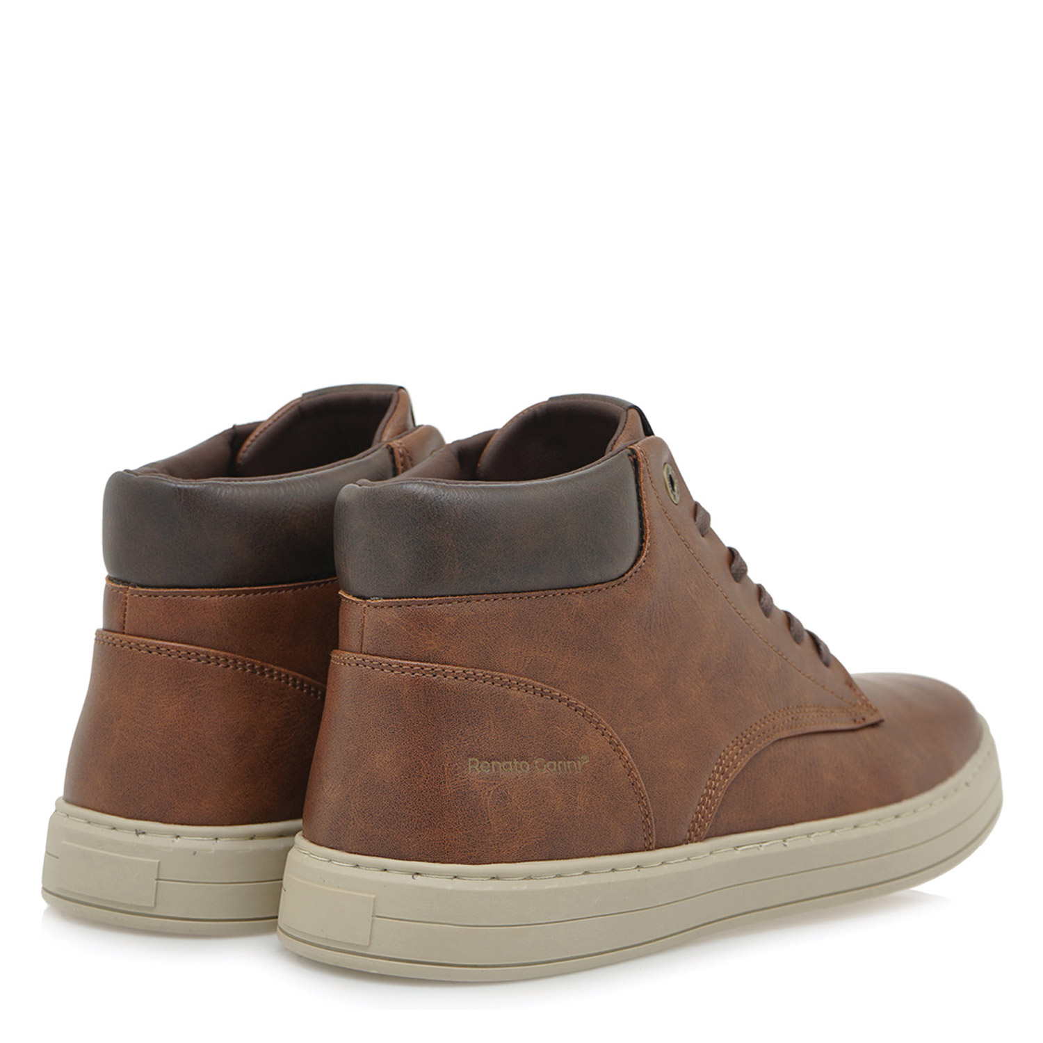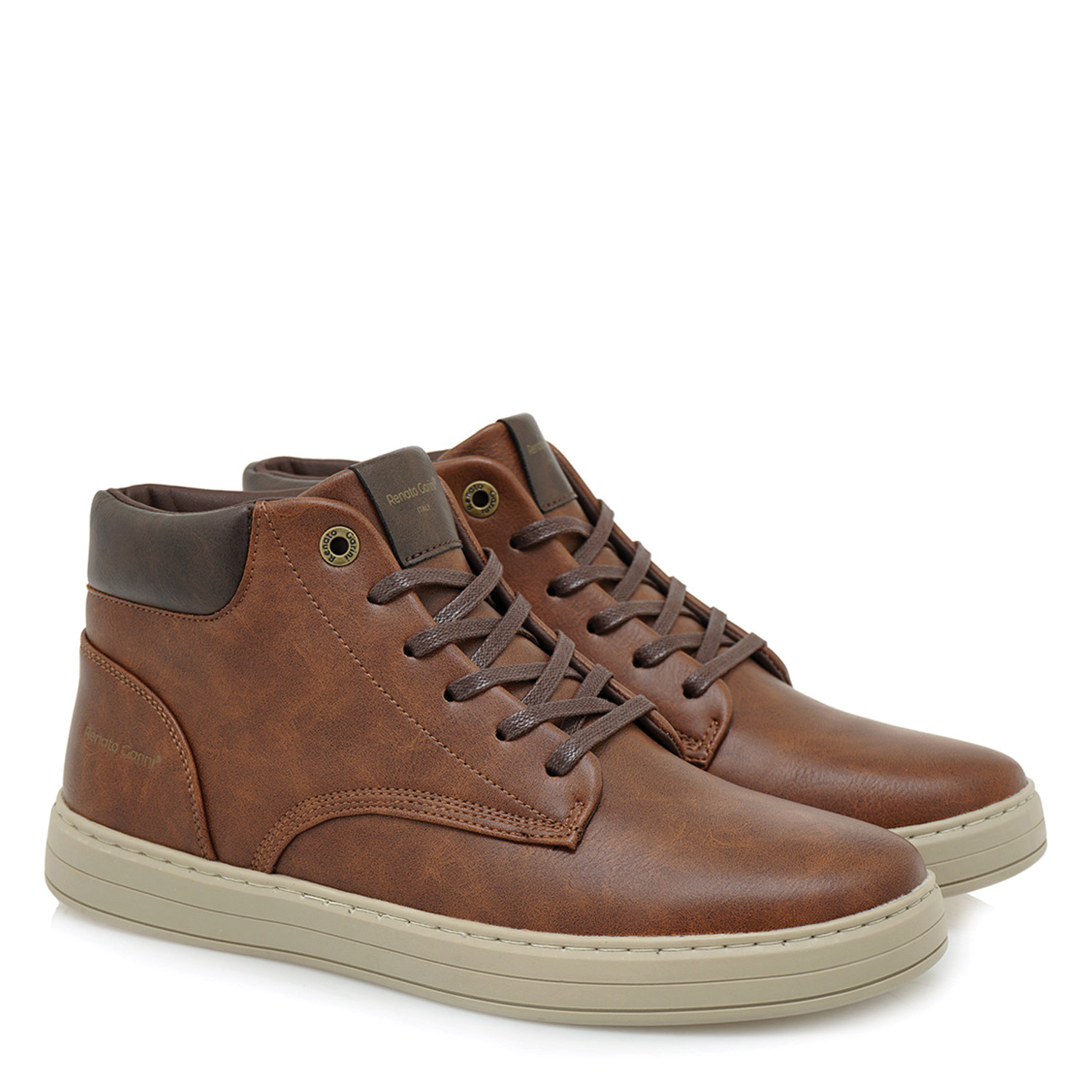 Renato Garini ανδρικό μποτάκι, σε ταμπά χρώμα, κατασκευασμένο από οικολογικό δέρμα. Ύψος σόλας 3εκ.