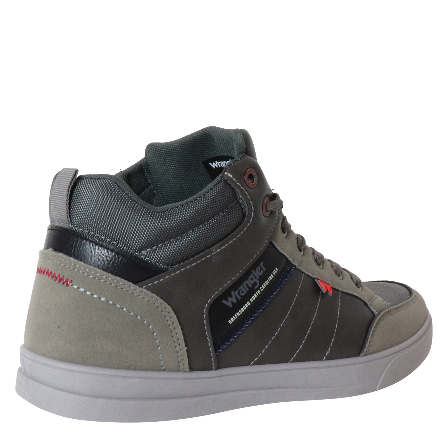 Wrangler ανδρικό μποτάκι, χρώματος ανθρακί, κατασκευασμένο από οικολογικό δέρμα. Ύψος σόλας 2.4εκ.
