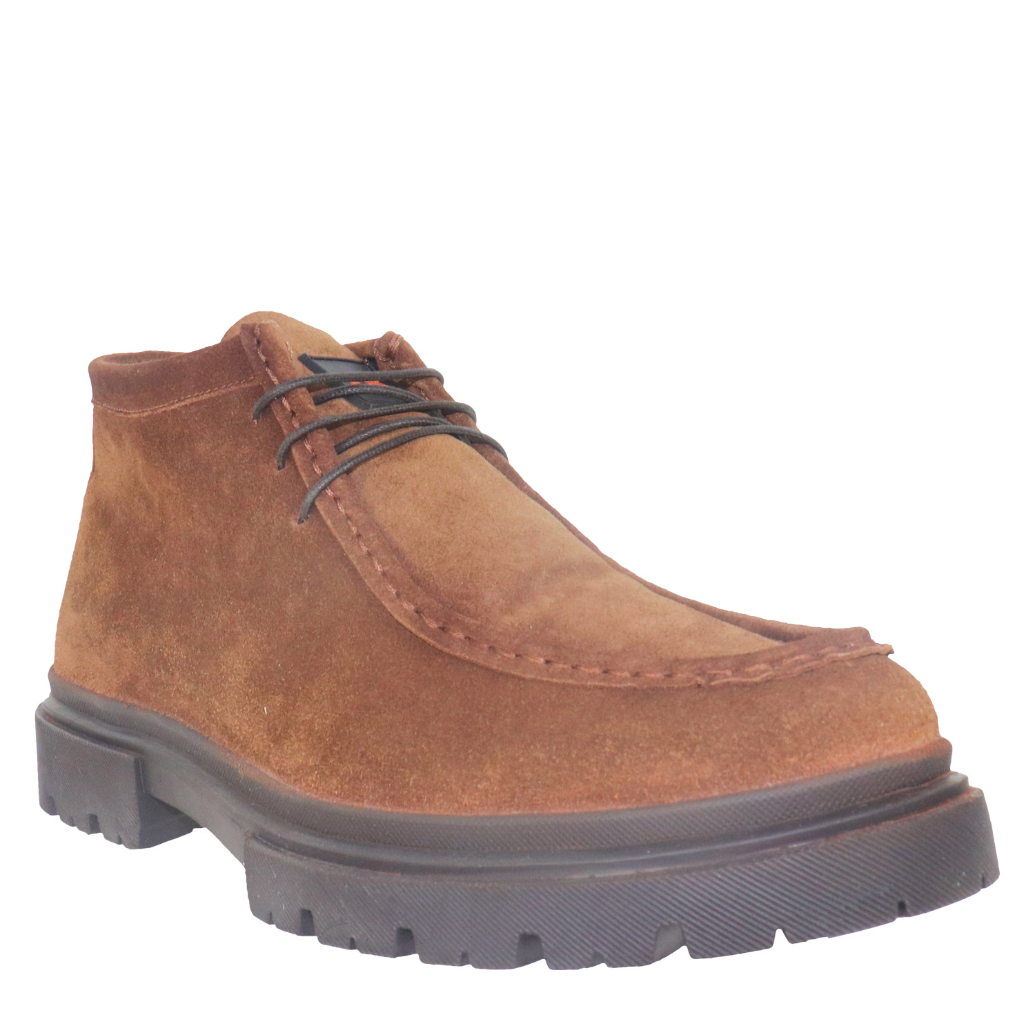 Gianna Kazakou ανδρικό μποτάκι, σε καφέ χρώμα, κατασκευασμένο από δέρμα καστόρι. Ύψος σόλας 3.5εκ.