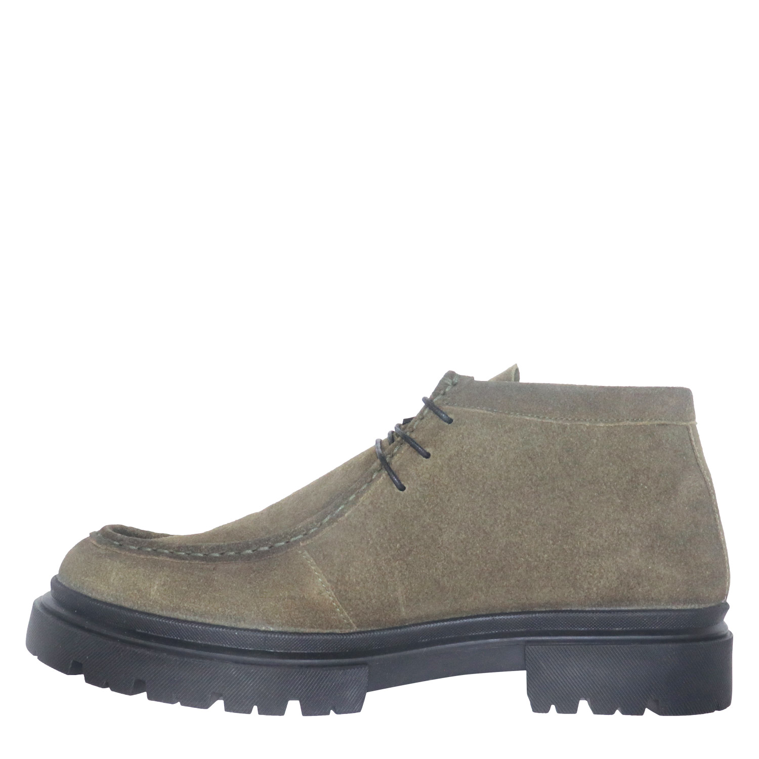 Gianna Kazakou ανδρικό μποτάκι, σε λαδί χρώμα, κατασκευασμένο από δέρμα καστόρι. Ύψος σόλας 3.5εκ.