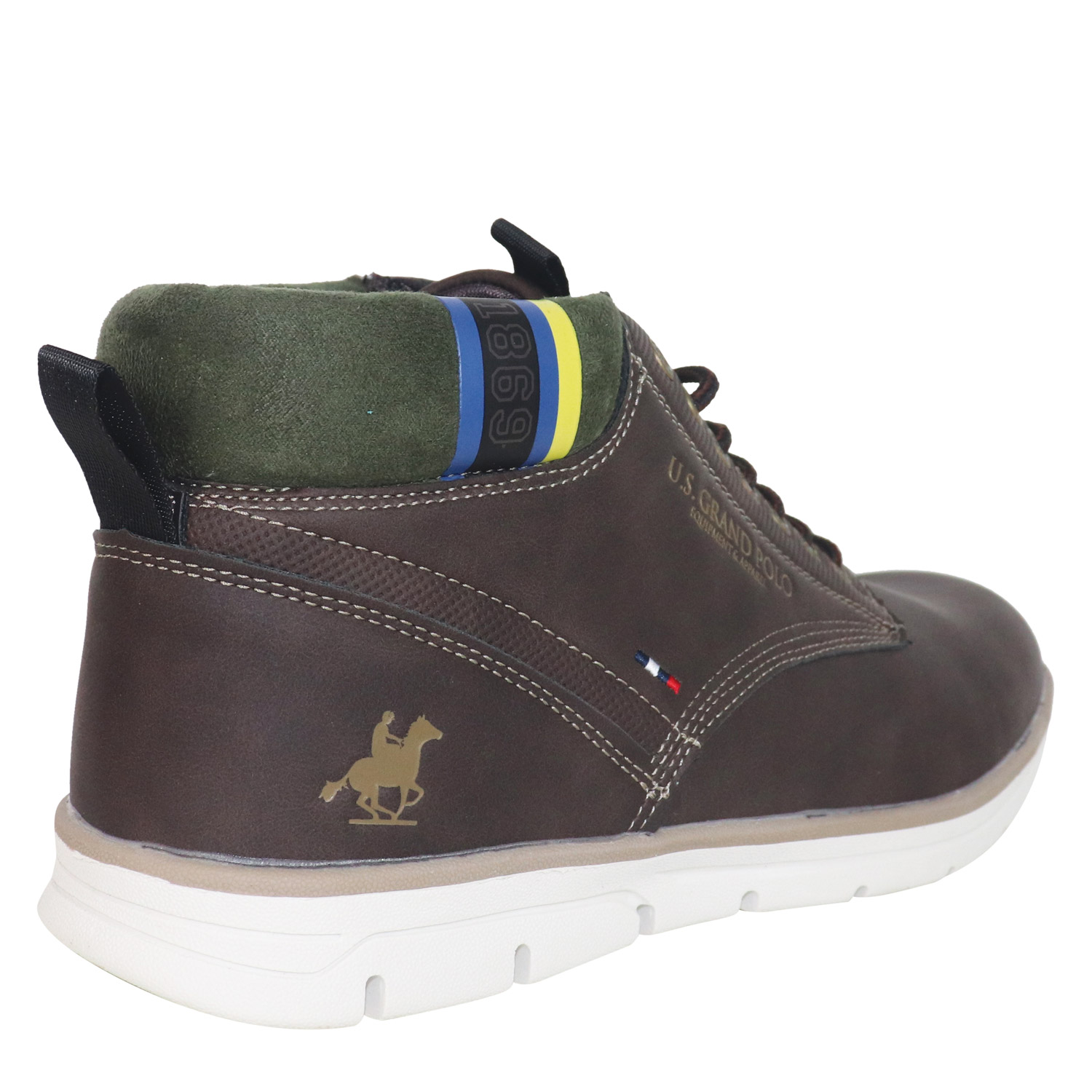 U.S. Grand Polo ανδρικό μποτάκι, σε καφέ χρώμα, κατασκευασμένο από οικολογικό δέρμα. Ύψος σόλας 3εκ.