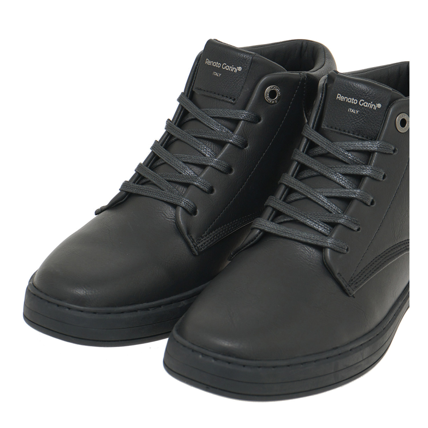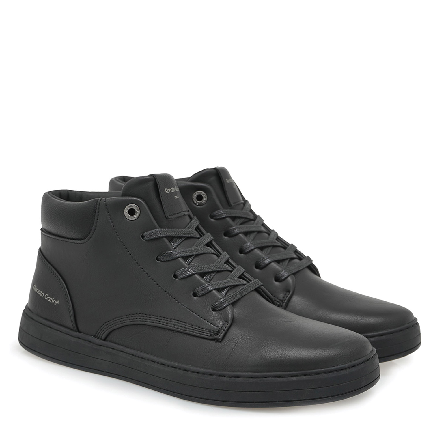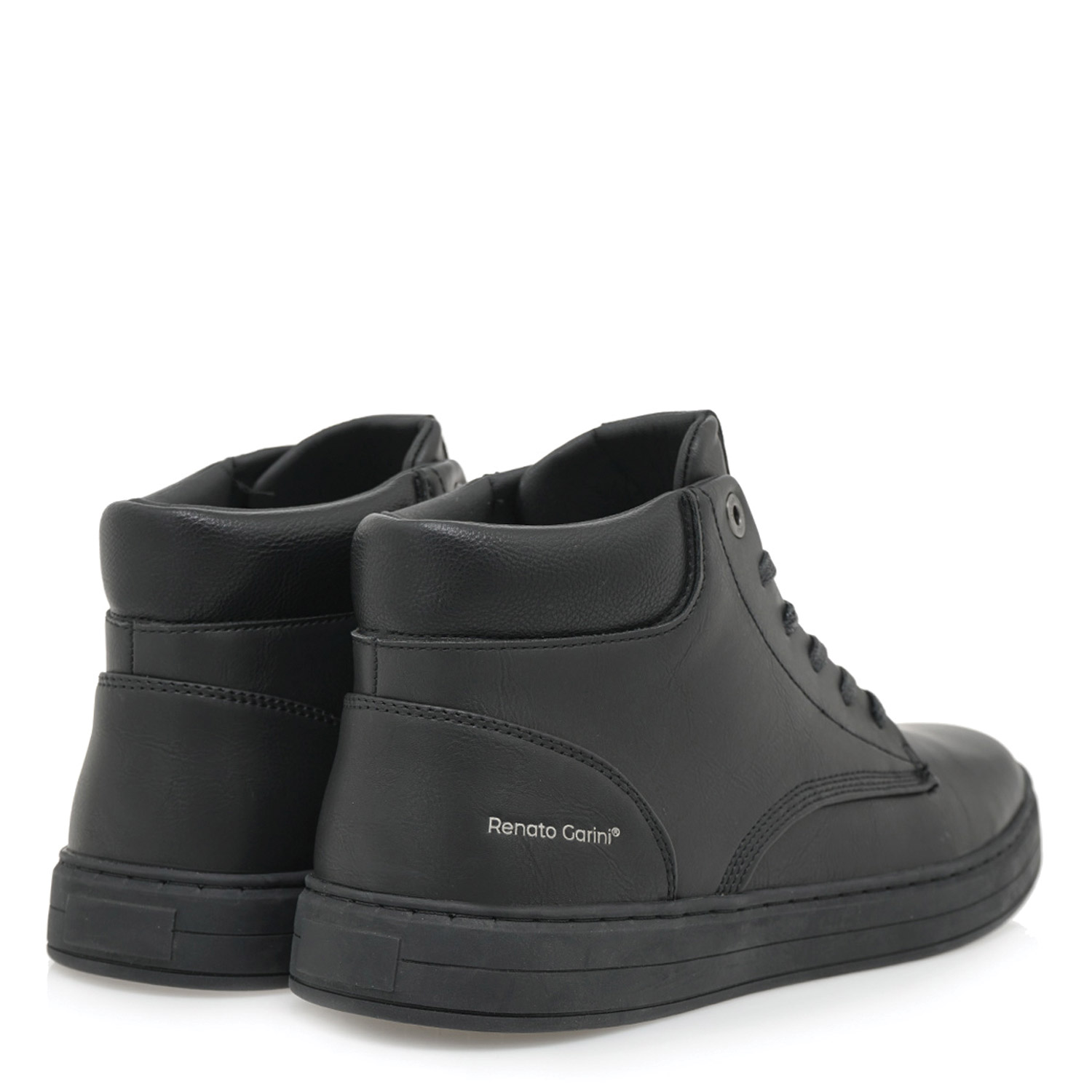 Renato Garini ανδρικό μποτάκι, σε μαύρο χρώμα, κατασκευασμένο από οικολογικό δέρμα. Ύψος σόλας 3εκ.