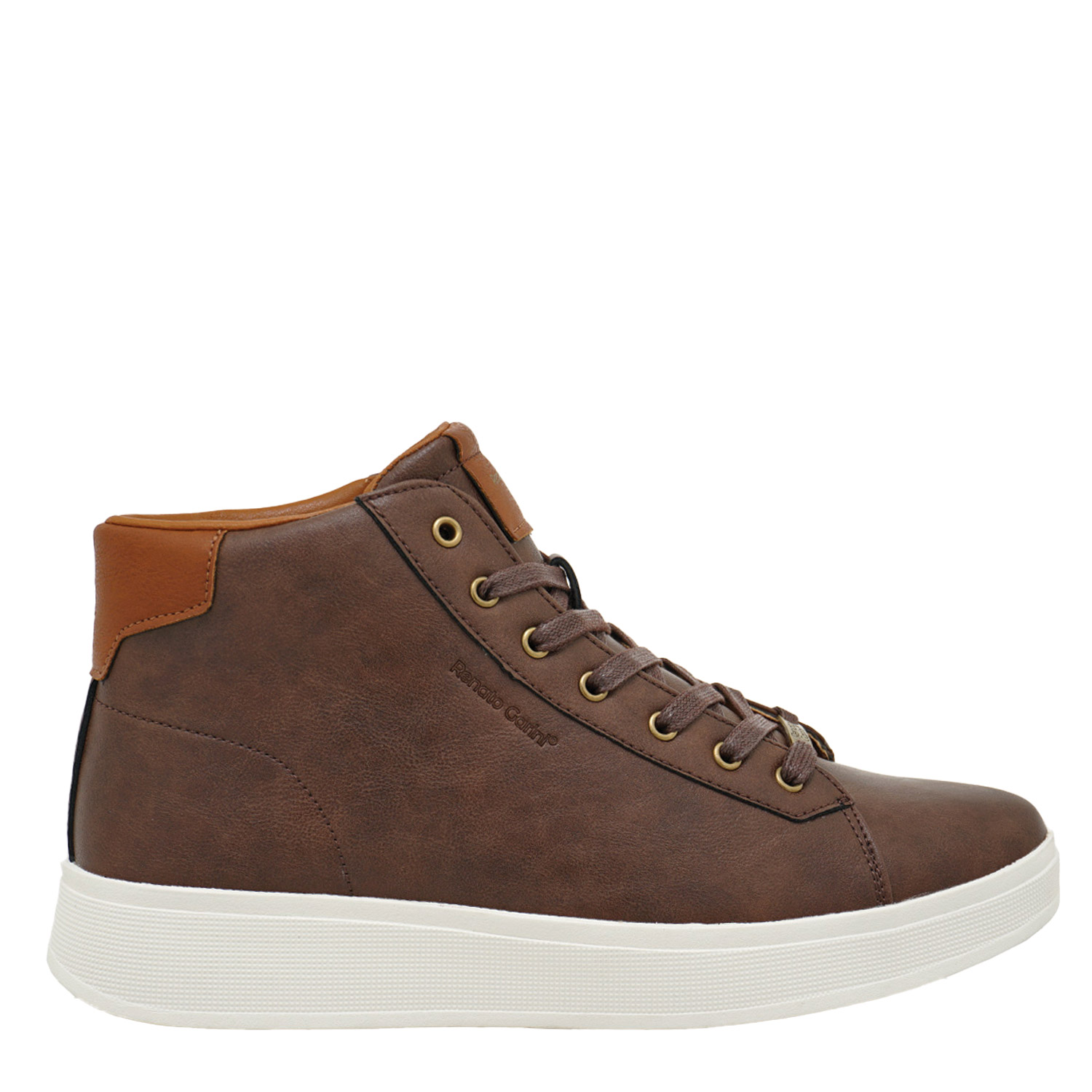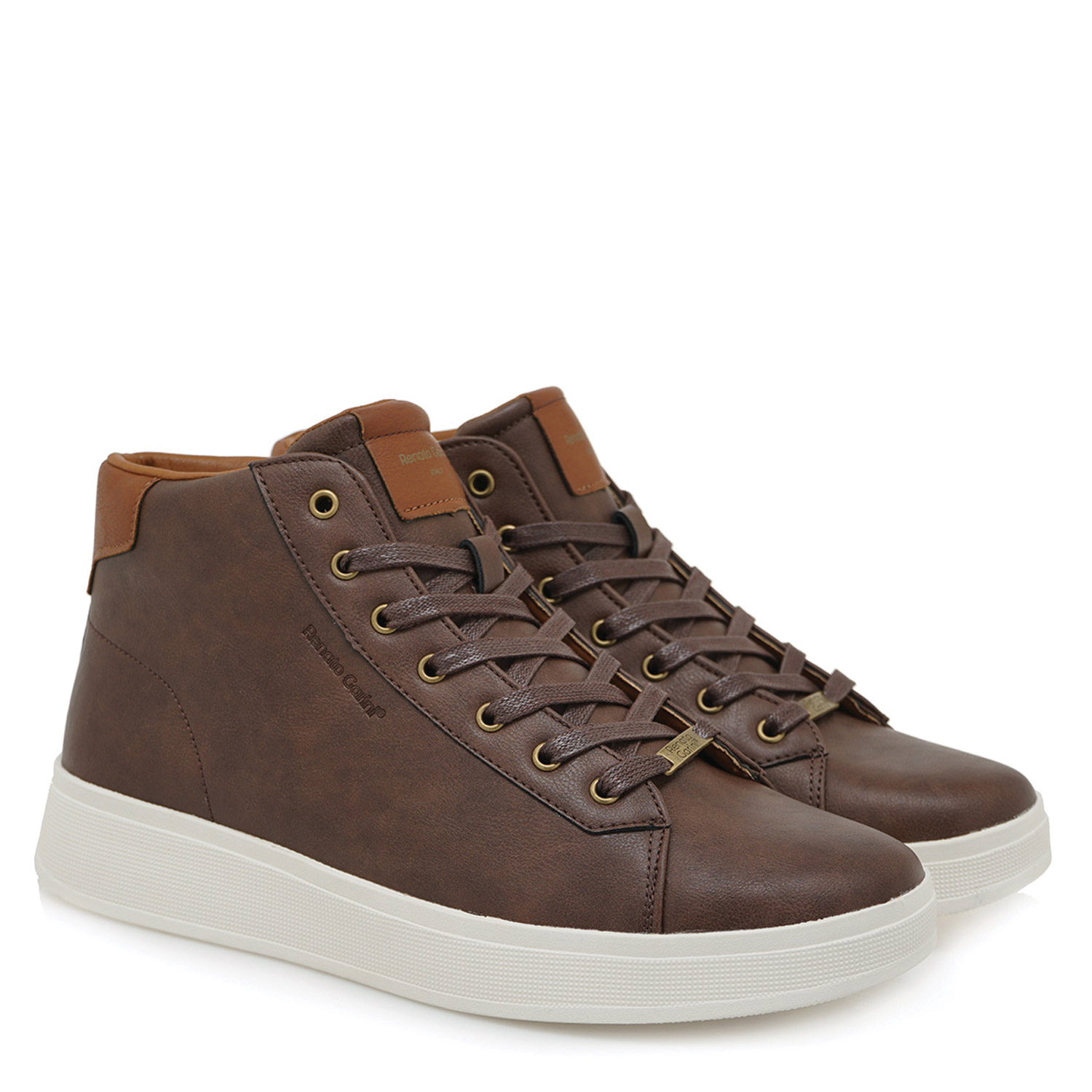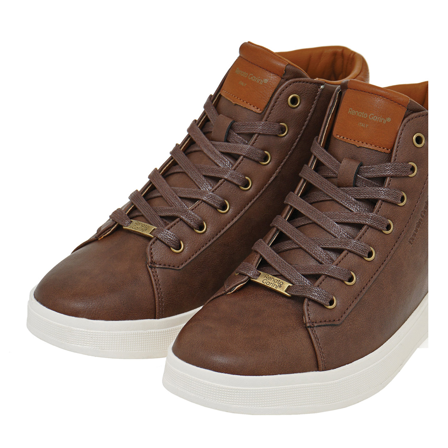 Renato Garini ανδρικό μποτάκι, σε καφέ χρώμα, κατασκευασμένο από οικολογικό δέρμα. Ύψος σόλας 4εκ.