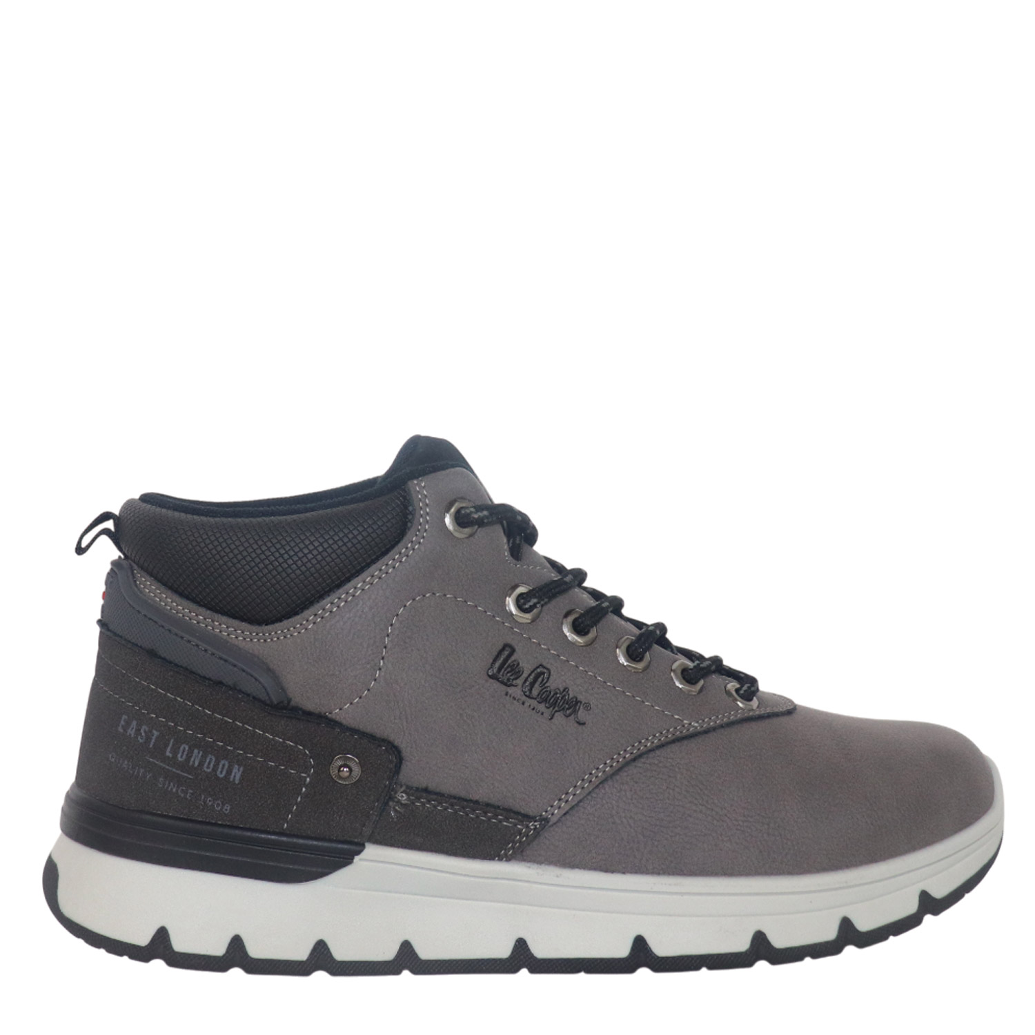 Lee Cooper ανδρικό μποτάκι, σε γκρι χρώμα, κατασκευασμένο από οικολογικό δέρμα. Ύψος σόλας 3εκ.
