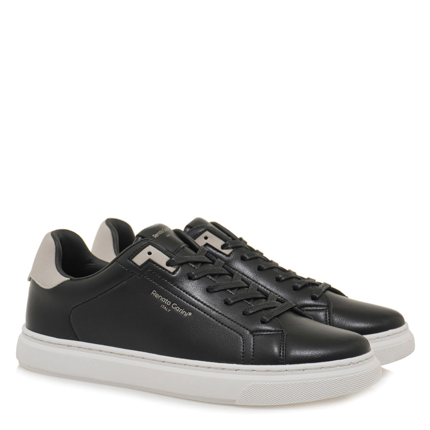 Renato Garini ανδρικό sneaker, σε μαύρο χρώμα, κατασκευασμένο από οικολογικό δέρμα. Ύψος σόλας 3εκ.