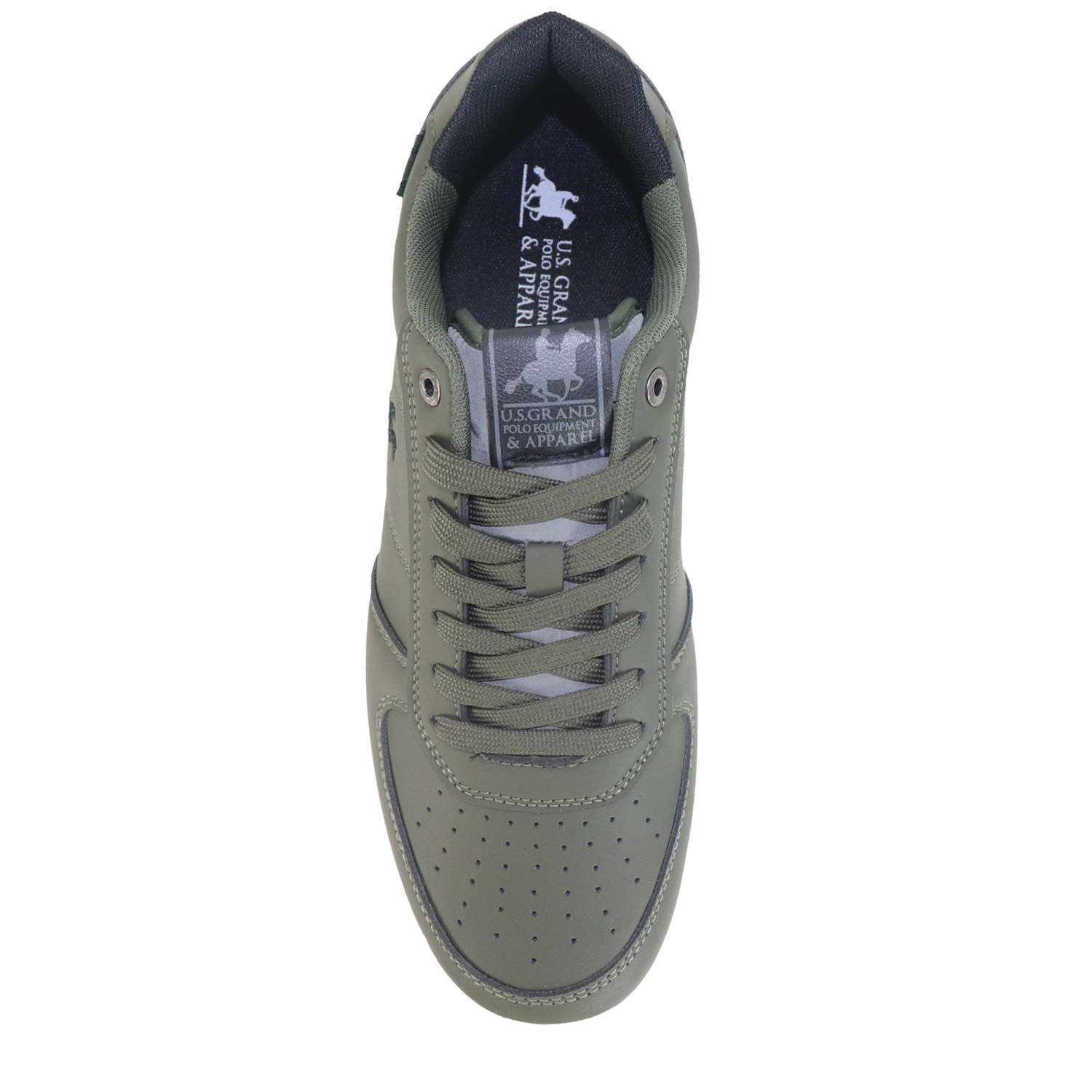 U.S. Grand Polo ανδρικό sneaker, σε χακί χρώμα, κατασκευασμένο από οικολογικό δέρμα. Ύψος σόλας 3εκ.
