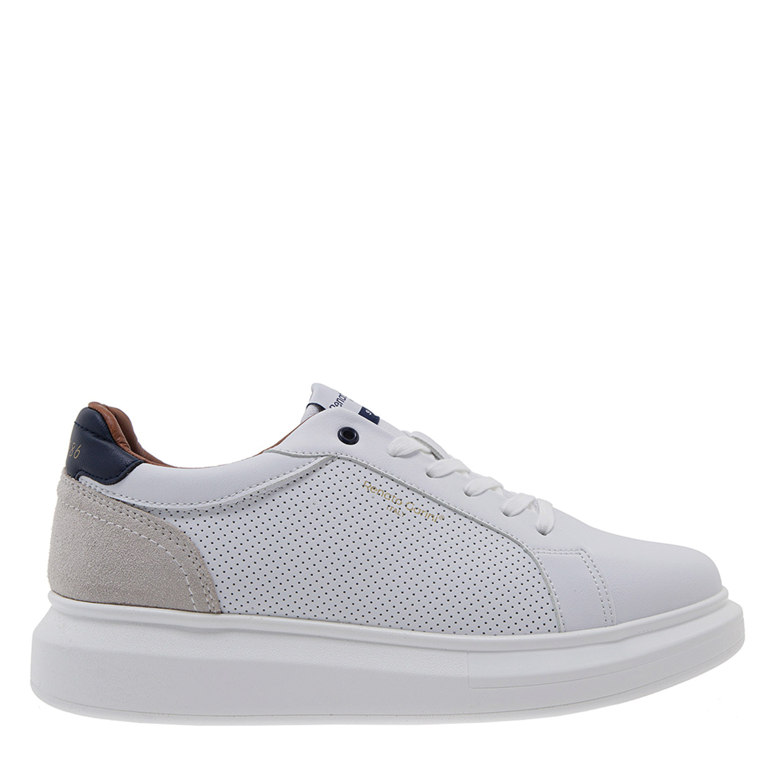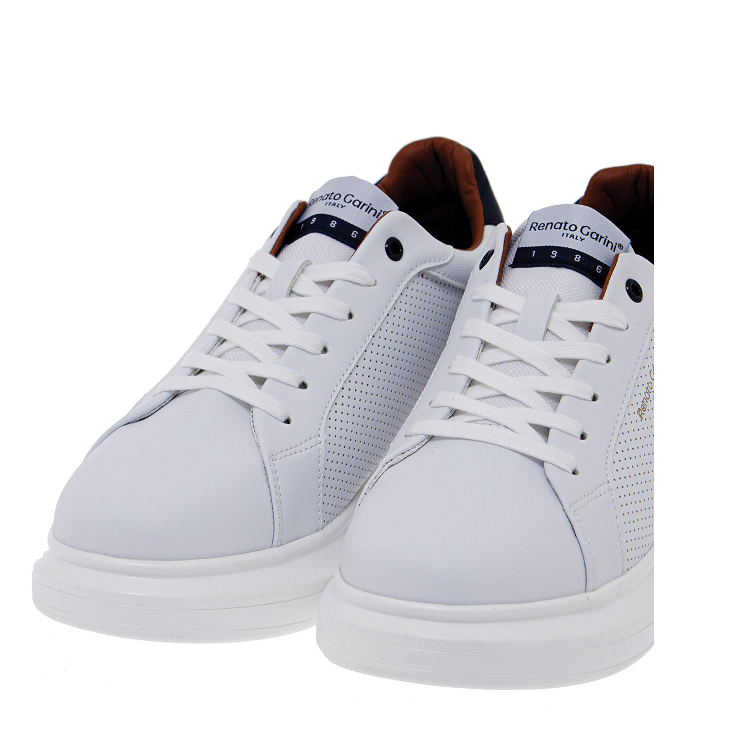 Renato Garini ανδρικό sneaker, σε λευκό χρώμα, κατασκευασμένο από οικολογικό δέρμα. Ύψος σόλας 3εκ.