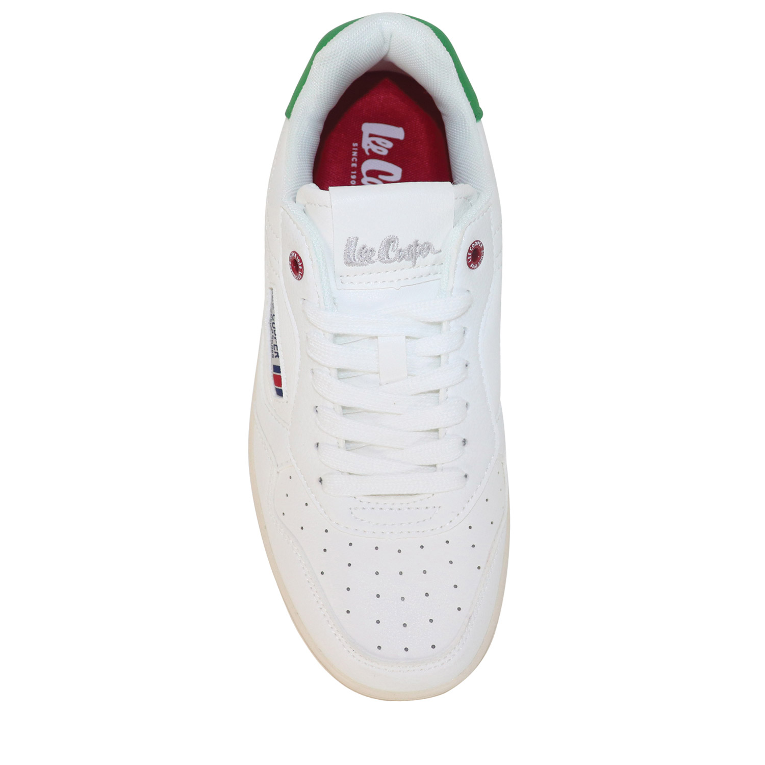 Lee Cooper ανδρικό sneaker σε λευκό με πράσινο χρώμα κατασκευασμένο από οικολογικό δέρμα. Ύψος σόλας 3εκ.