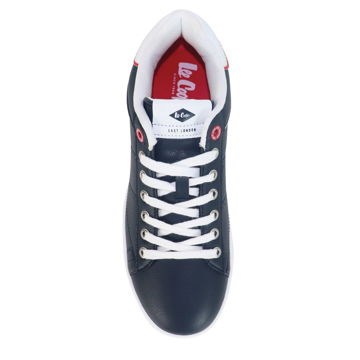 Lee Cooper ανδρικό sneaker σε μπλε με λευκό χρώμα κατασκευασμένο από οικολογικό δέρμα. Ύψος σόλας 2.5εκ.
