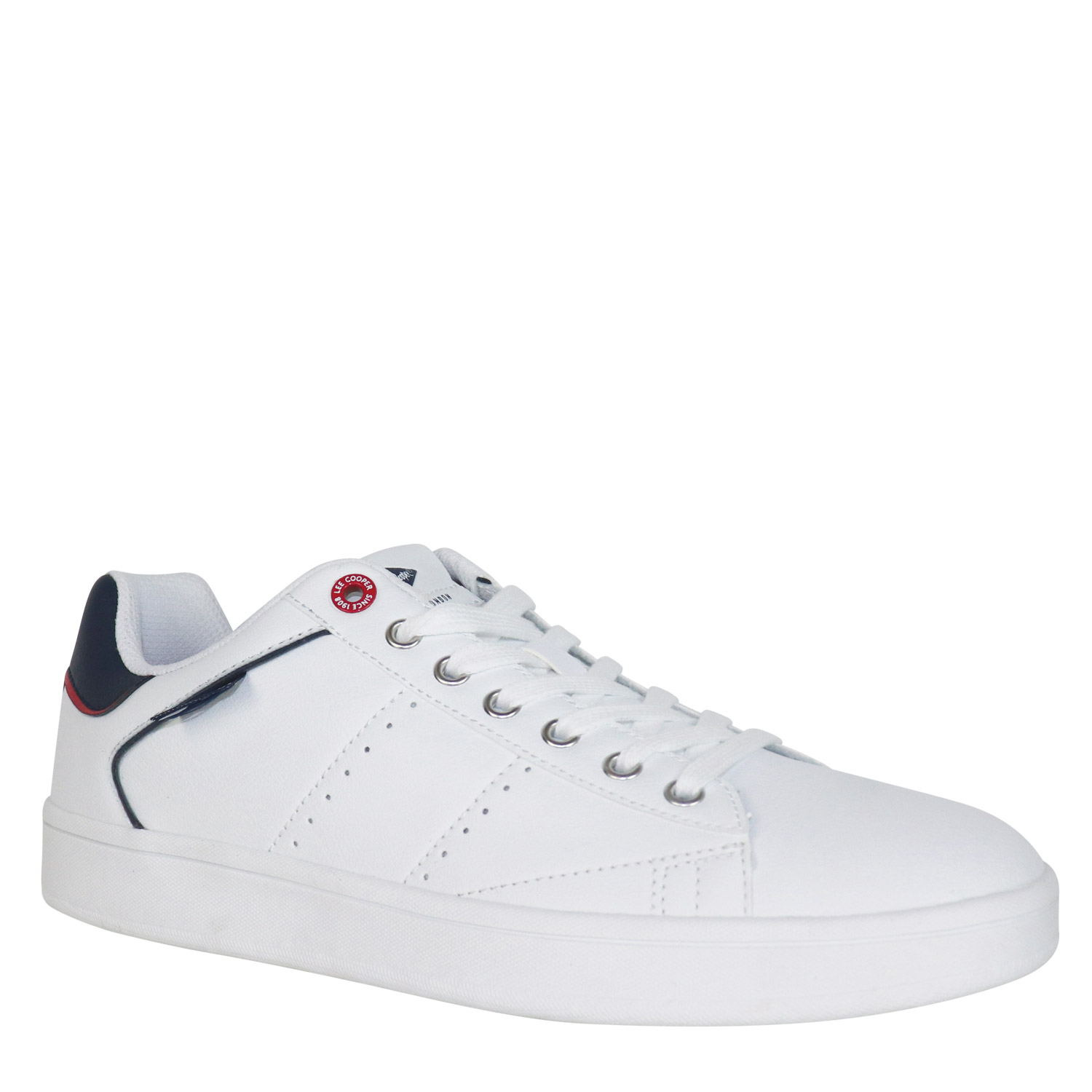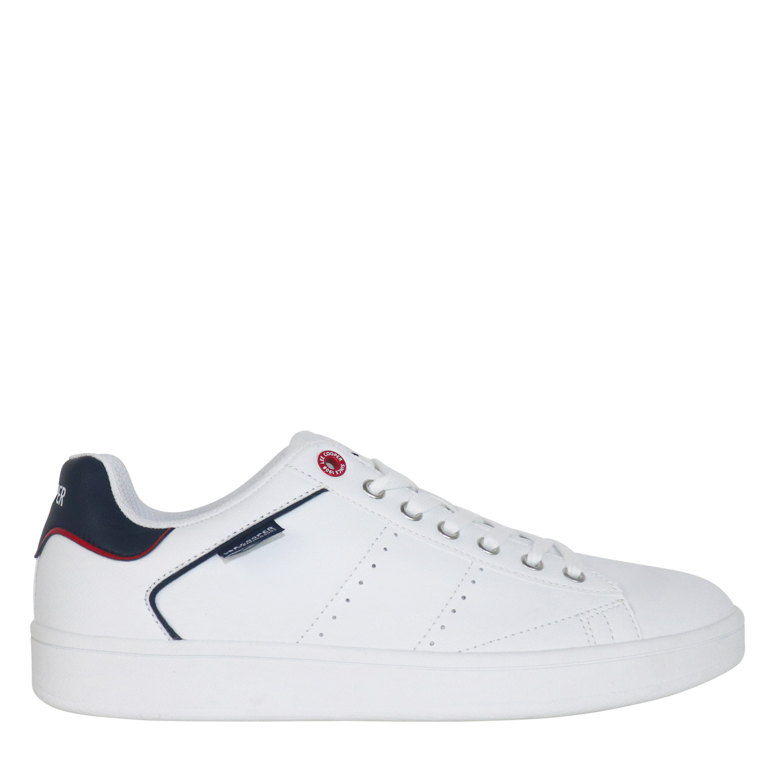 Lee Cooper ανδρικό sneaker σε λευκό με μπλε χρώμα κατασκευασμένο από οικολογικό δέρμα. Ύψος σόλας 2.5εκ.