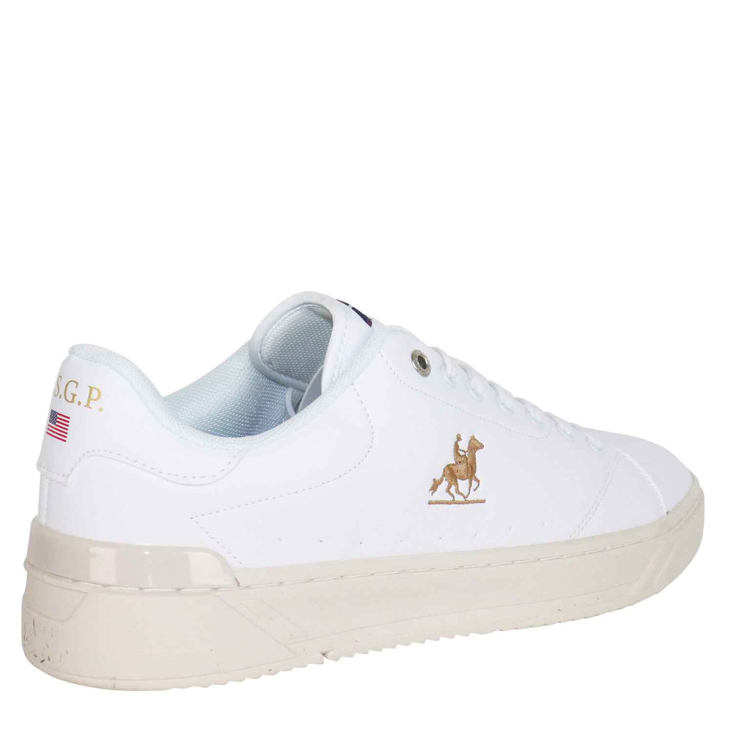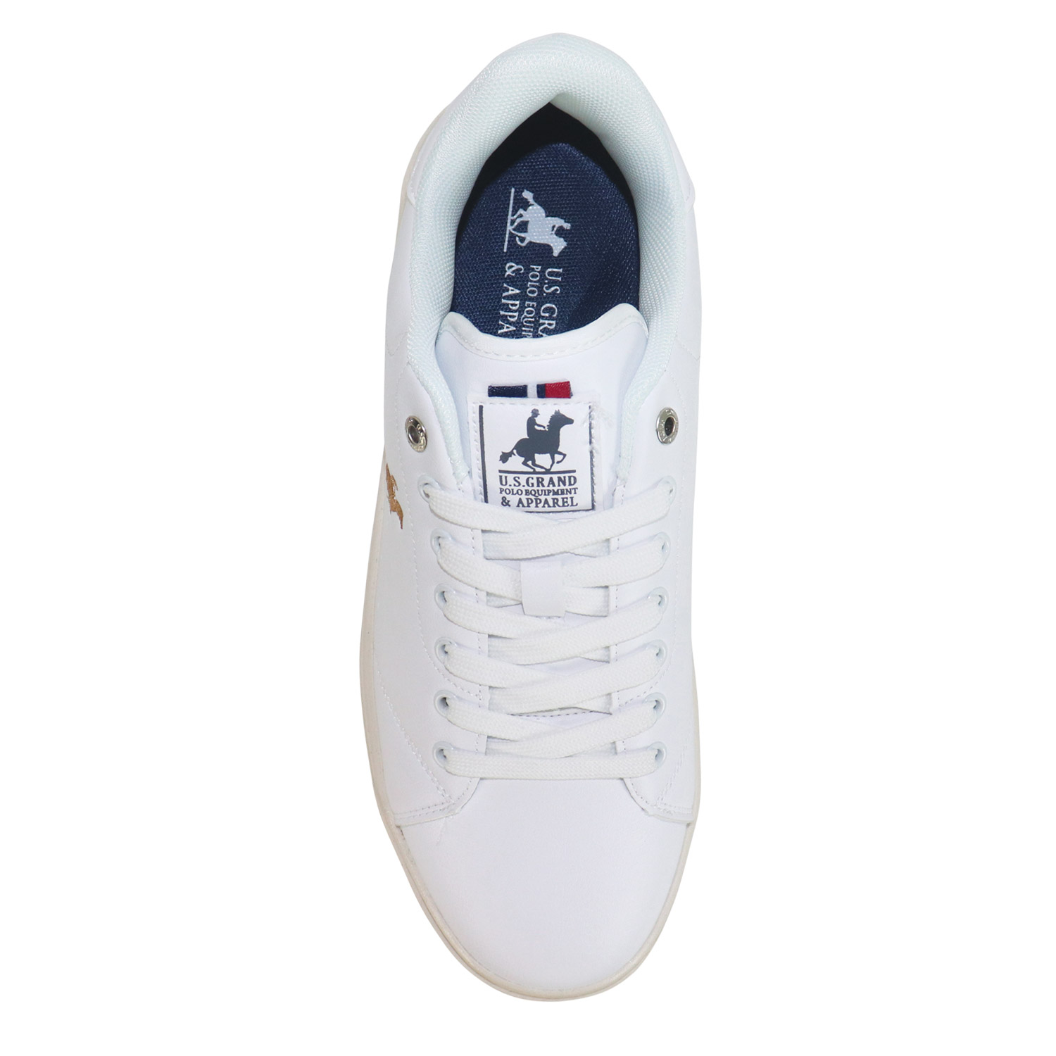 U.S. Grand Polo ανδρικό sneaker, σε λευκό χρώμα, κατασκευασμένο από οικολογικό δέρμα. Ύψος σόλας 4εκ.