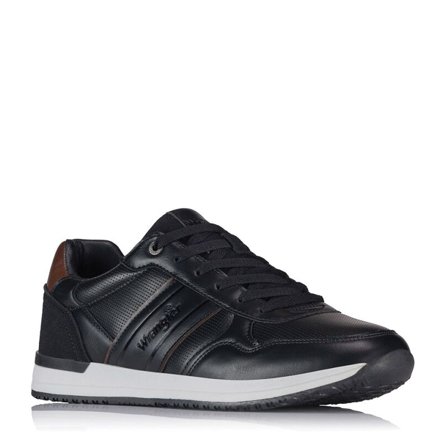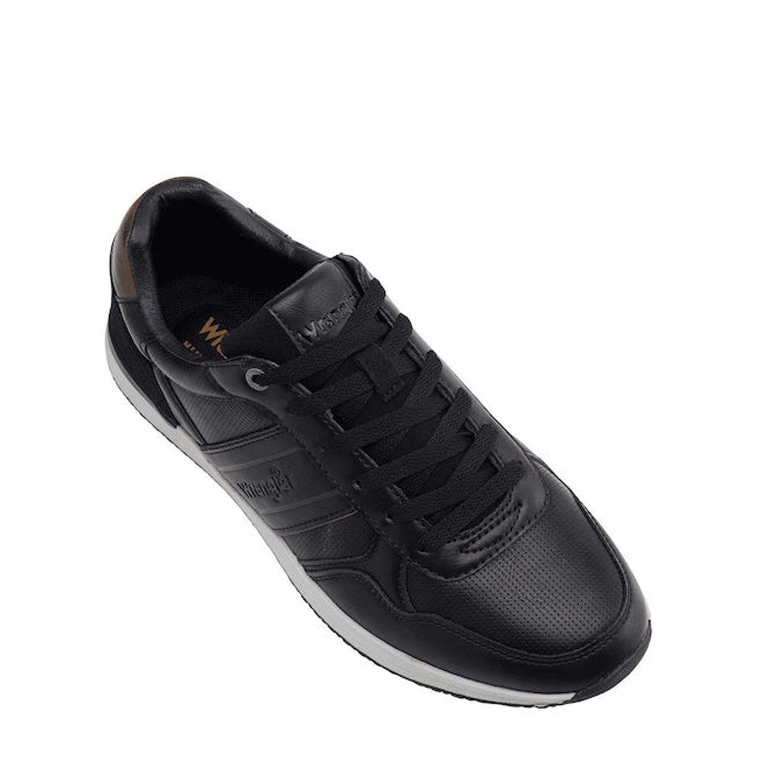 Ανδρικά sneakers της Wrangler σε κομψό μαύρο χρώμα με διακριτικές ραφές και το logo στο πλάι. Συνδυάζουν μοντέρνα εμφάνιση με άνεση, χάρη στην ενισχυμένη σόλα και τα ποιοτικά υλικά κατασκευής. Ιδανικά για καθημερινές casual εμφανίσεις αλλά και για πιο προσεγμένα outfits.