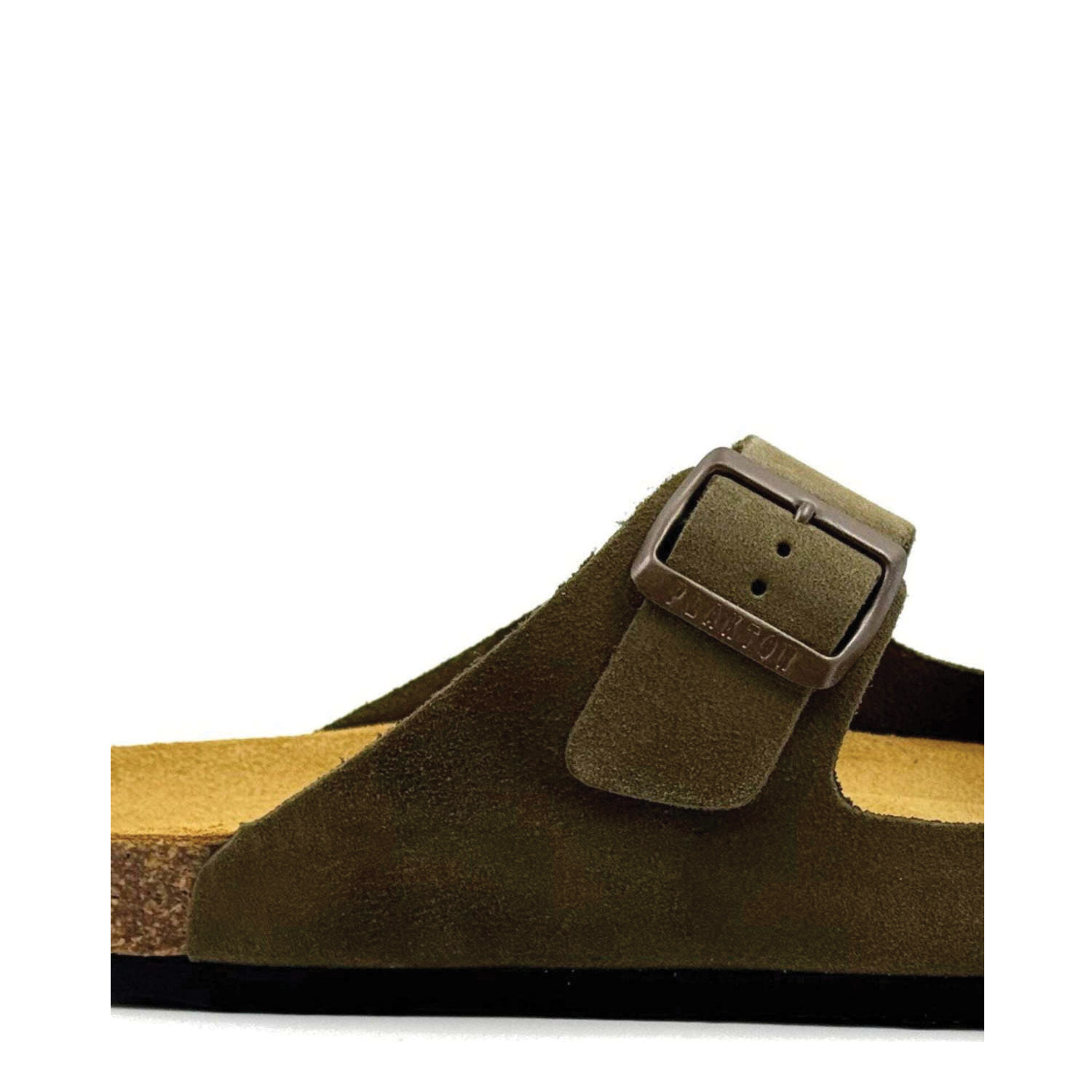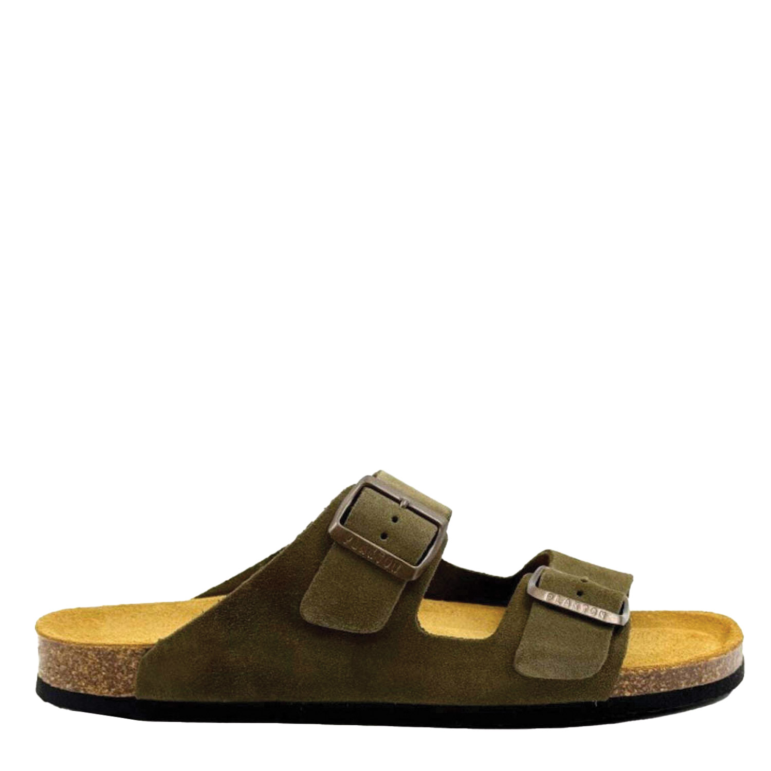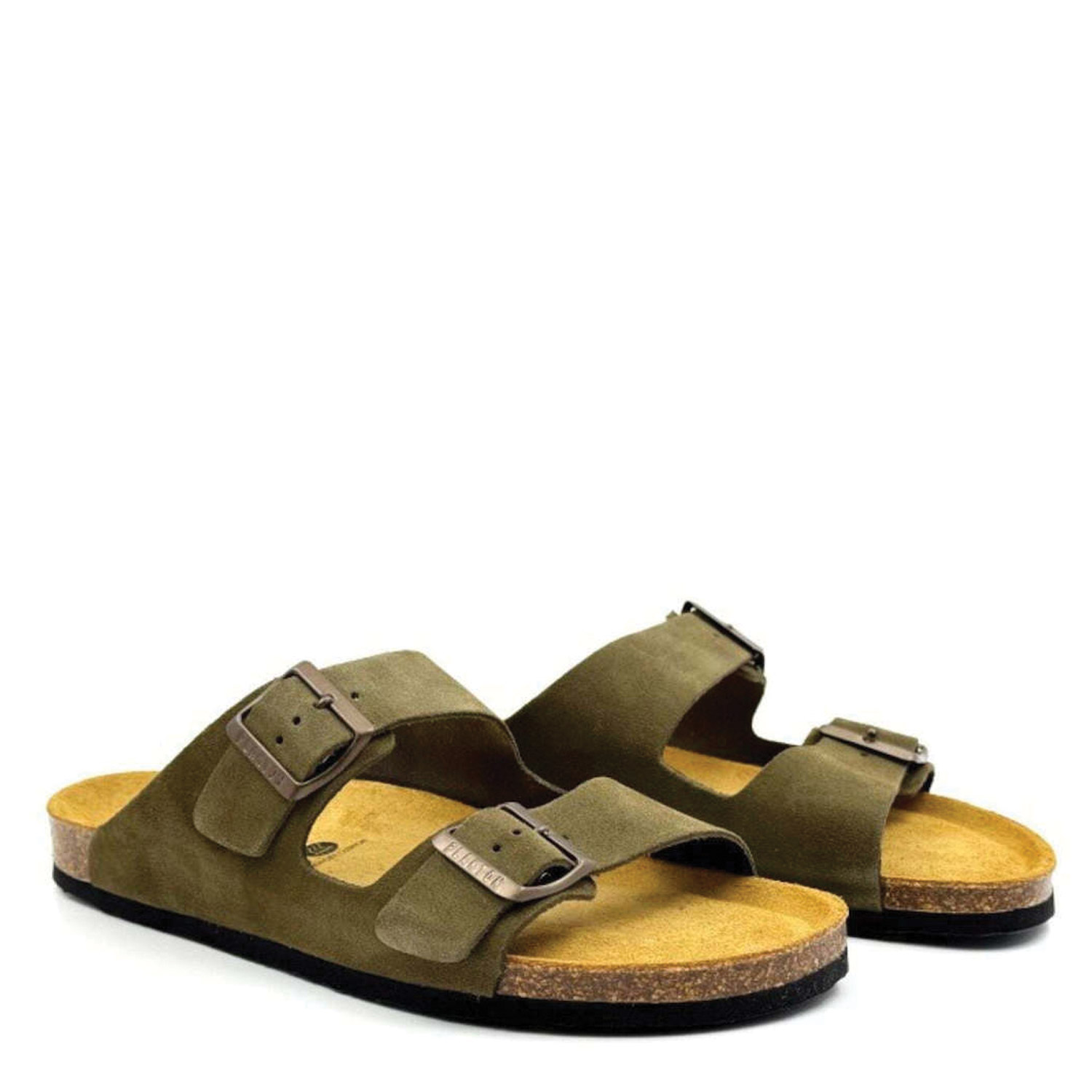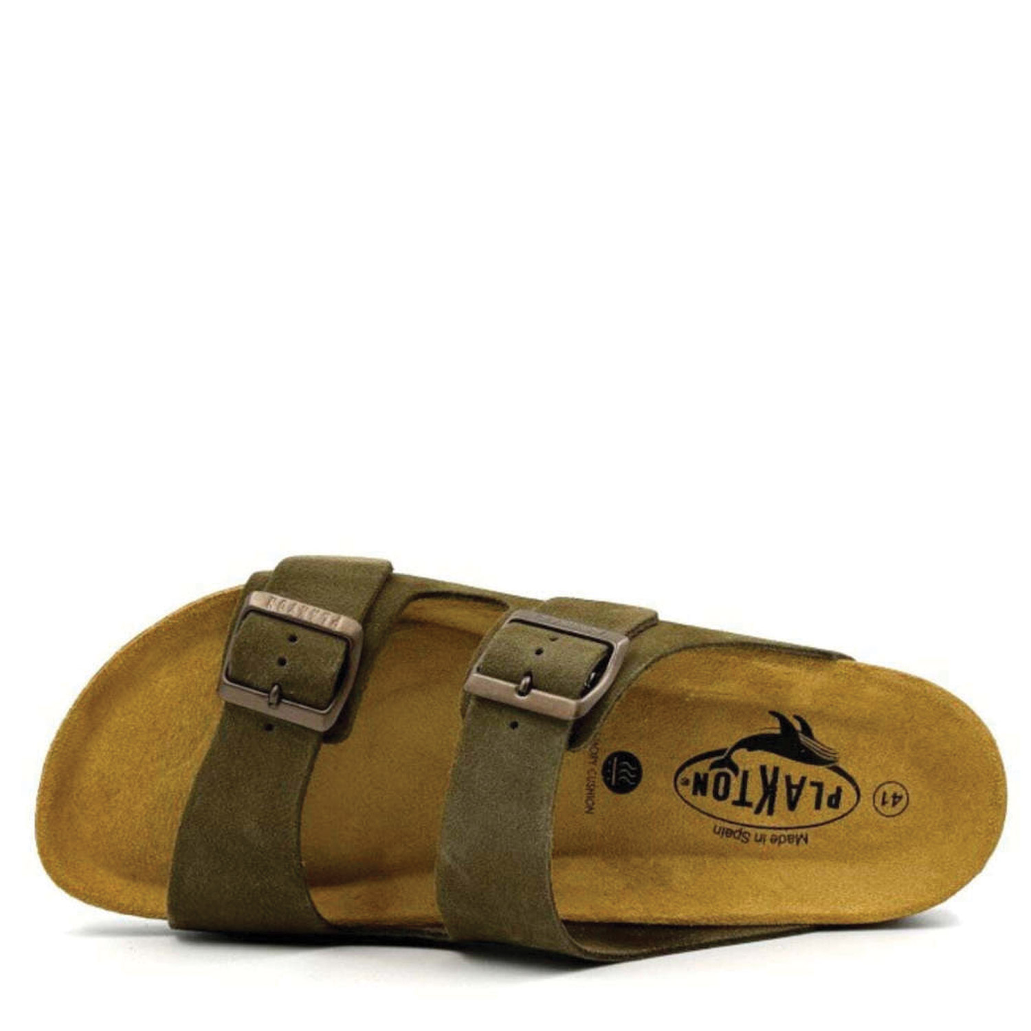Plakton ανδρικό σανδάλι σε χακί χρώμα κατασκευασμένο από δέρμα με ανατομικό πατάκι. Ύψος σόλας 2εκ.