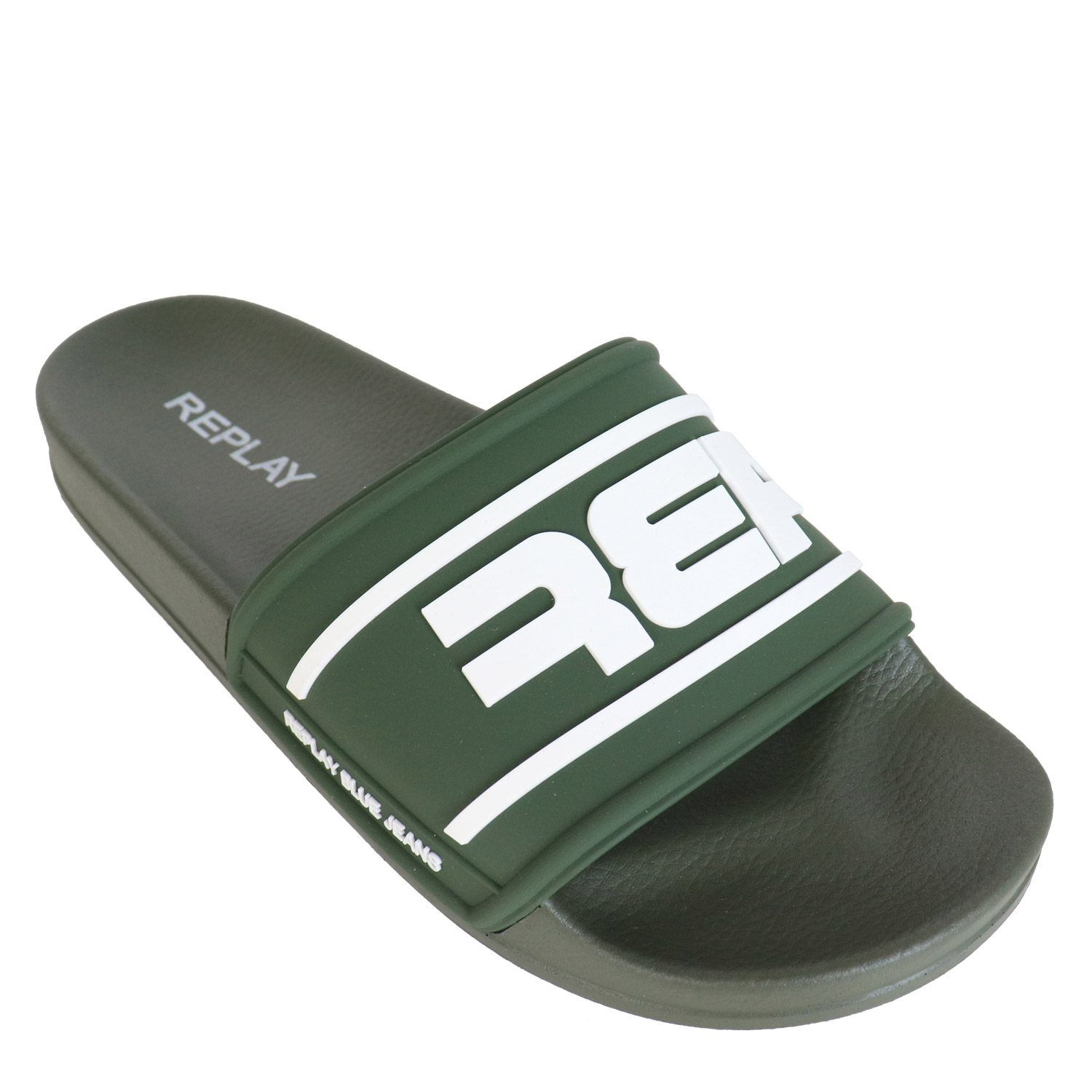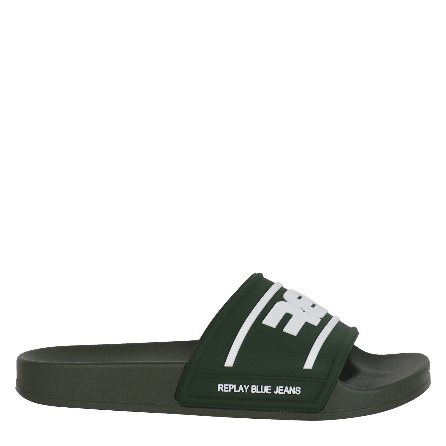 Replay ανδρικό slide, σε χακί χρώμα, κατασκευασμένο από οικολογικό δέρμα. Ύψος σόλας 2.5εκ.