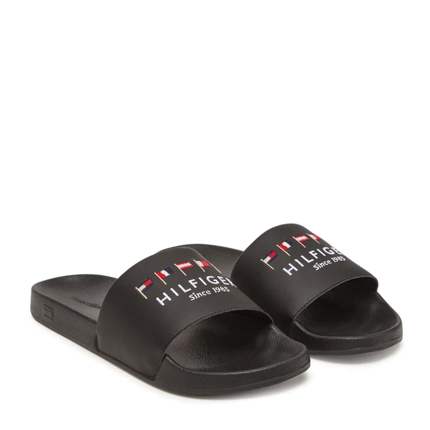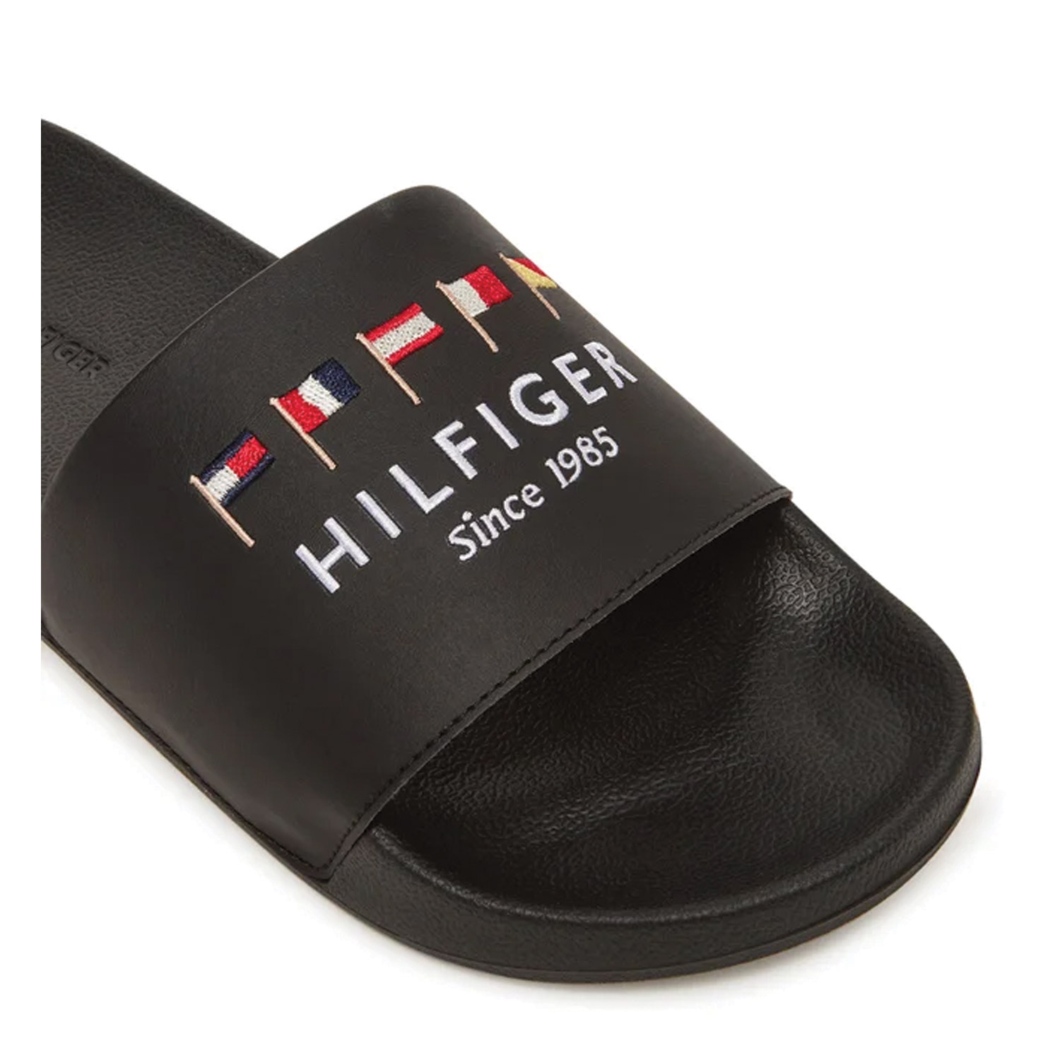 Tommy Hilfiger ανδρικό slide, σε μαύρο χρώμα, κατασκευασμένο από οικολογικό δέρμα. Ύψος σόλας 2εκ.