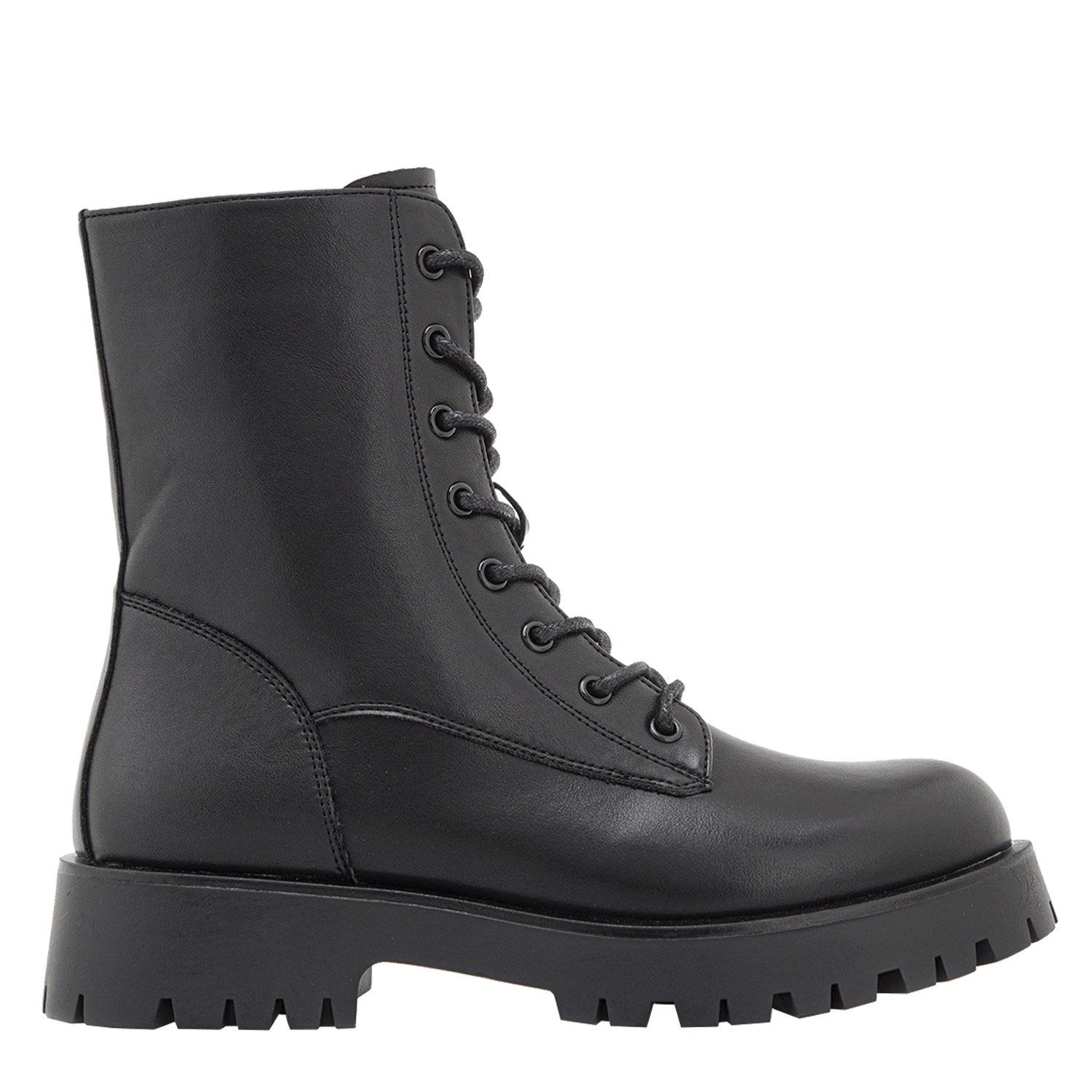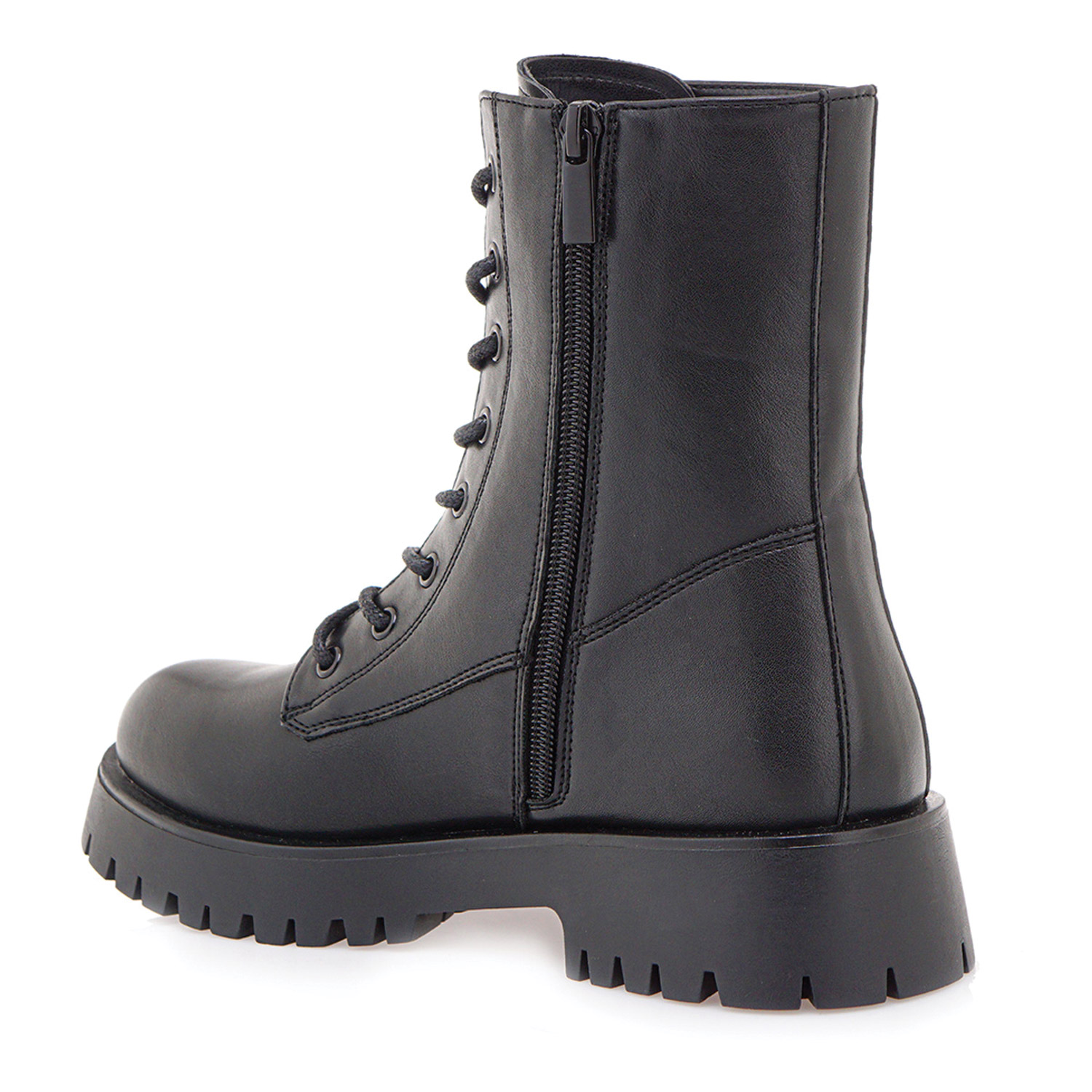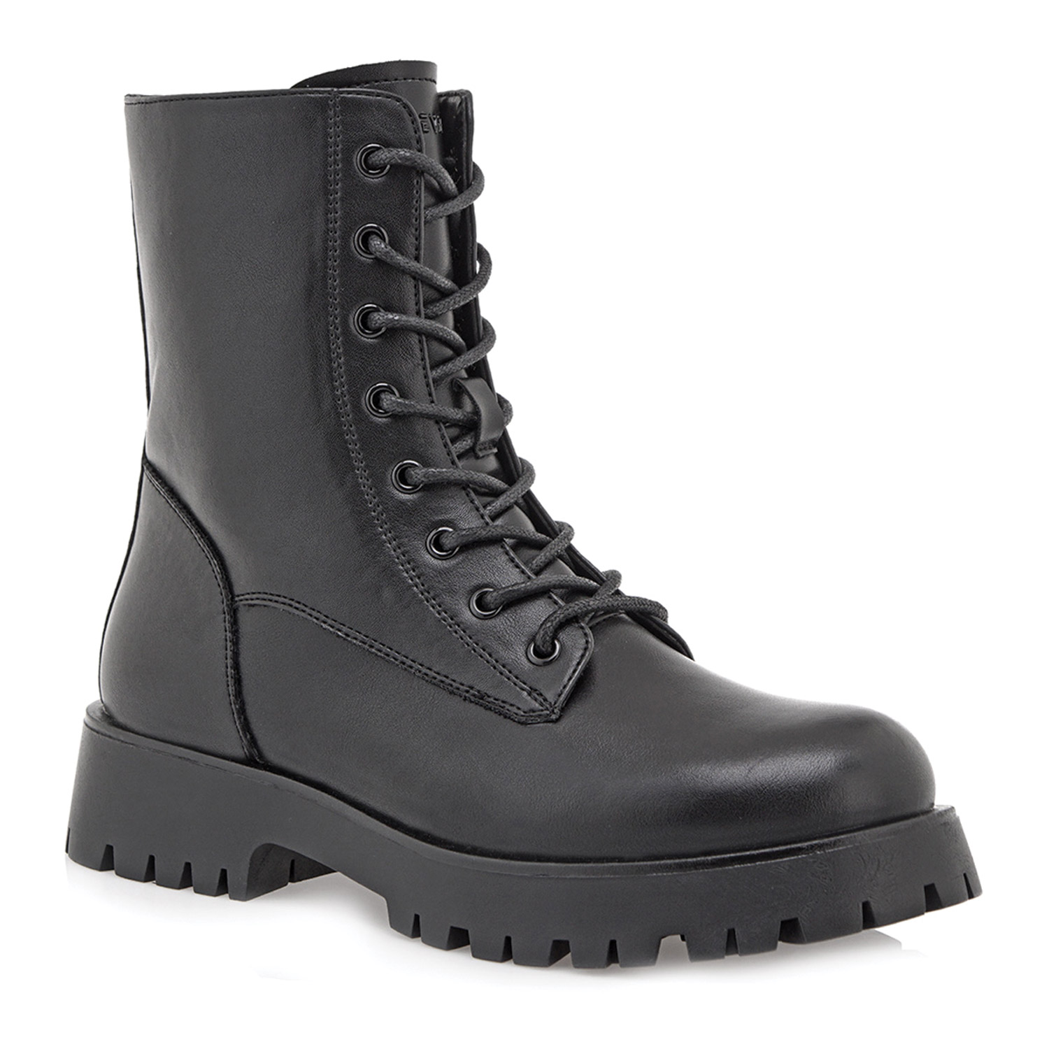 Seven γυναικείο μποτάκι, σε μαύρο χρώμα, κατασκευασμένο από οικολογικό δέρμα. Ύψος σόλας 4εκ.