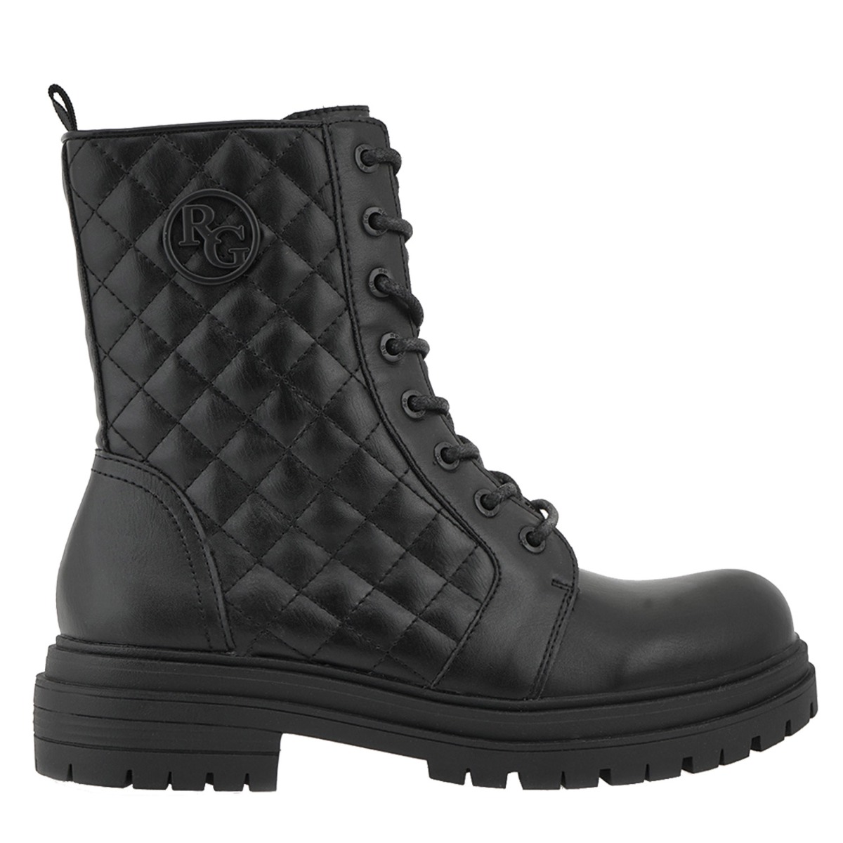 Renato Garini γυναικείο μποτάκι σε μαύρο χρώμα κατασκευασμένο από οικολογικό δέρμα. Ύψος σόλας 4εκ.