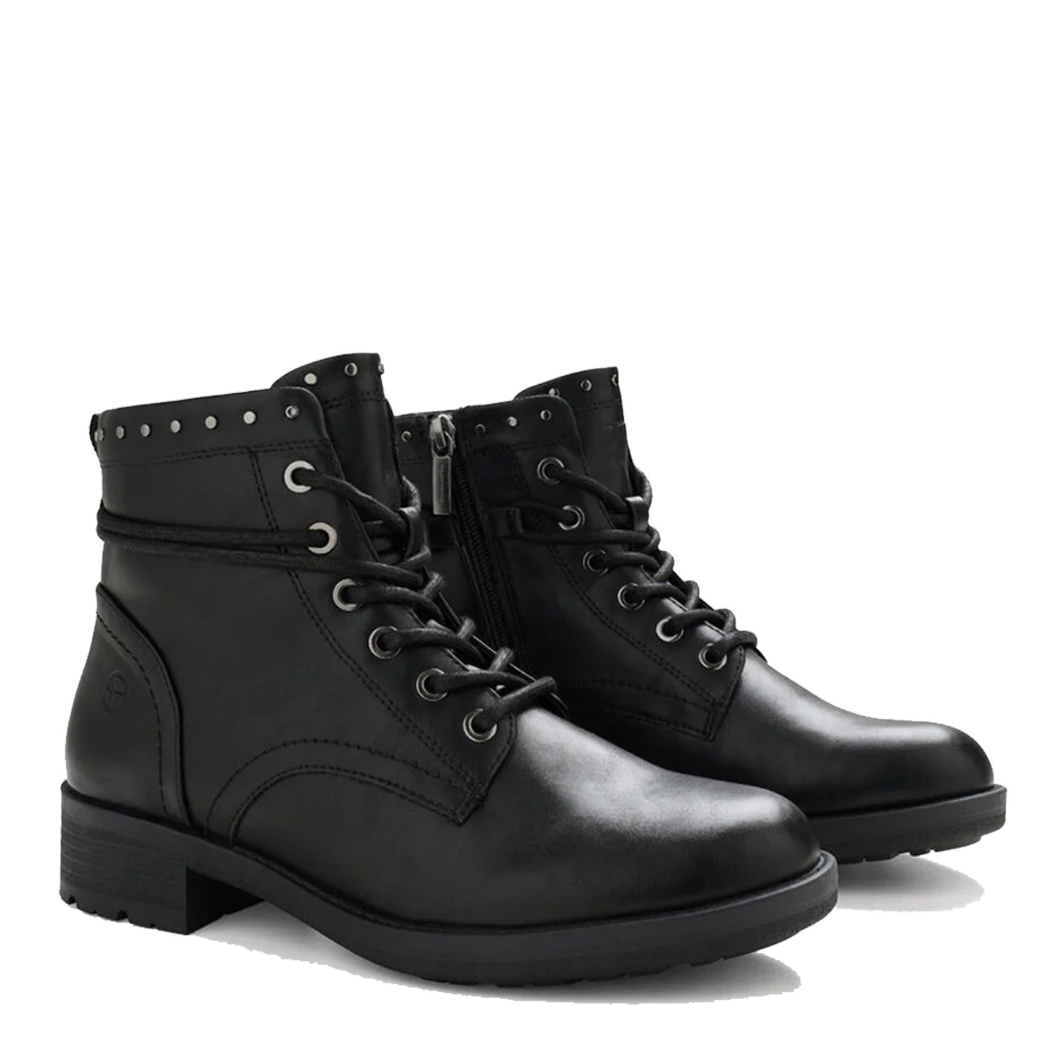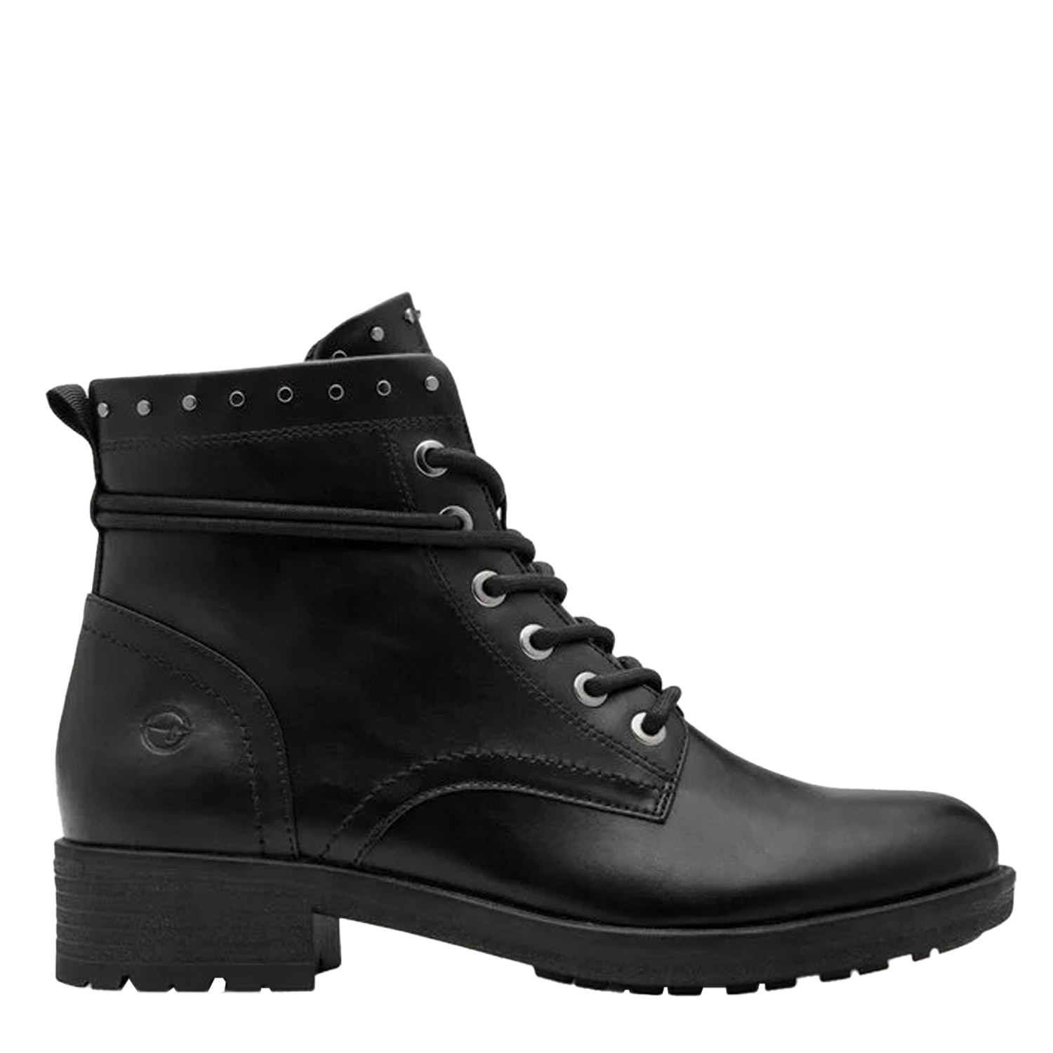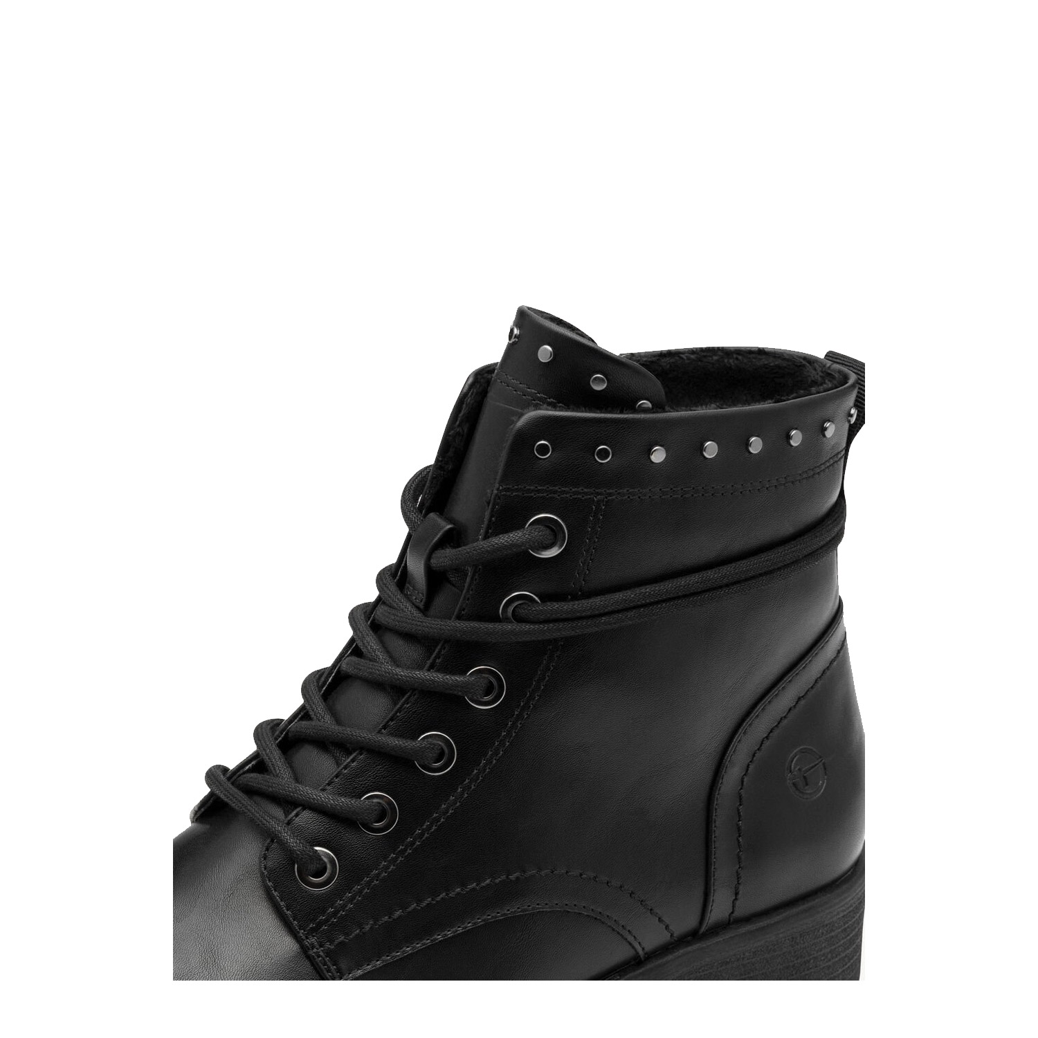 Με τα lace boots της Tamaris νιώθεις έτοιμη για κάθε στιγμή, από τη δουλειά μέχρι τις βόλτες στο φθινοπωρινό τοπίο. Ο σταθερός block τακούνι ύψους 2 cm και το κοντό ύψος shaft (18 cm) προσφέρουν άνεση και στήριξη σε κάθε σου βήμα. Στρογγυλή μύτη, ντελικάτες νιτεντ-λεπτομέρειες και συνδυασμός δετών και φερμουάρ δίνουν urban chic χαρακτήρα και τονίζουν τη μοναδικότητά σου.