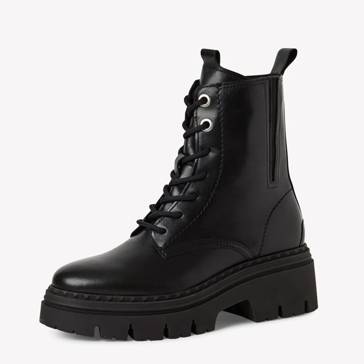 Δώσε στη μέρα σου στιλ και αυτοπεποίθηση με αυτά τα Tamaris μποτάκια με χοντρό τακούνι ύψους 6 εκ., στρογγυλή μύτη και ξεχωριστή, αντιολισθητική σόλα. Το μοντέρνο urban look ταιριάζει τέλεια σε κάθε περίσταση, ενώ το αποσπώμενο πάτο προσφέρει άνεση και προσαρμοστικότητα. Ο πρακτικός φερμουάρ και η κορδόνια σε βοηθούν να τα φορέσεις εύκολα, νιώθοντας έτοιμη για κάθε φθινοπωρινή ή χειμερινή έξοδο.