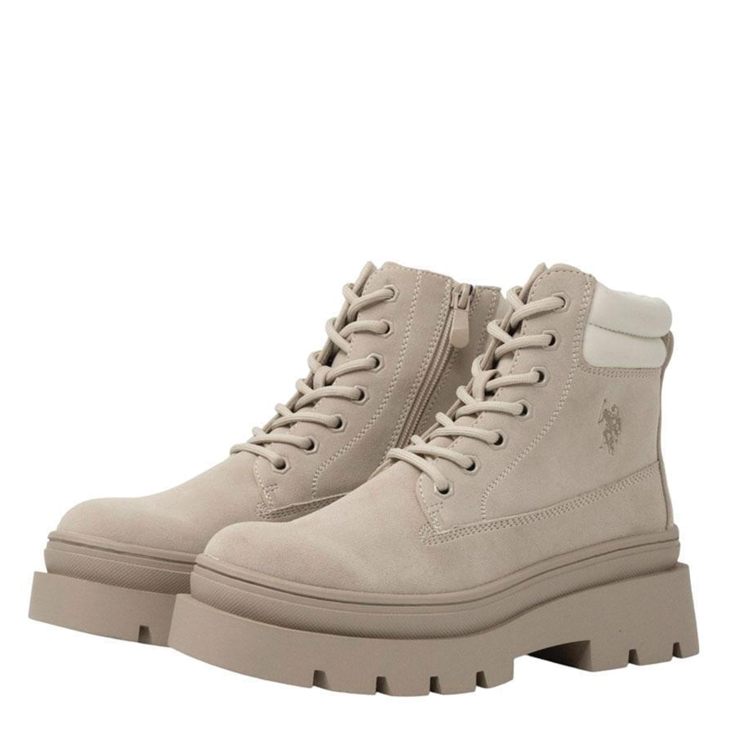 Γυναικεία μποτάκια σε μπεζ χρώμα της εταιρείας U.S. POLO ASSN. Διαθέτουν αντιολισθητική σόλα και μαλακό πάτο που απορροφάει τους κραδασμούς, προσφέροντας ξεκούραστο, σταθερό και άνετο βάδισμα.