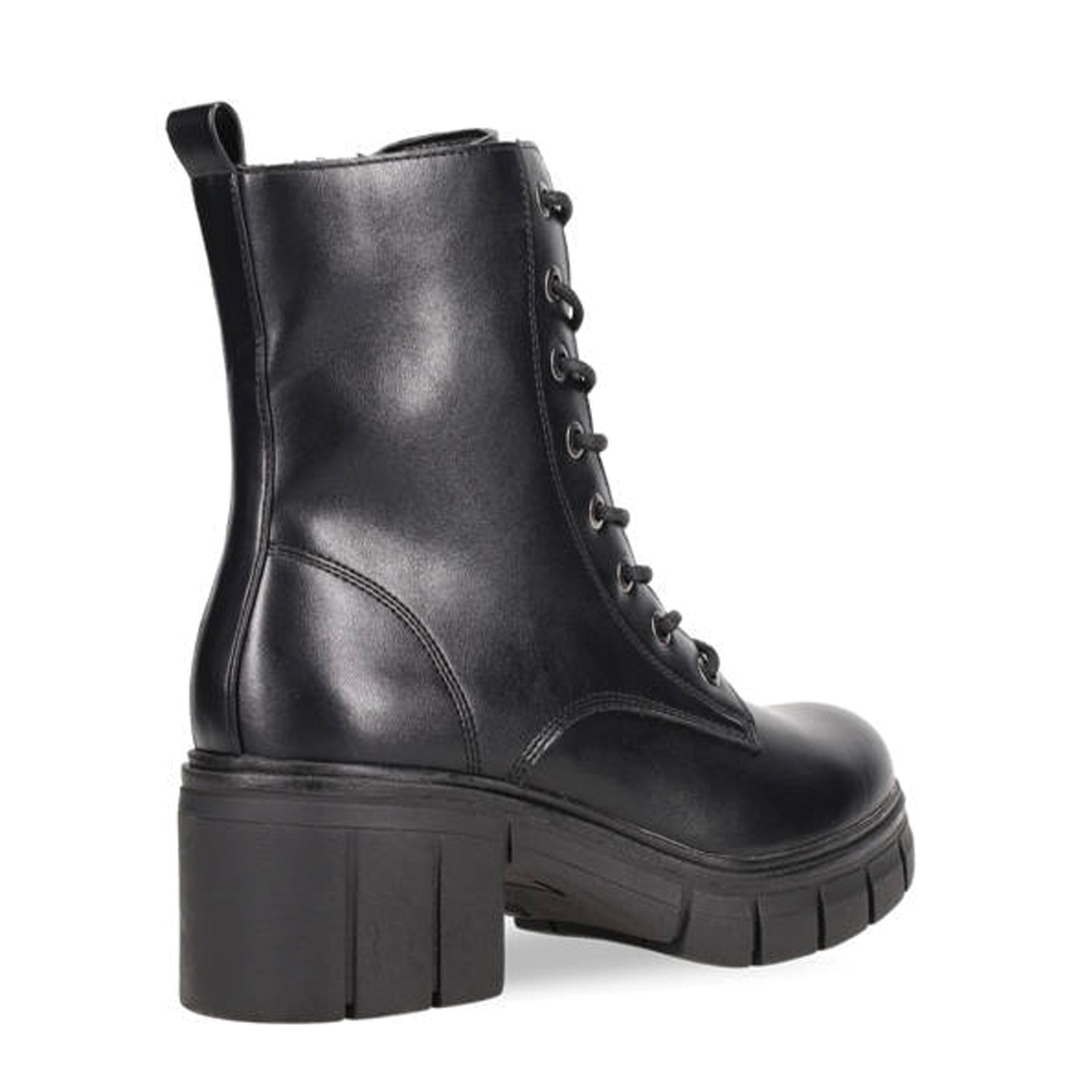 Μαύρο αρβυλάκι μέχρι πάνω από τον αστράγαλο. Διαθέτει τρακτερωτή σόλα και μεσαίο χοντρό τακούνι. Δένει με κορδόνια και φερμουάρ για πιο εύκολη και άνετη εφαρμογή.