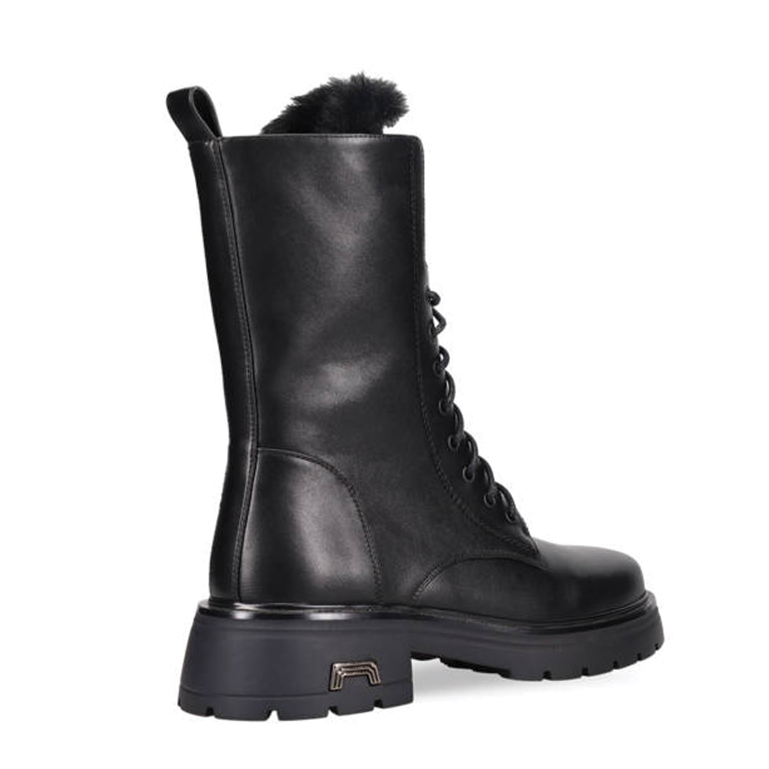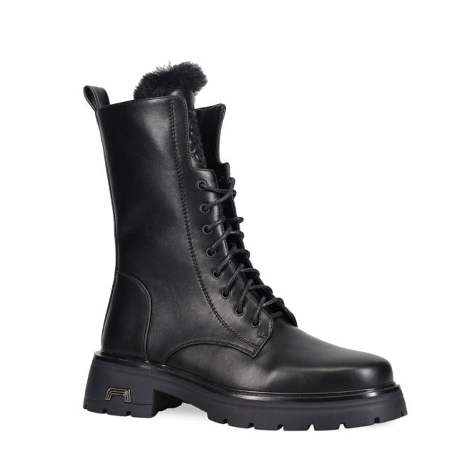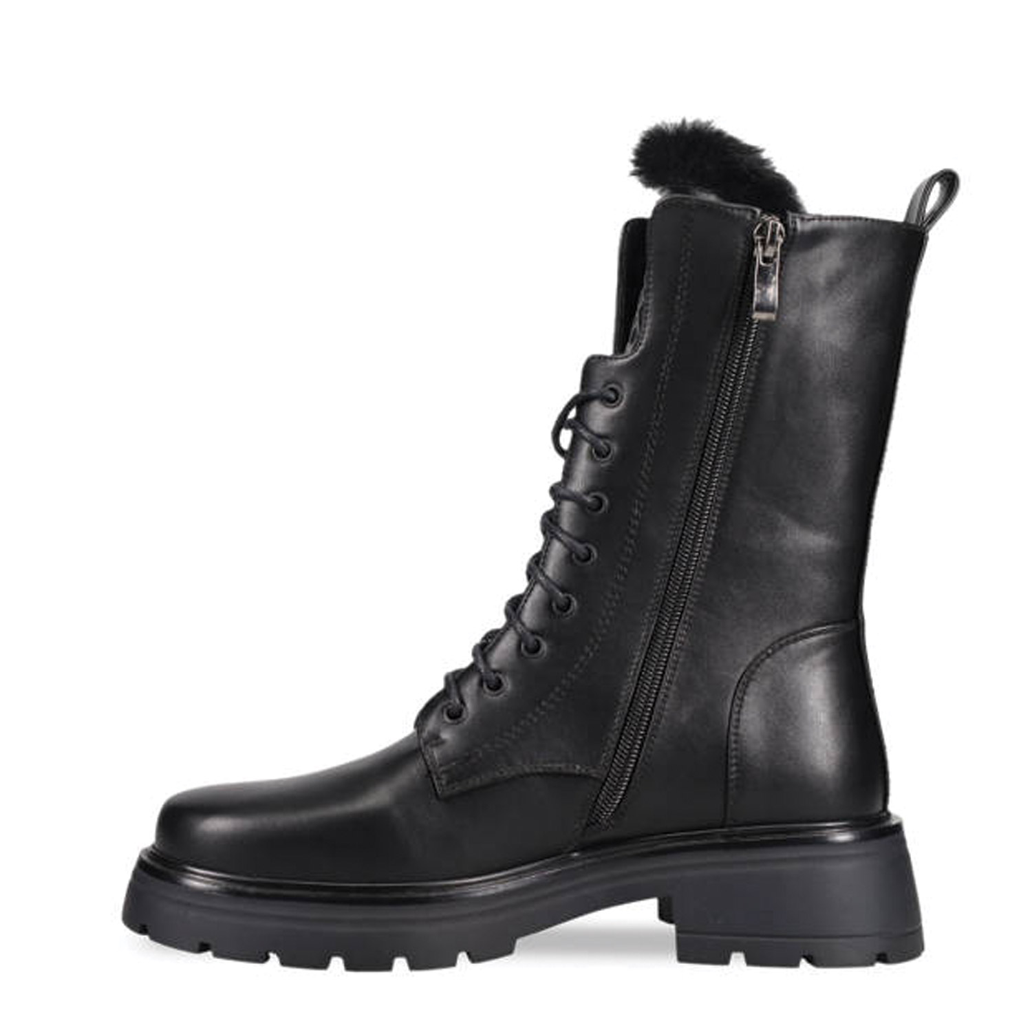 Μαύρο αρβυλάκι με τρακτερωτή σόλα και χοντρό τακούνι. Διαθέτει κορδόνια και κλείνει με φερμουάρ στο πλάι, για εύκολη και γρήγορη εφαρμογή.