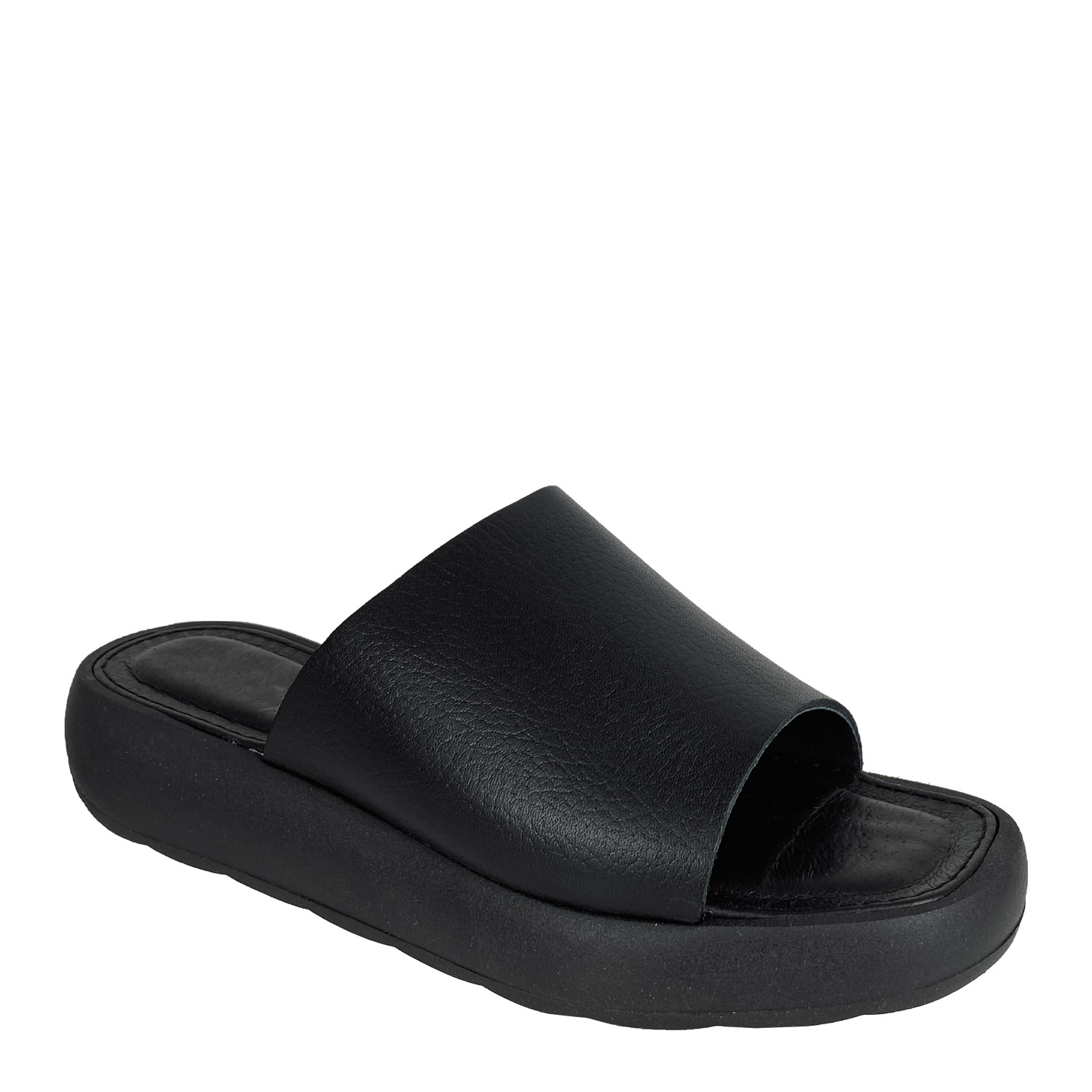 Koniarisshoes γυναικείο flatform σε μαύρο χρώμα κατασκευασμένο από δέρμα, με ανατομικό πατάκι. Ύψος 3εκ.