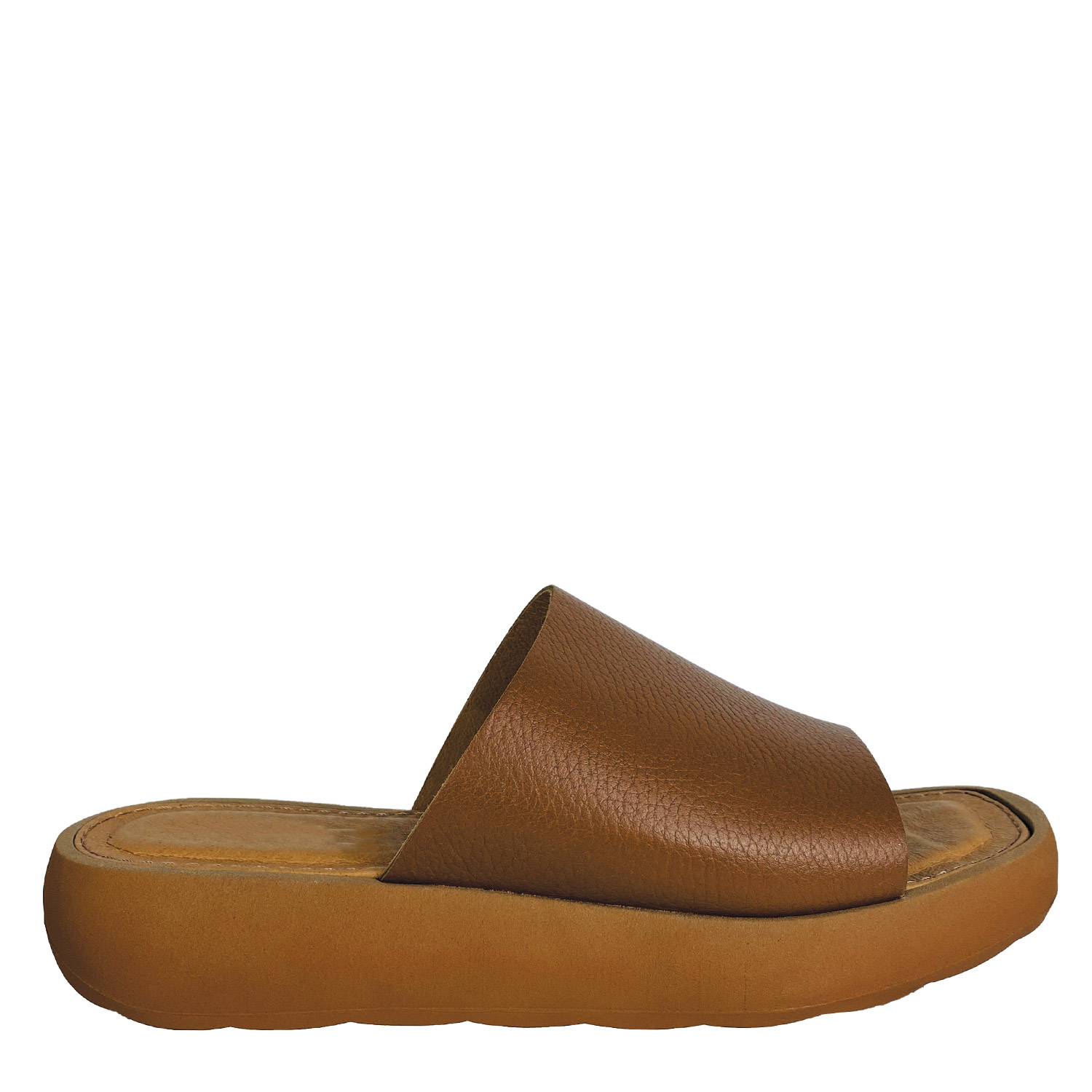 Koniarisshoes γυναικείο flatform σε tabac χρώμα κατασκευασμένο από δέρμα, με ανατομικό πατάκι. Ύψος 3εκ.
