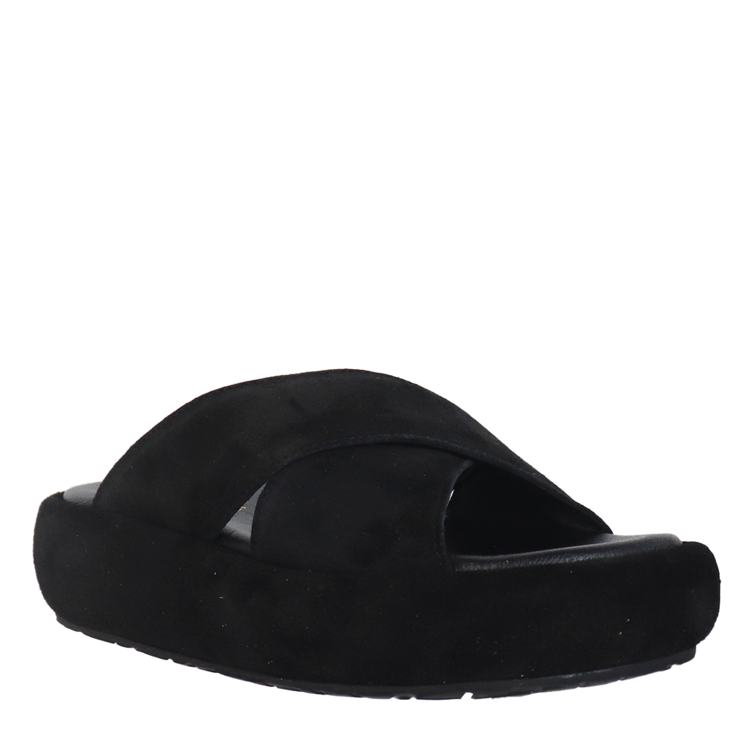 Komis & Komis γυναικείο flatform, σε μαύρο χρώμα, κατασκευασμένο από καστόρι. Ύψος σόλας 4.5εκ.
