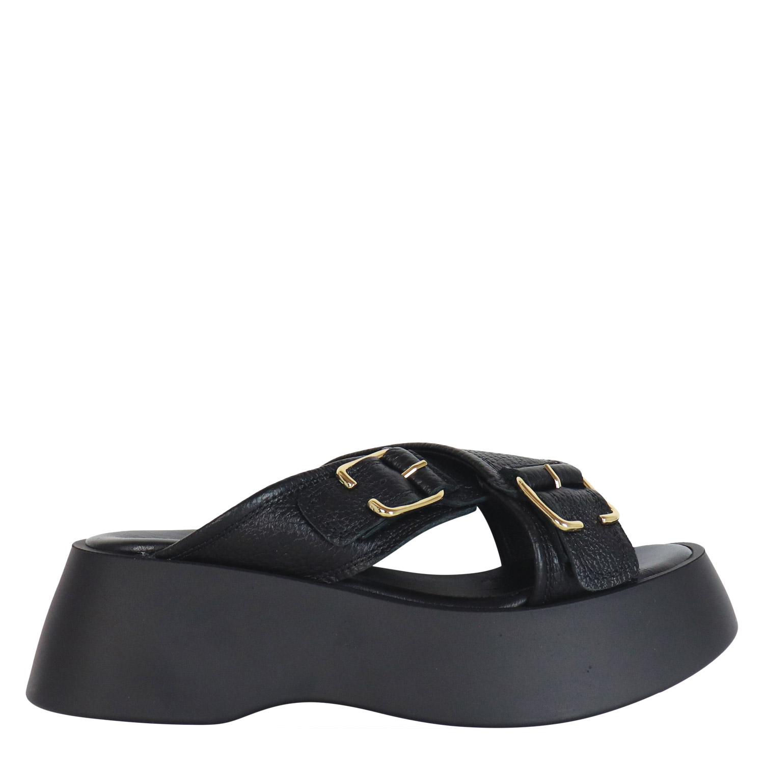 Gianna Kazakou γυναικείο flatform, σε μαύρο χρώμα, κατασκευασμένο από δέρμα. Ύψος σόλας 6εκ.
