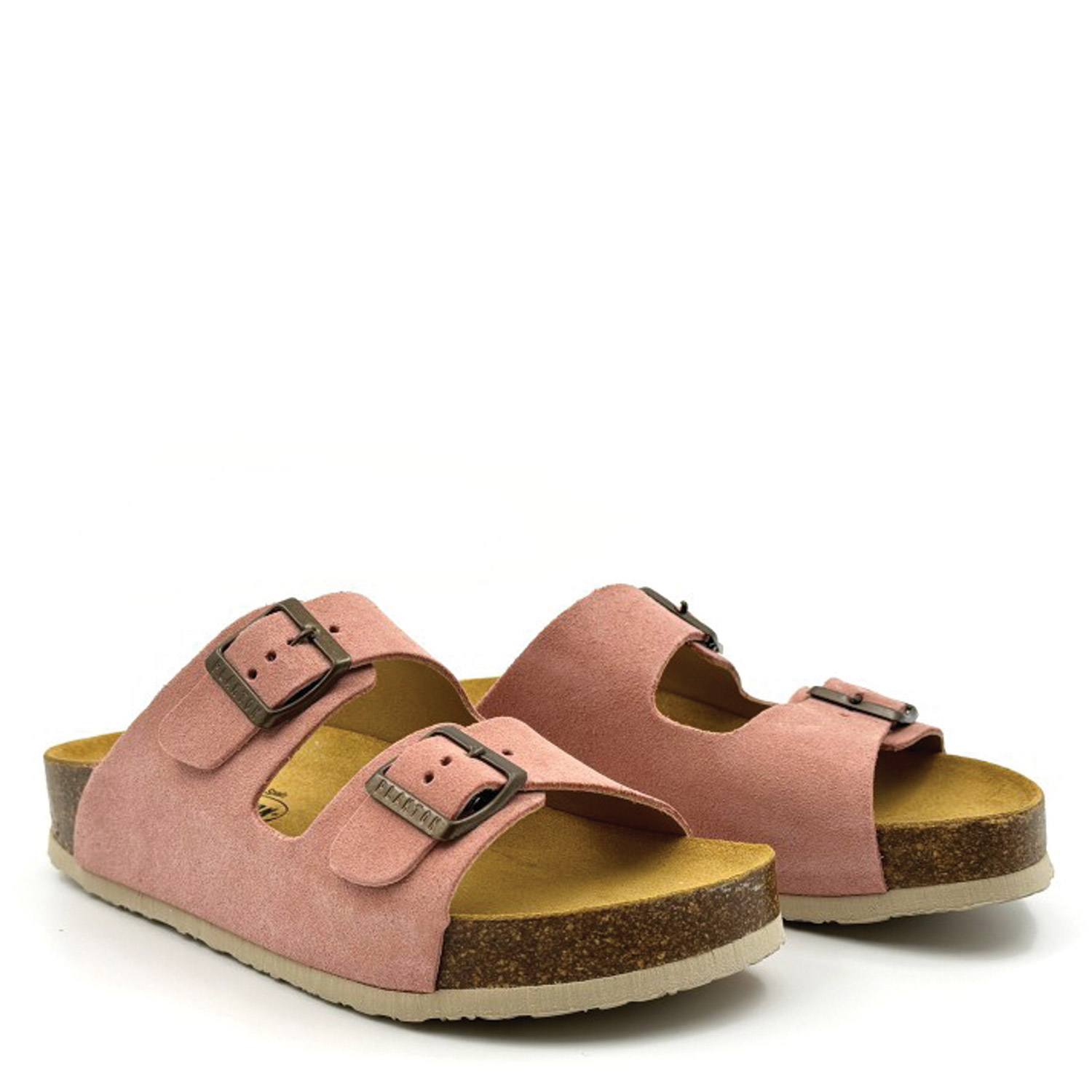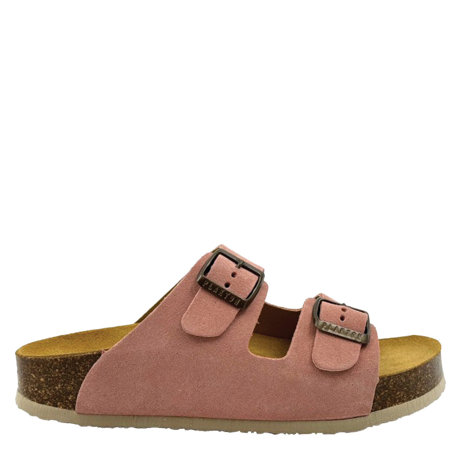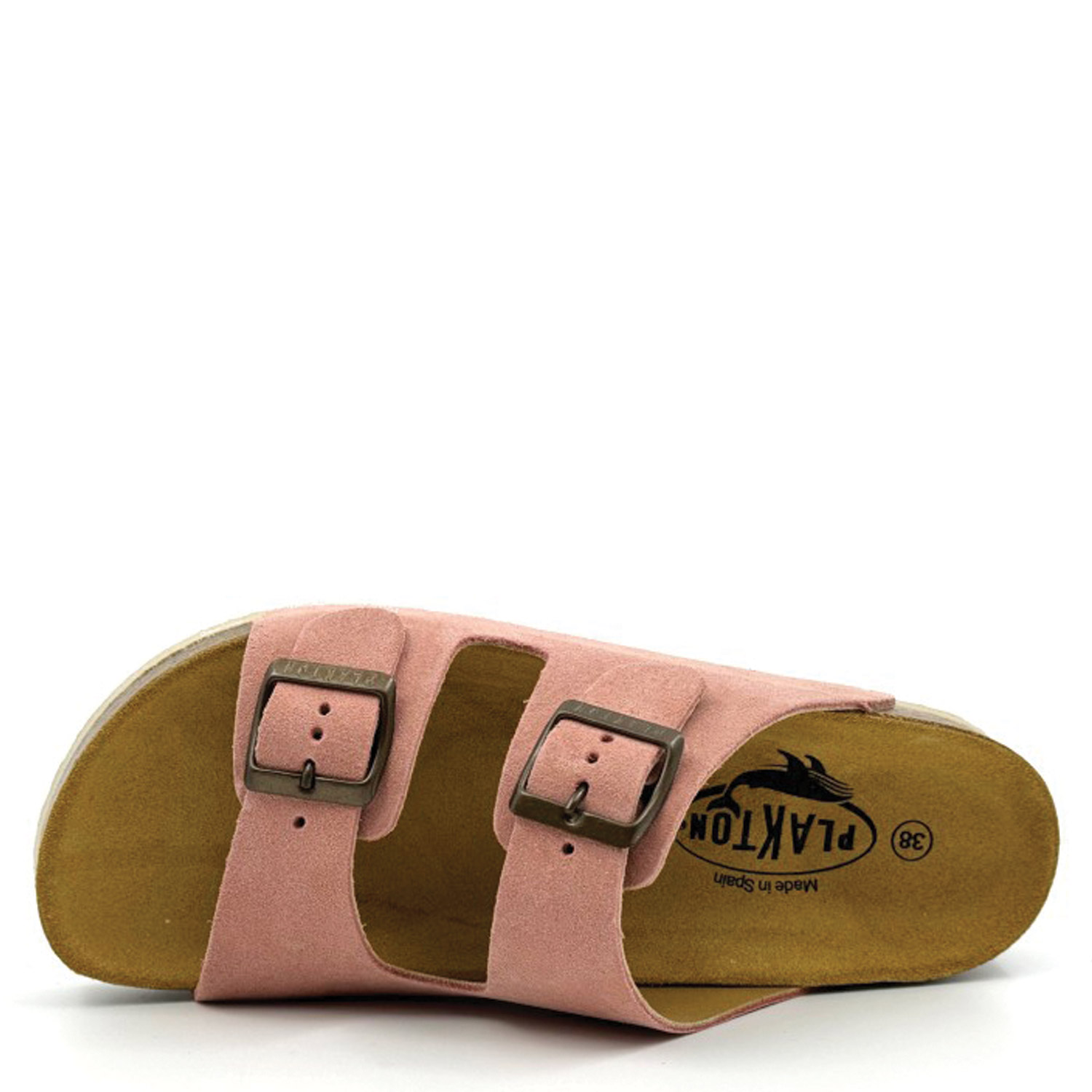Plakton γυναικείο σανδάλι, σε  ροζ χρώμα, κατασκευασμένο από δέρμα, με ανατομικό πάτο. Ύψος σόλας 3.5εκ.