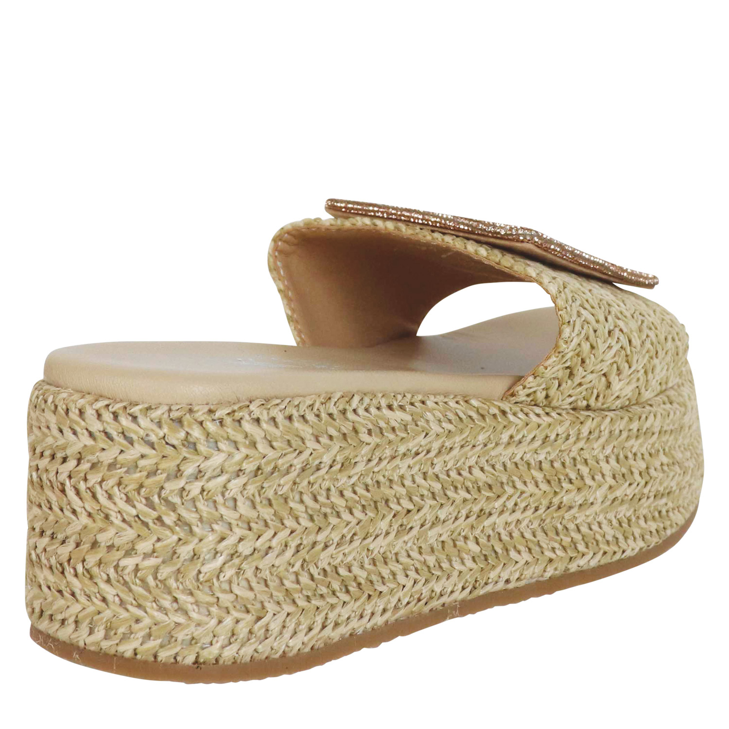Koniarisshoes γυναικείο flatform, σε μπεζ χρώμα, κατασκευασμένο από ψάθα. Ύψος σόλας 6.5εκ.