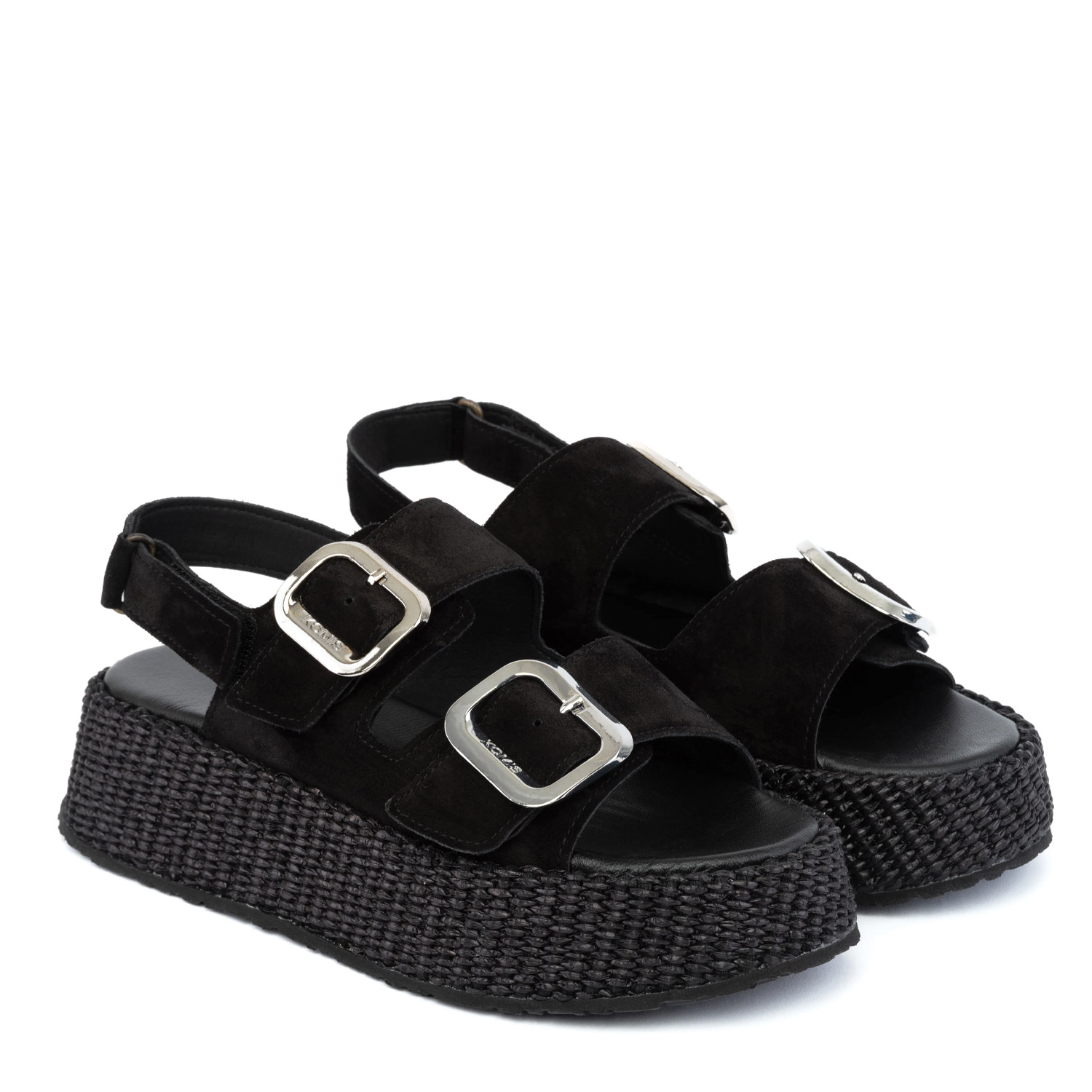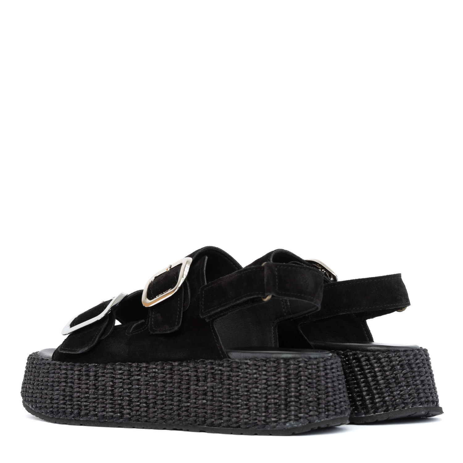 Komis & Komis γυναικείο flatform σε μαύρο χρώμα κατασκευασμένο από δέρμα καστόρι, με ανατομικό πατάκι. Ύψος σόλας 4.5εκ.