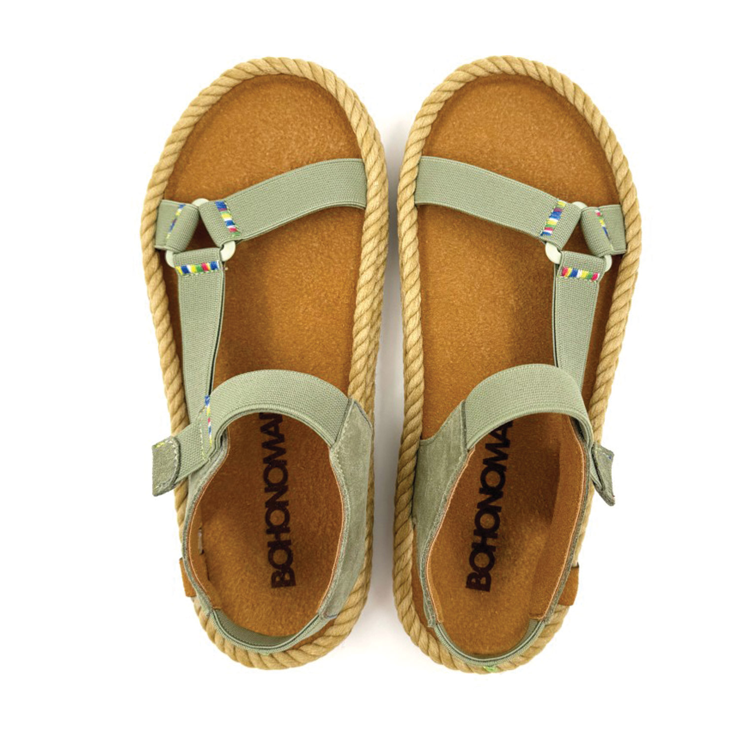 Bohonomad γυναικείο flatform, σε χακί χρώμα, κατασκευασμένο από ελαστικό υλικό, με ανατομικό πάτο. Ύψος σόλας 2εκ.