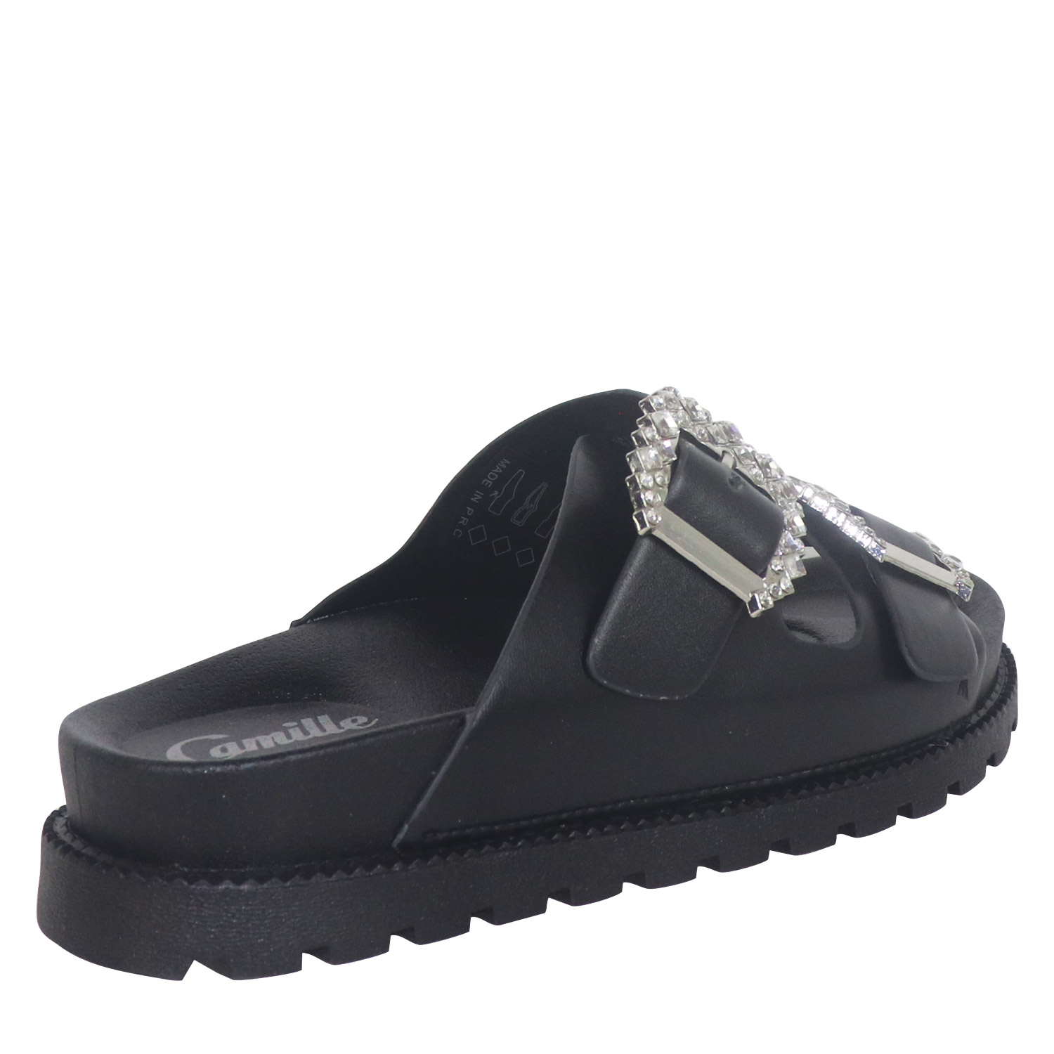 Camille γυναικείο flatform, σε μαύρο χρώμα, κατασκευασμένο από οικολογικό δέρμα. Ύψος σόλας 2.5εκ.