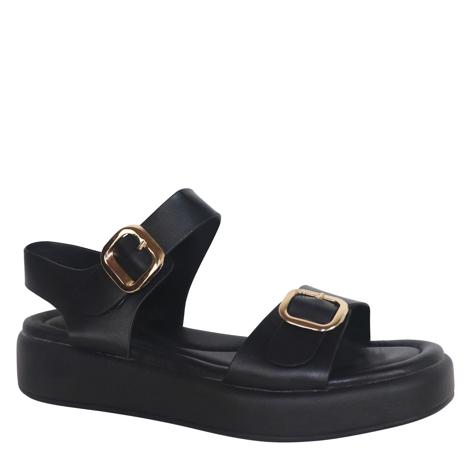 Migato γυναικείο flatform, σε μαύρο χρώμα, κατασκευασμένο από οικολογικό δέρμα. Ύψος σόλας 4εκ.