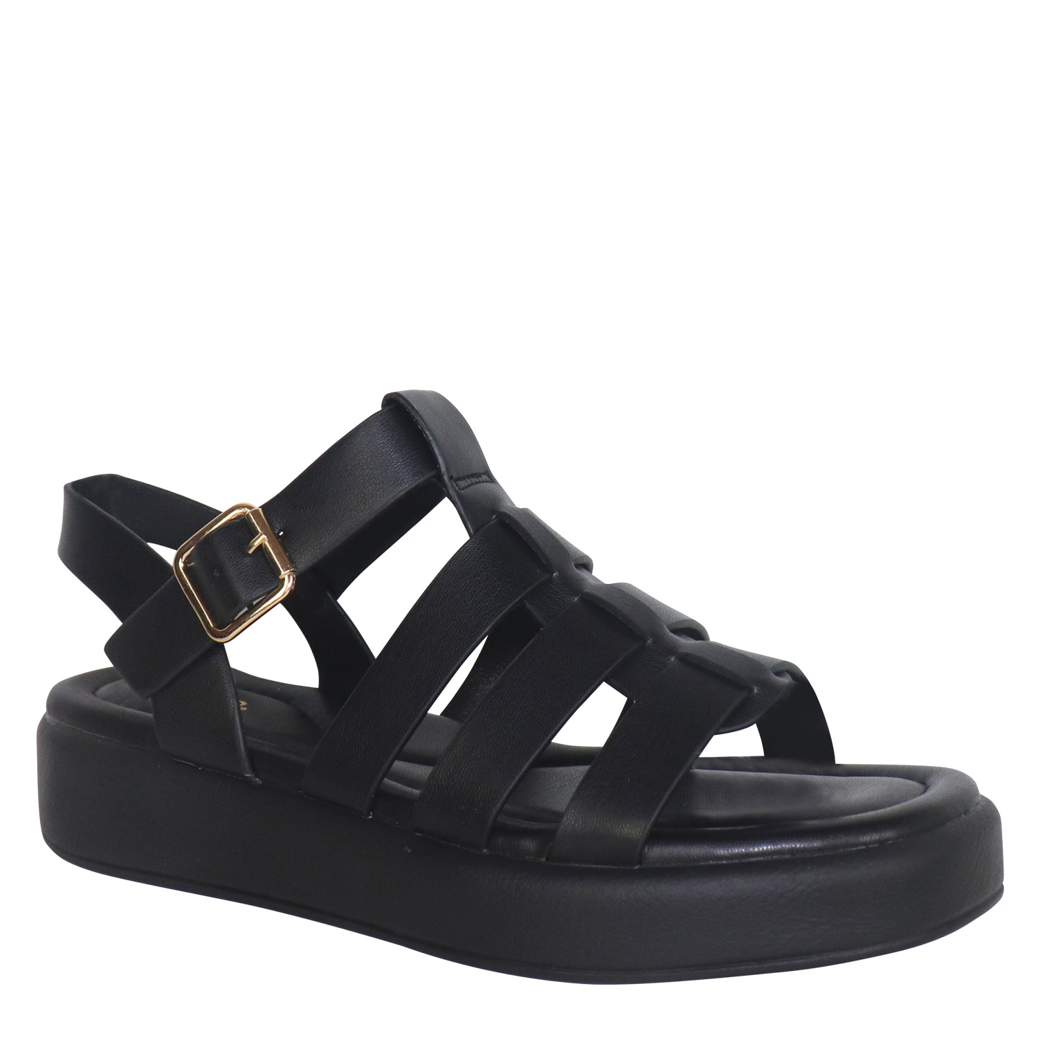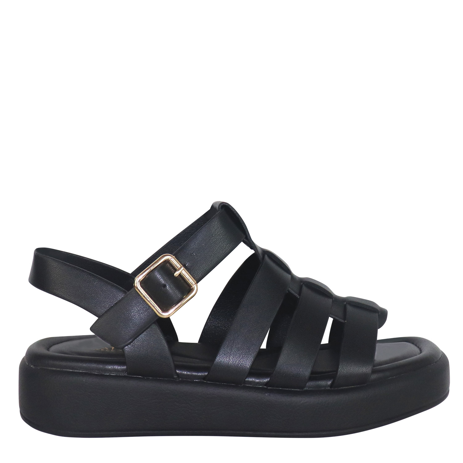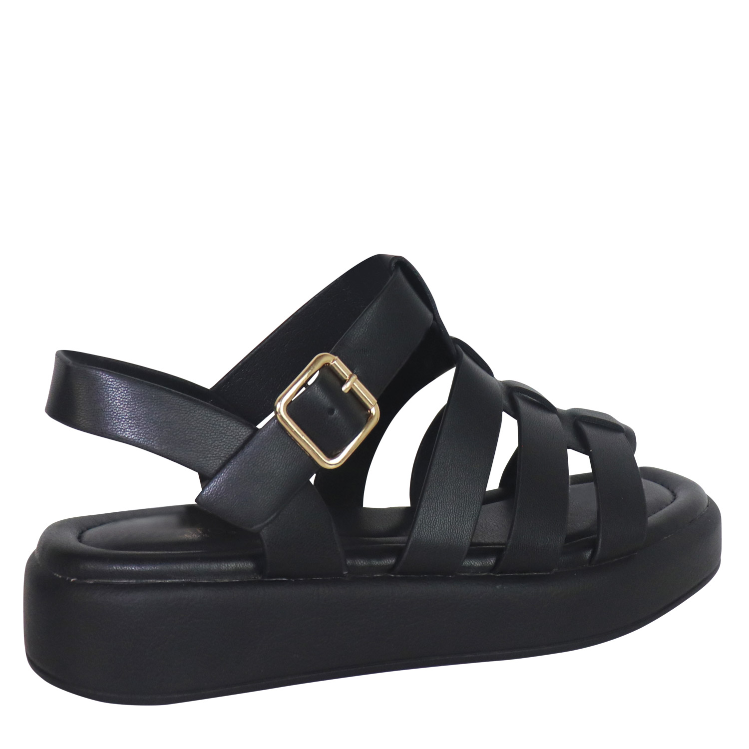 Migato γυναικείο flatform, σε μαύρο χρώμα, κατασκευασμένο από οικολογικό δέρμα. Ύψος σόλας 4εκ.