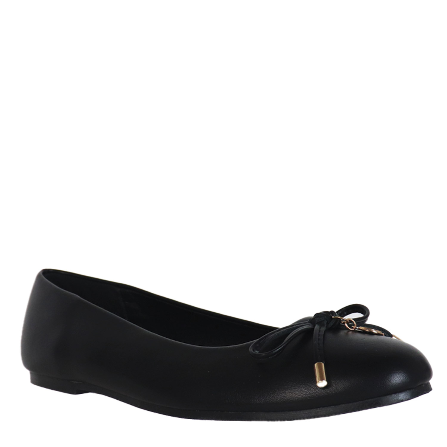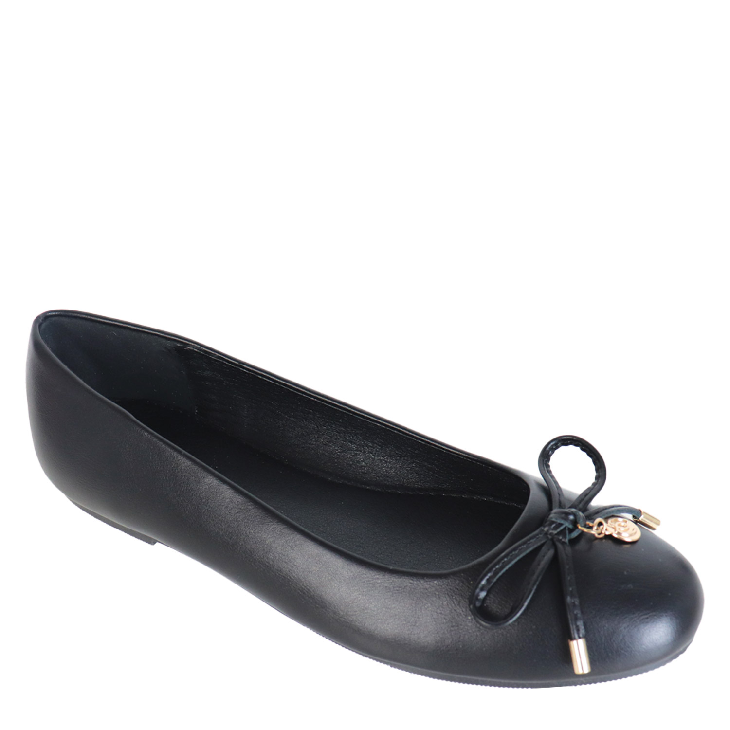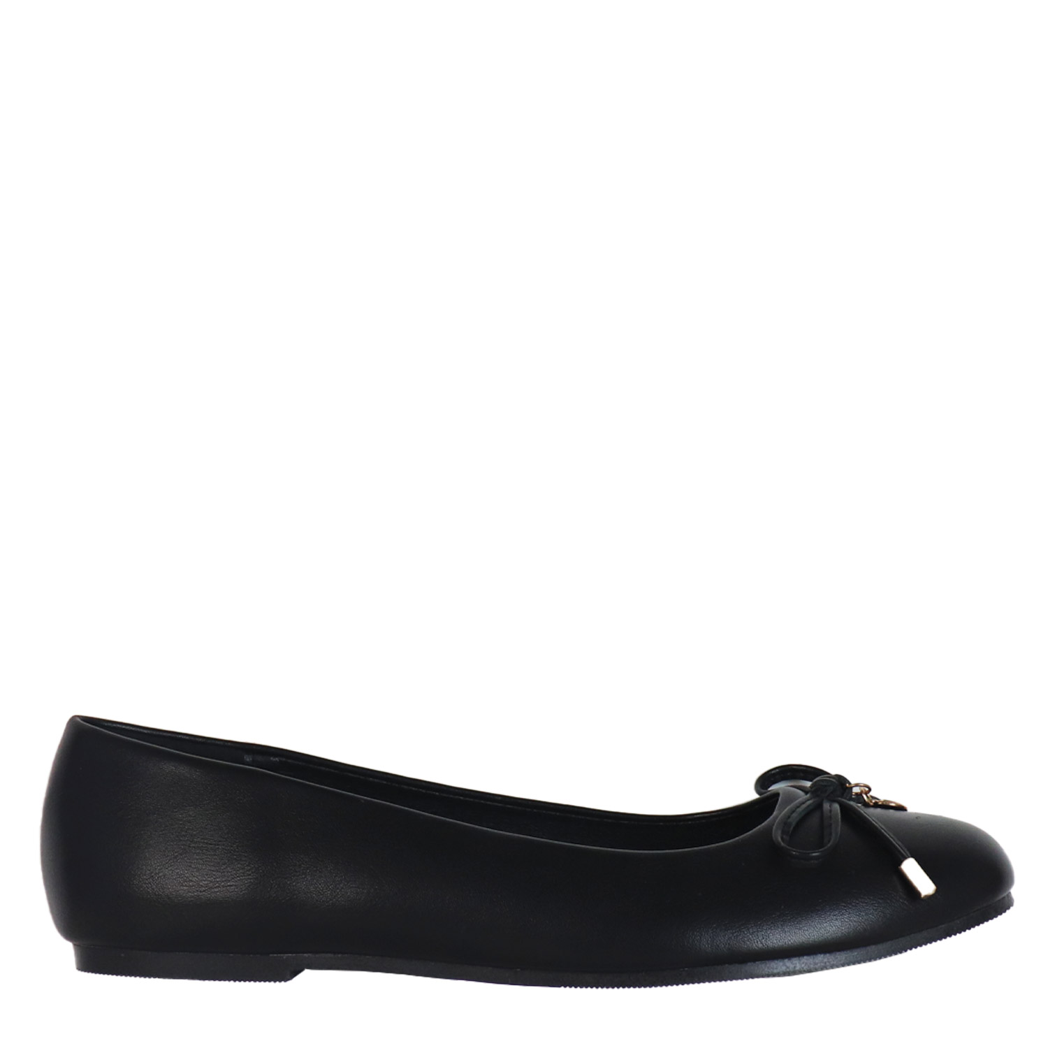 Migato γυναικεία μπαλαρίνα, σε μαύρο χρώμα, κατασκευασμένη από οικολογικό δέρμα. Ύψος σόλας 1εκ.