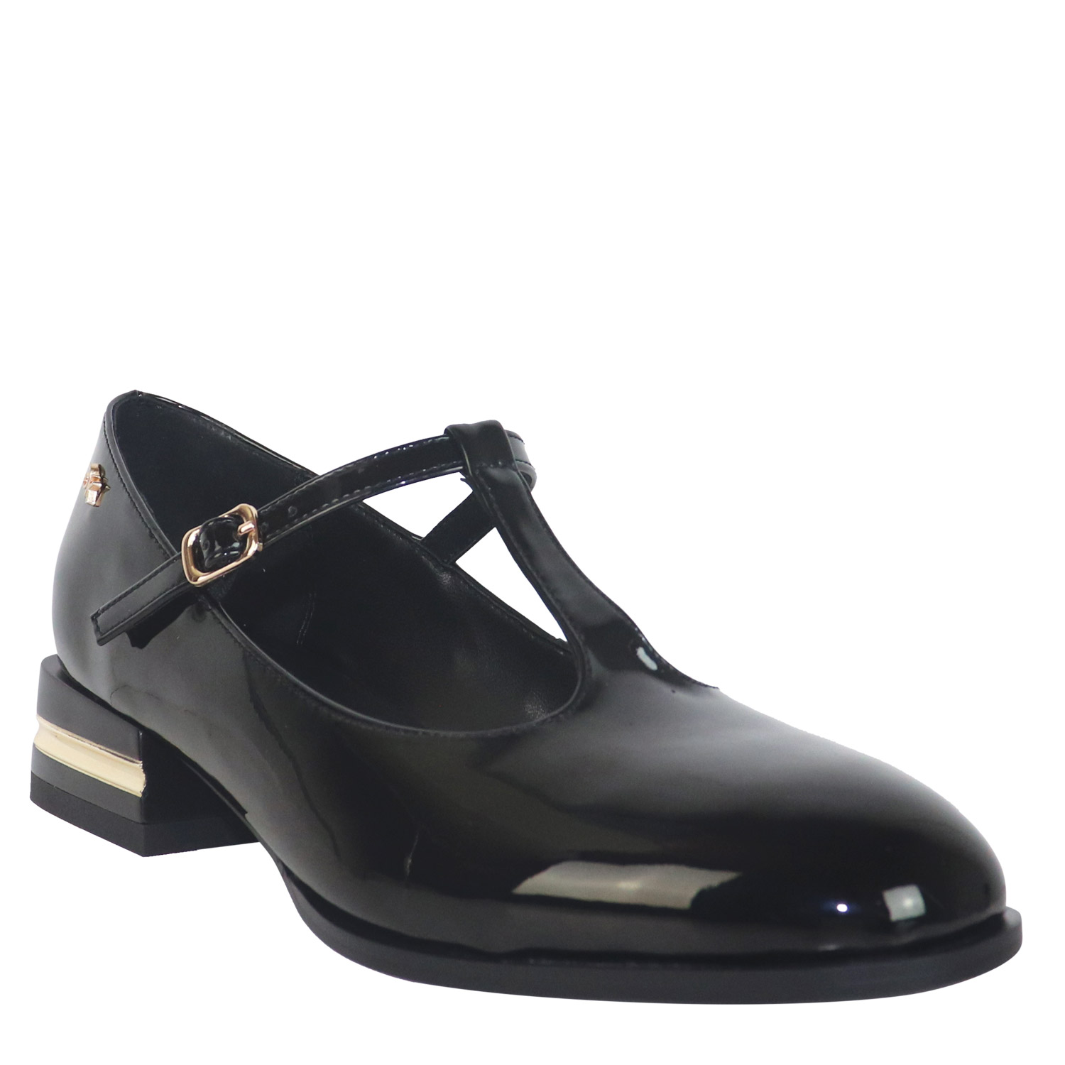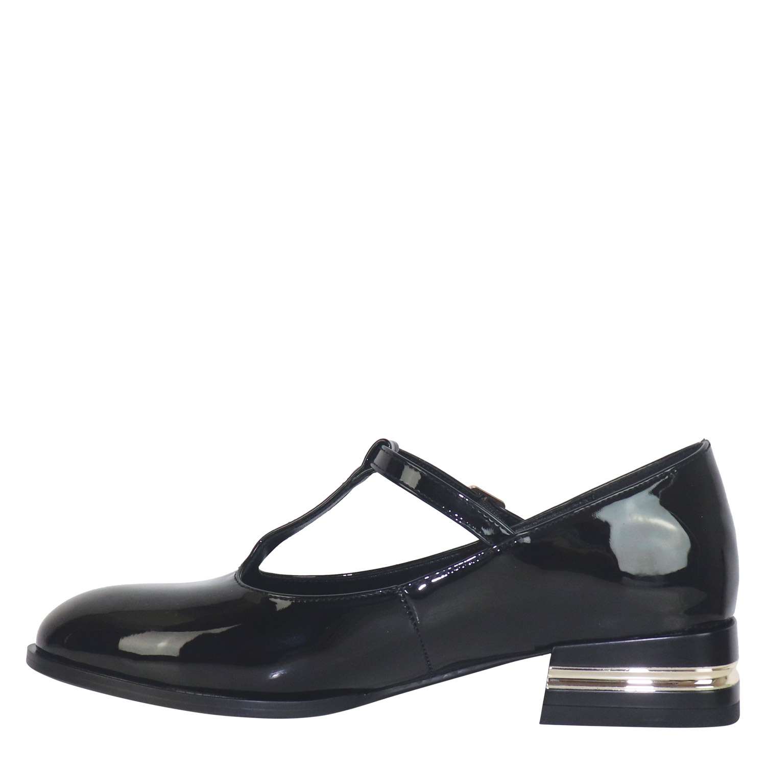 Gianna Kazakou γυναικεία μπαλαρίνα, σε μαύρο χρώμα, κατασκευασμένη από λουστρίνι.  Ύψος τακουνιού 3.5εκ.