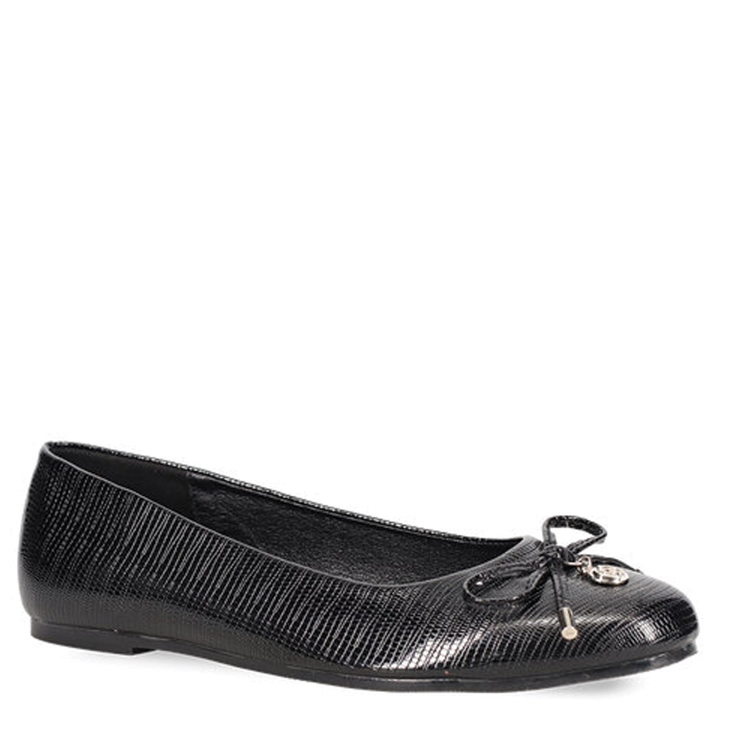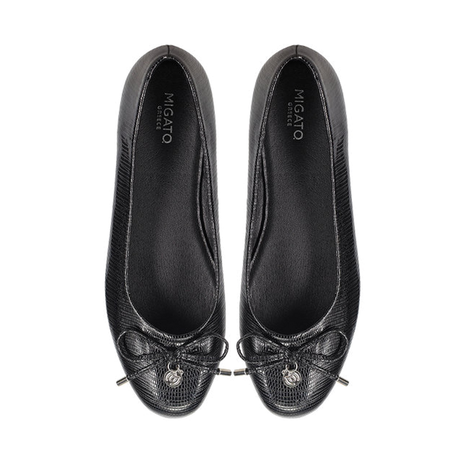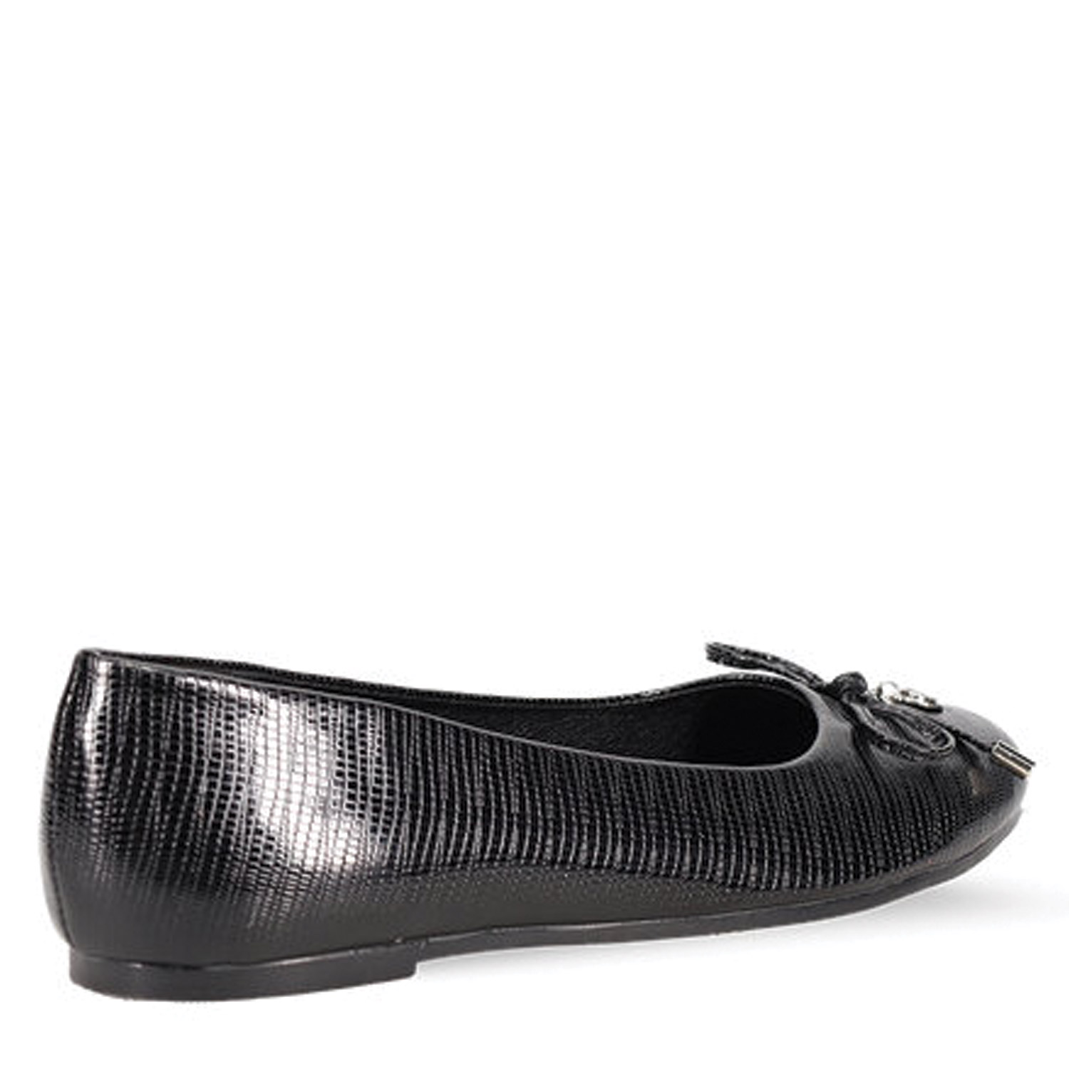 Μαύρη μπαλαρίνα με υφή lizard και διακοσμητικό φιογκάκι.