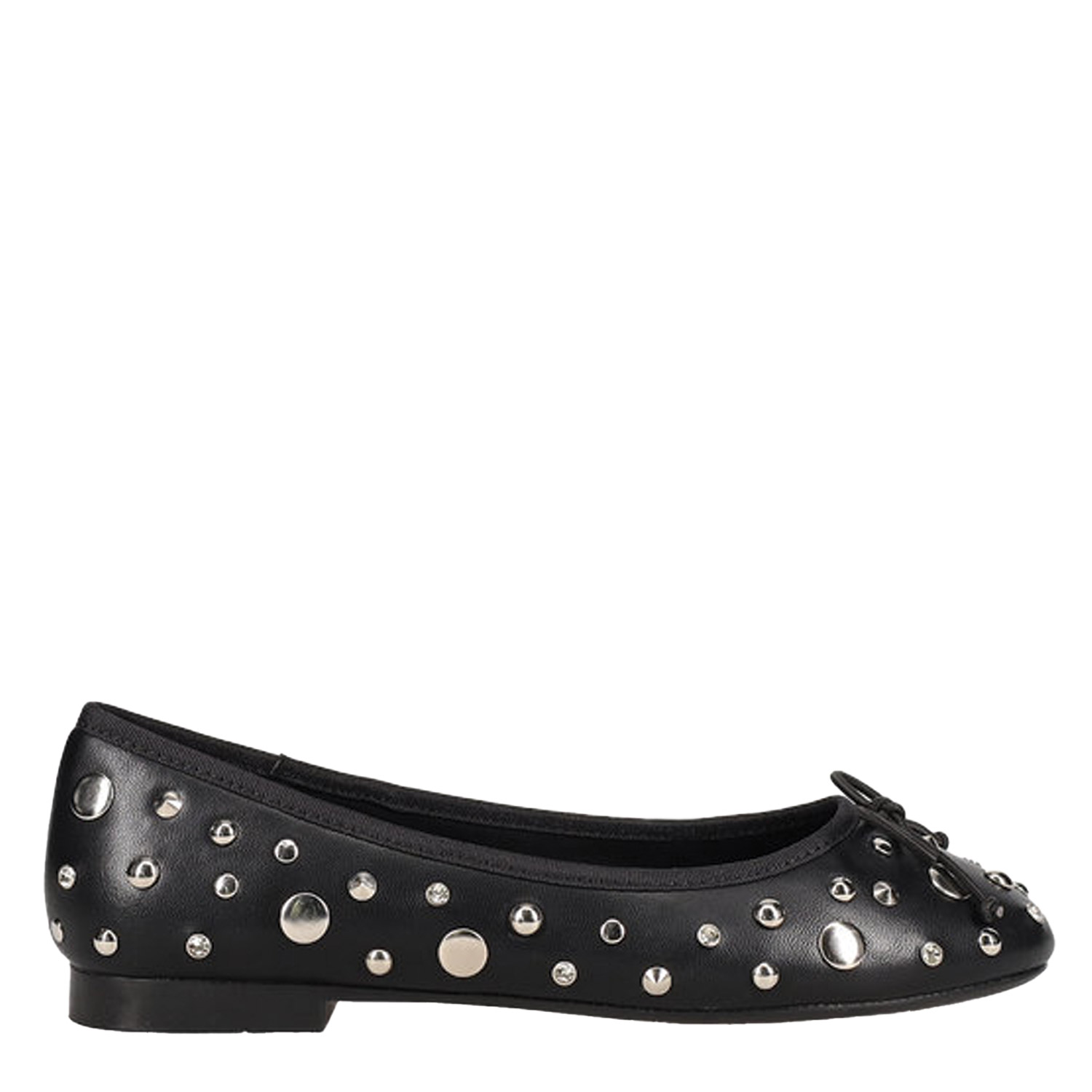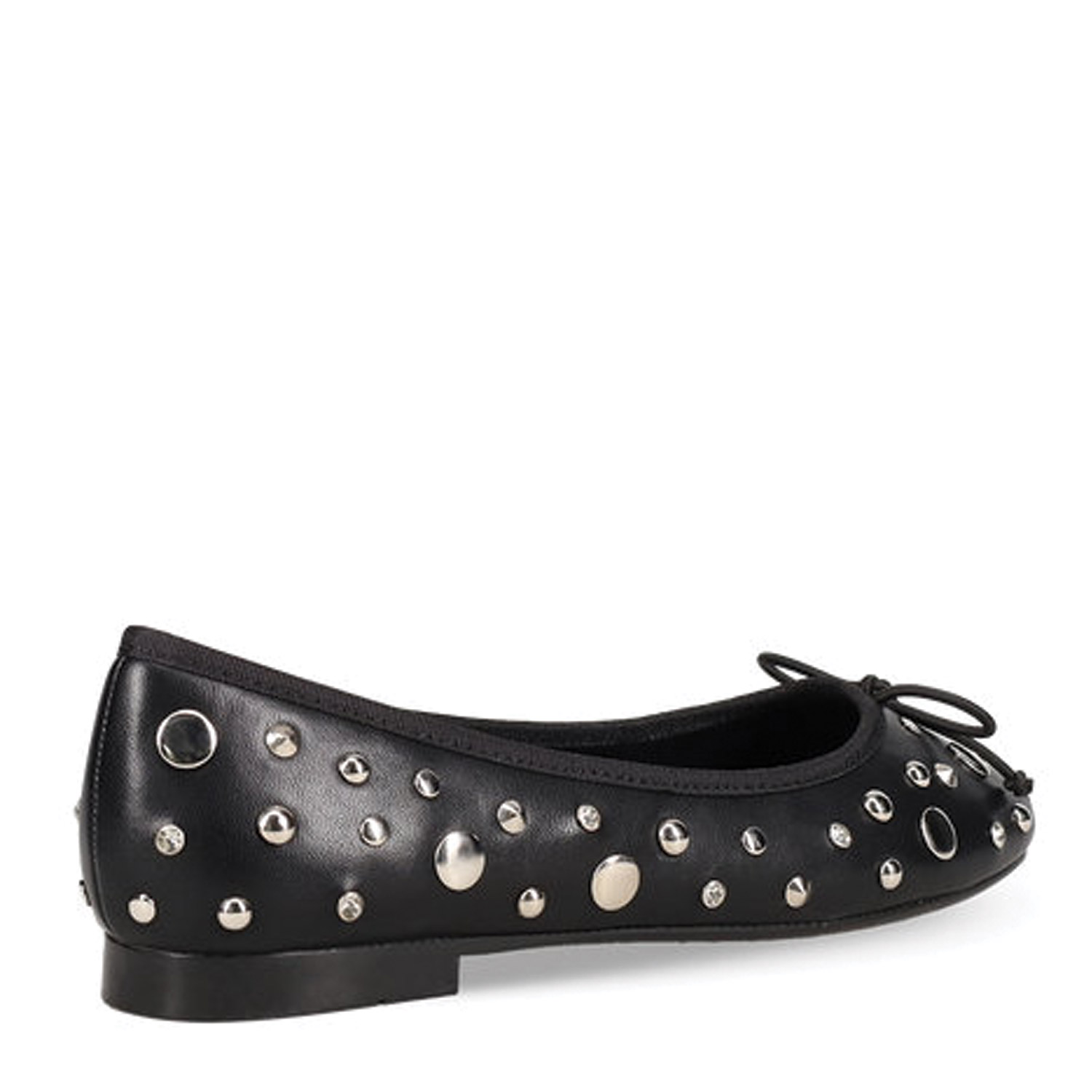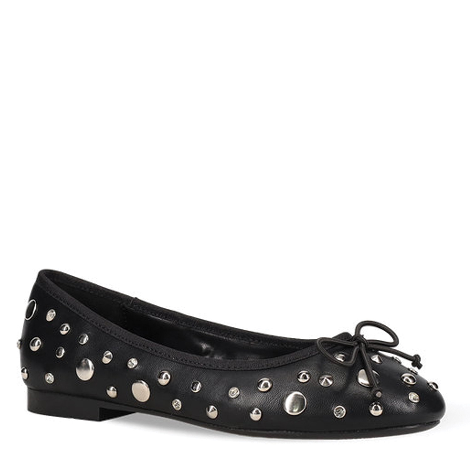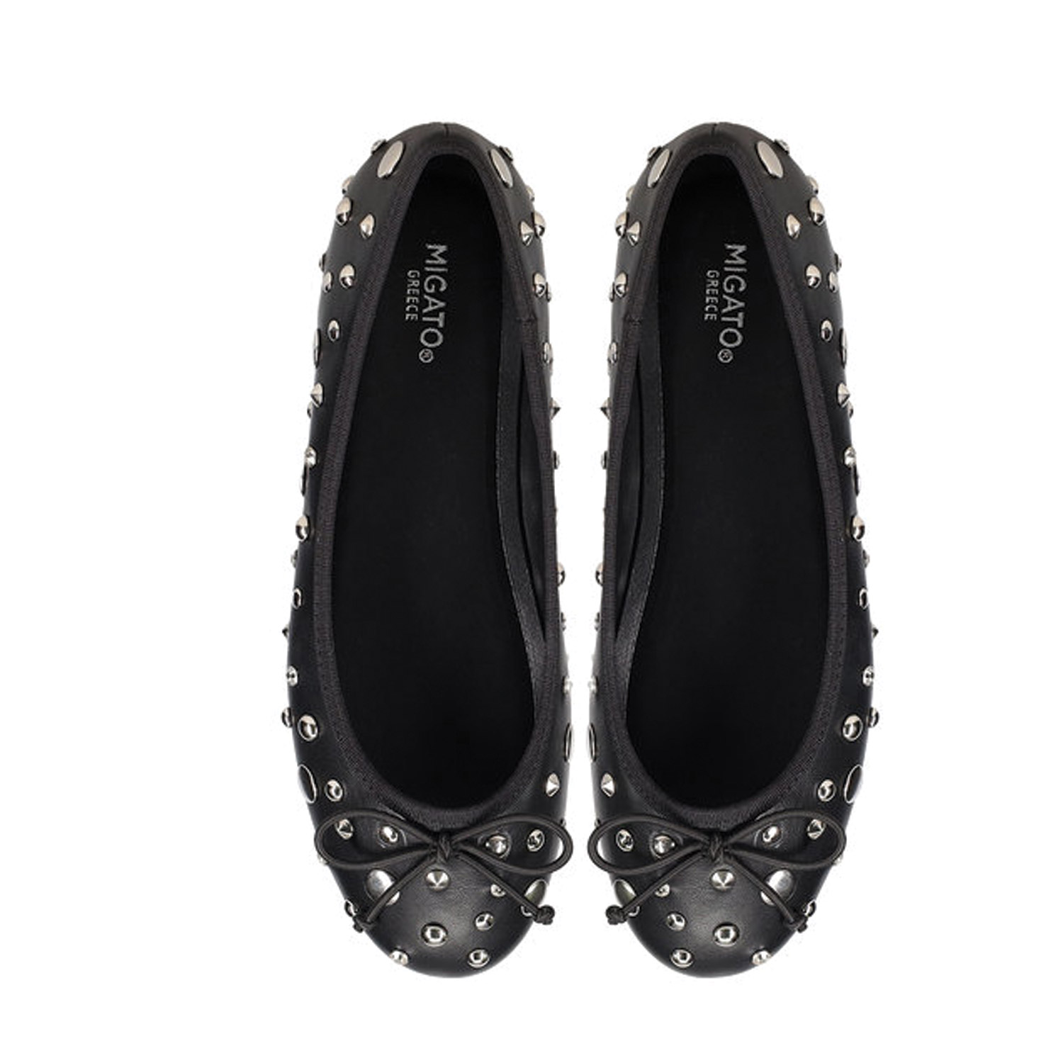 Μαύρη μπαλαρίνα. Διαθέτει μαλακό μαξιλαράκι στη σόλα, διακοσμητικά τρουκς και φιογκάκι.