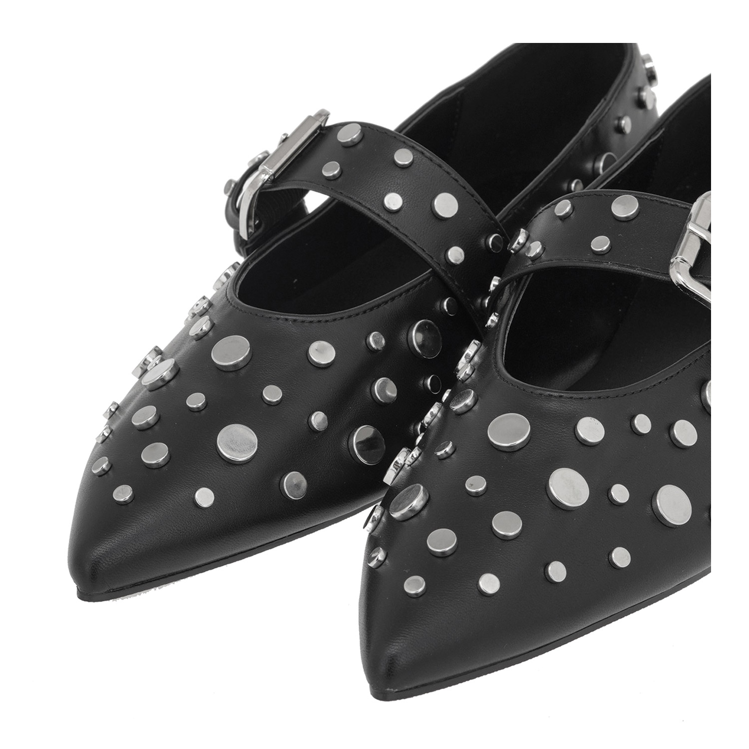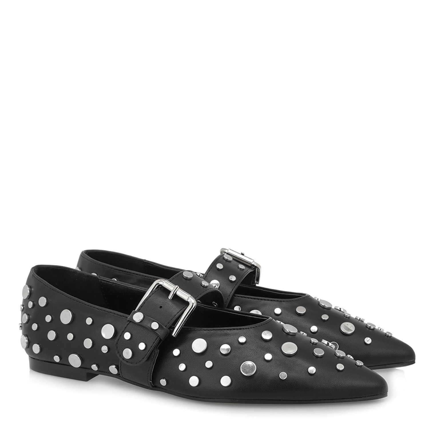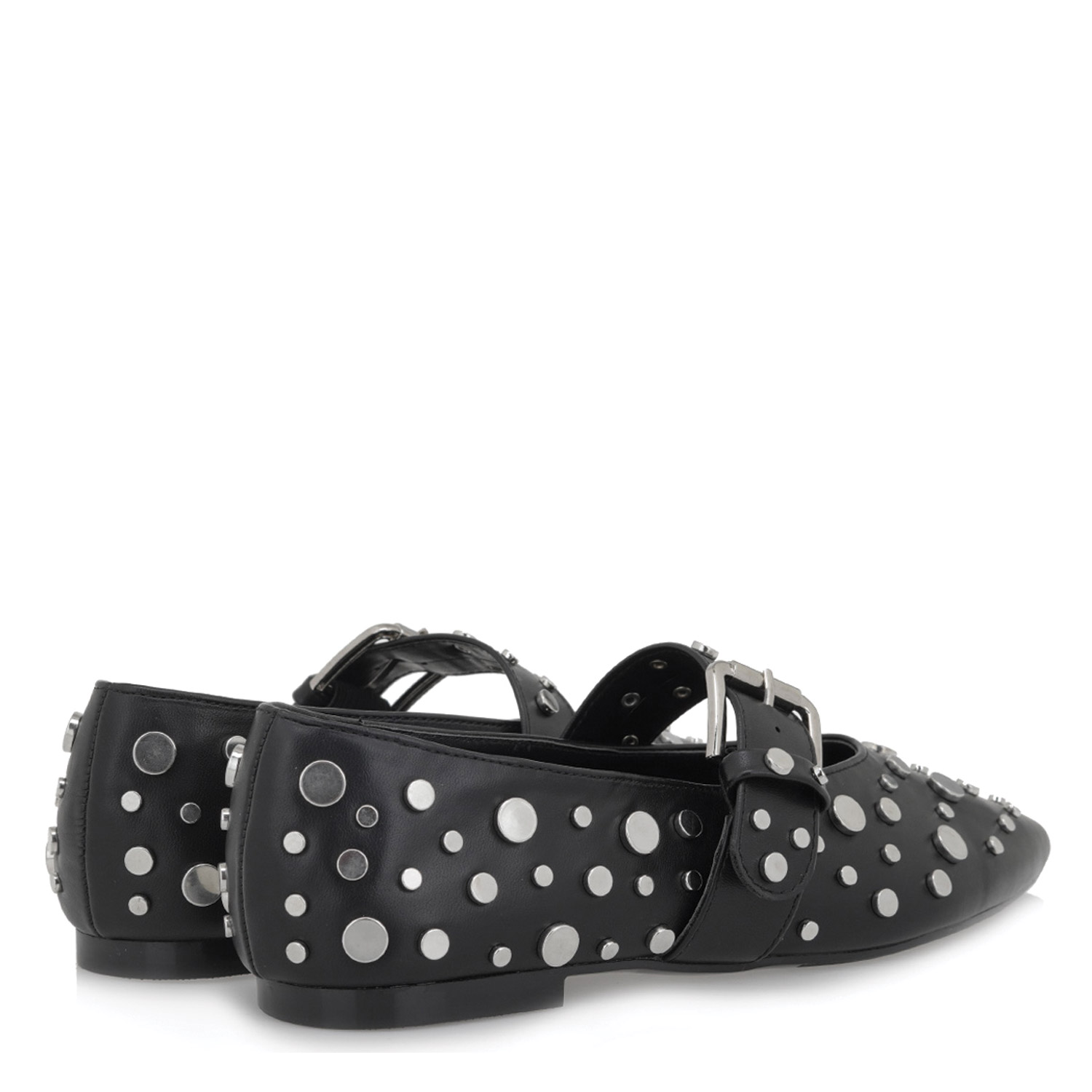 Exe γυναικεία μπαλαρίνα, σε μαύρο χρώμα, κατασκευασμένη από οικολογικό δέρμα.  Ύψος τακουνιού 1εκ.