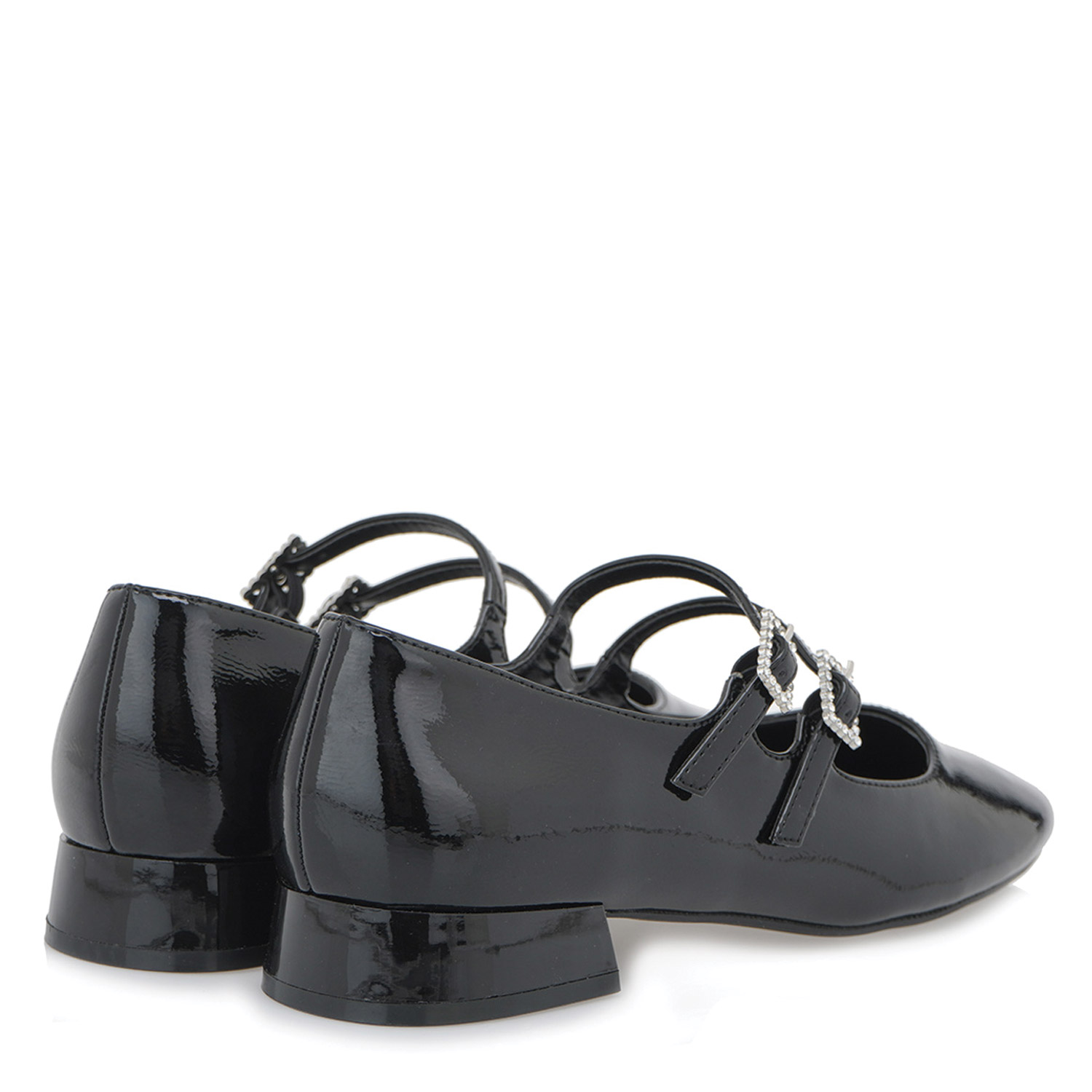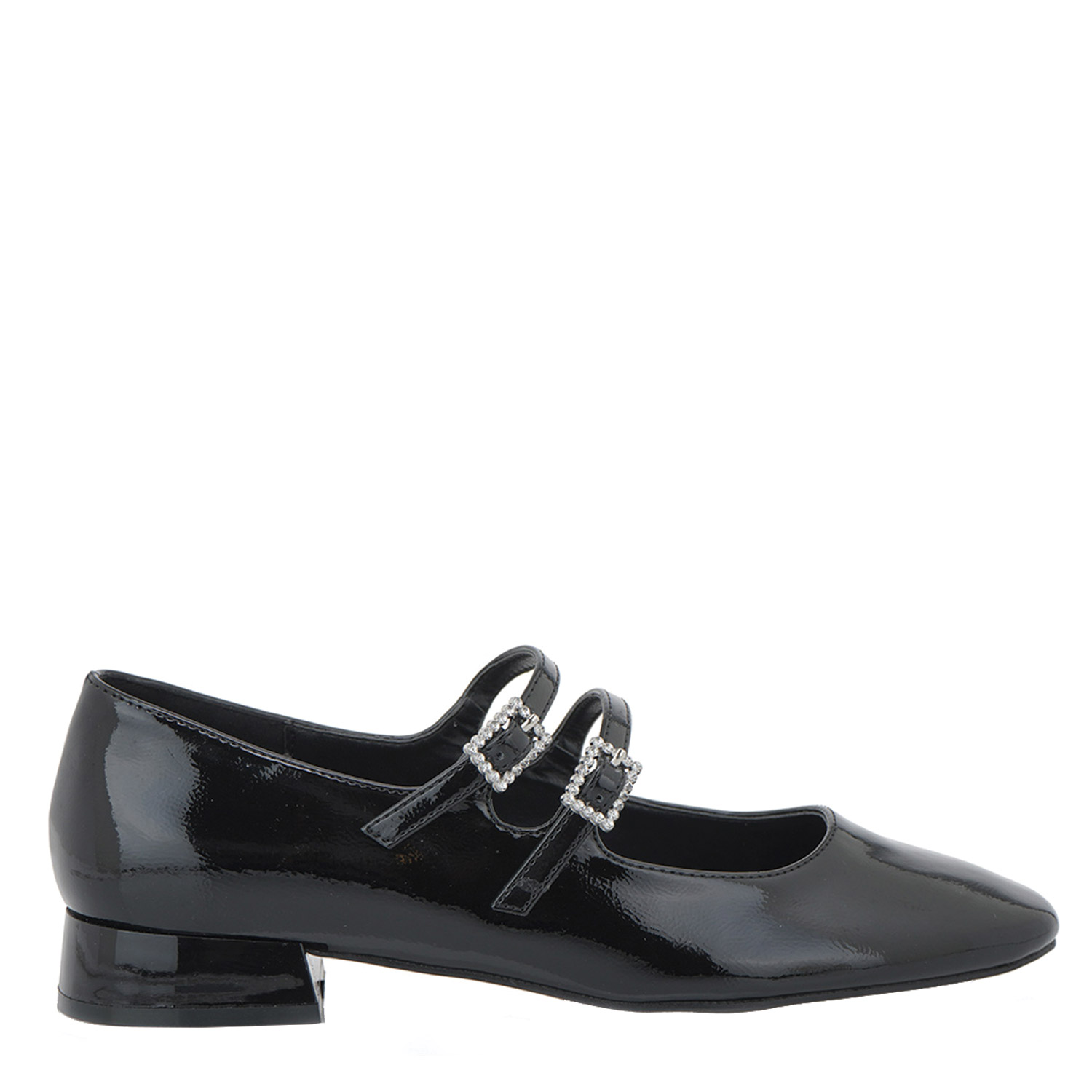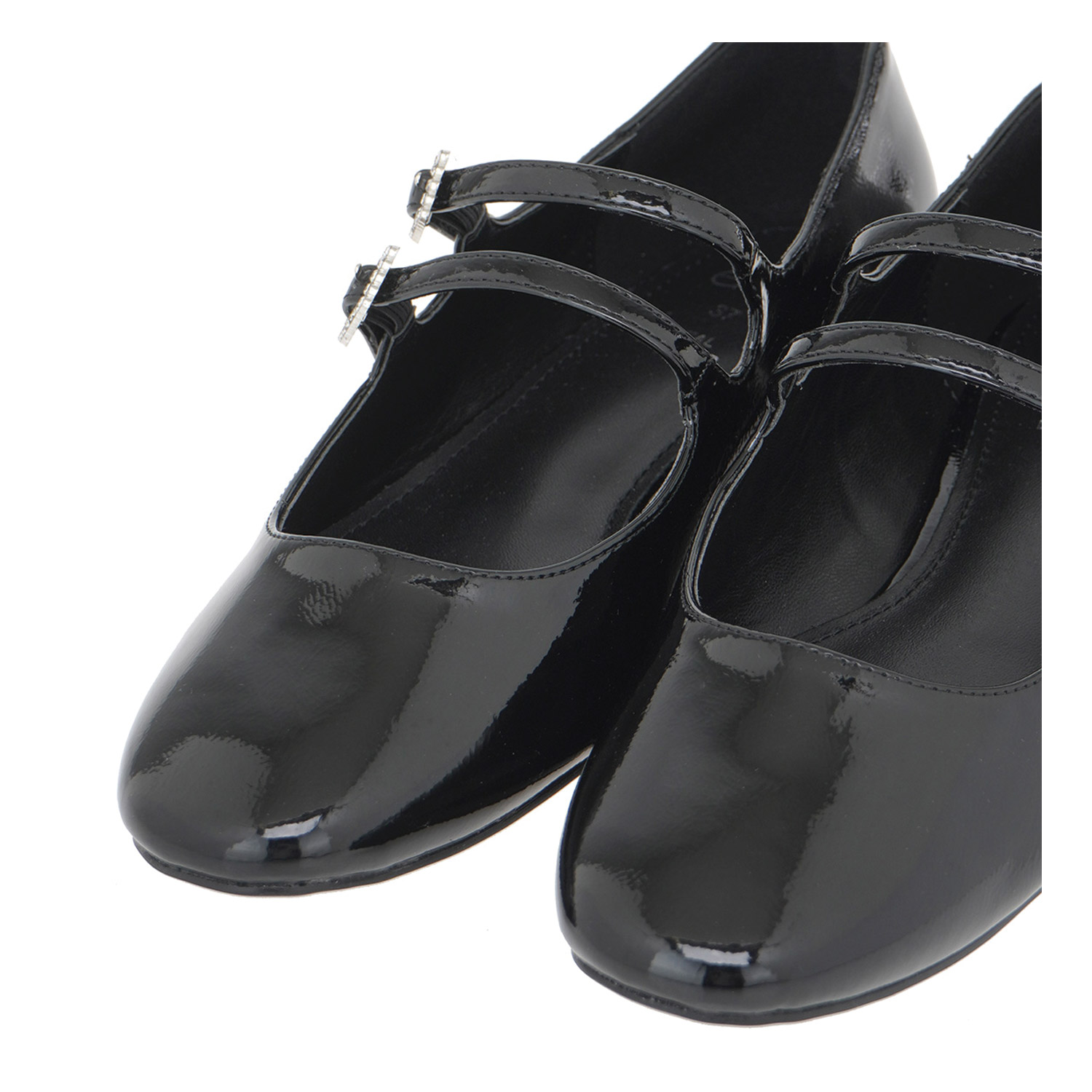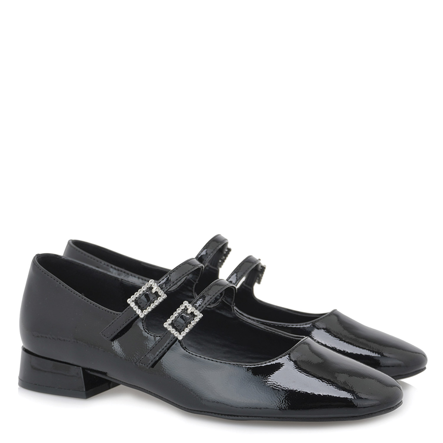 Exe γυναικεία μπαλαρίνα, σε μαύρο χρώμα, κατασκευασμένη από λουστρίνι.  Ύψος τακουνιού 2,5εκ.
