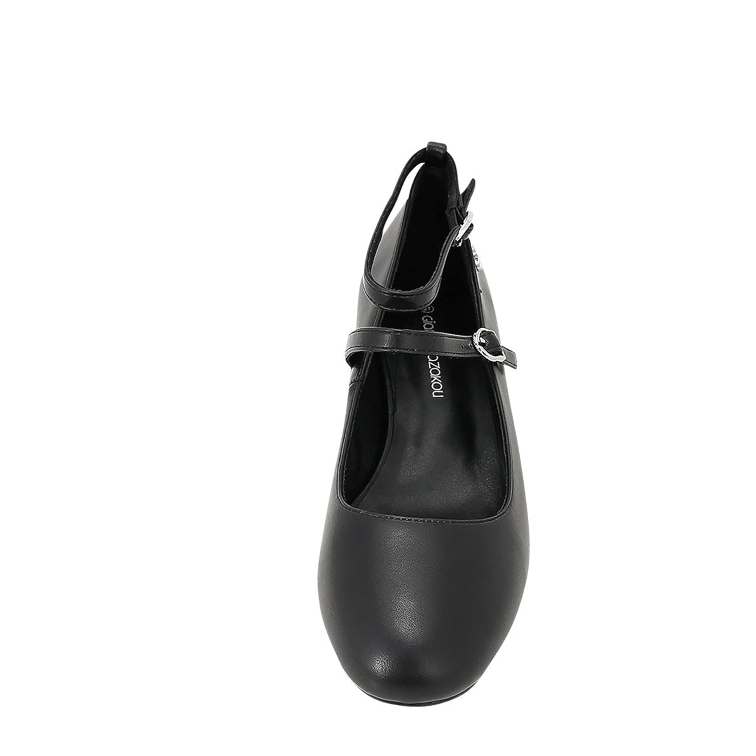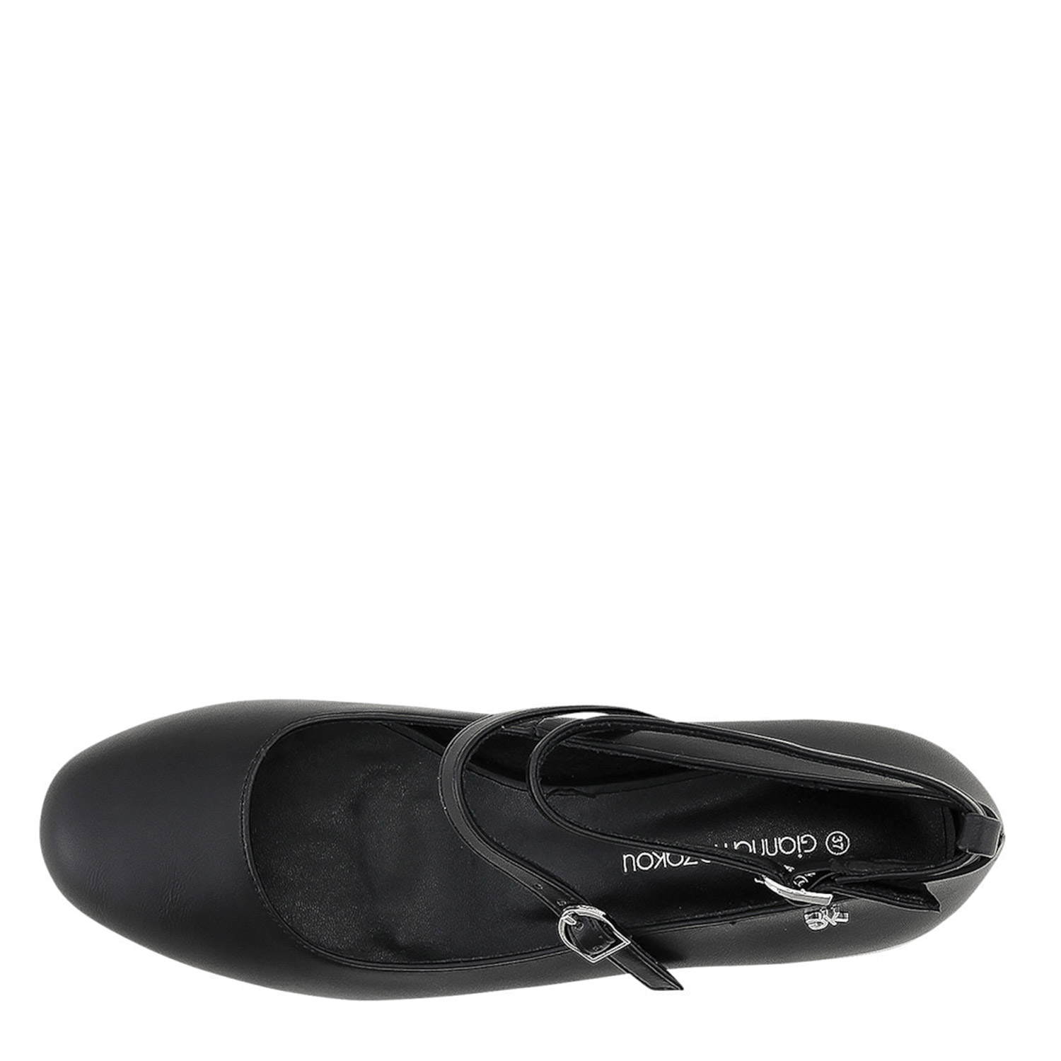 Gianna Kazakou γυναικεία μπαλαρίνα, σε μαύρο χρώμα, κατασκευασμένη από οικολογικό δέρμα.  Ύψος τακουνιού 4εκ.