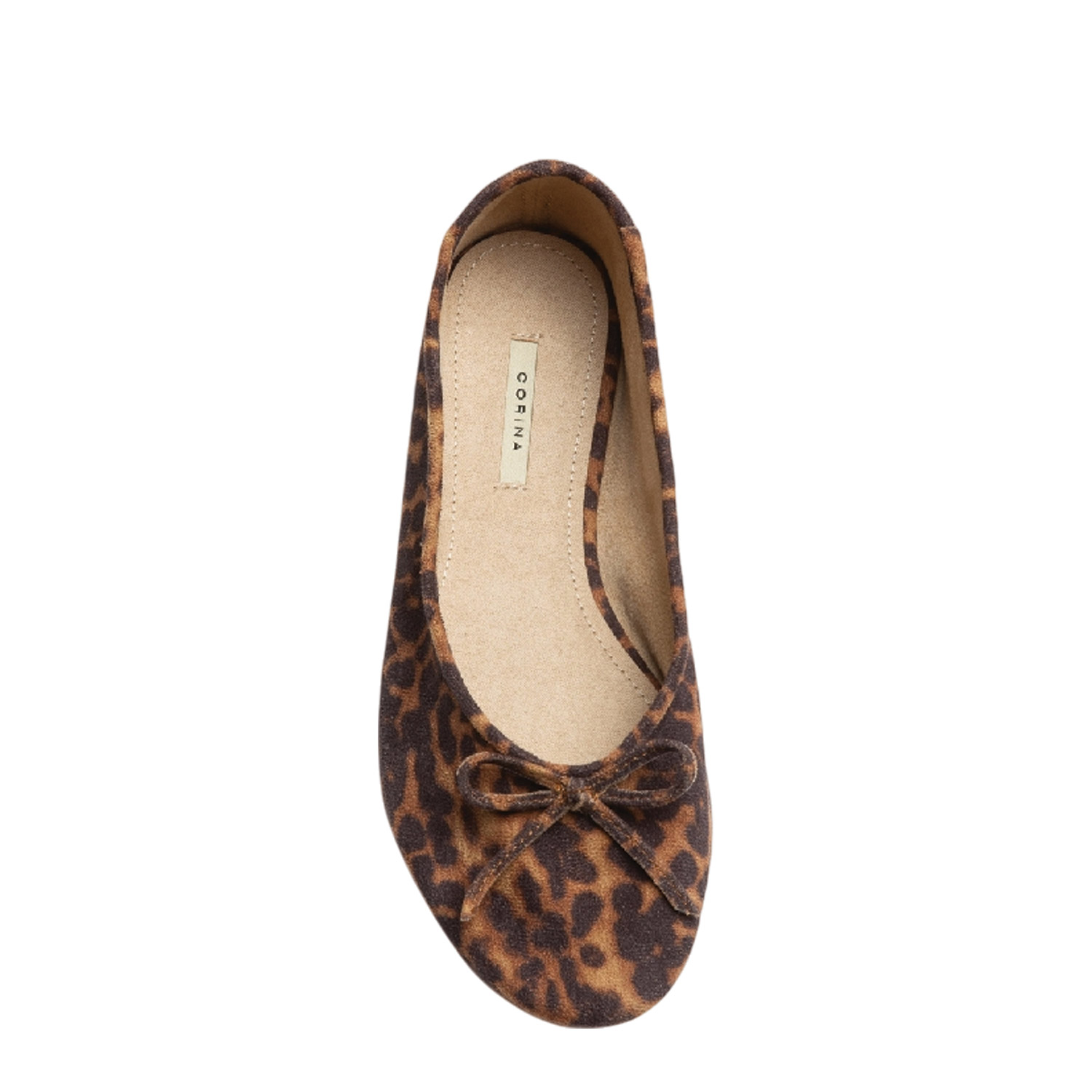 Corina γυναικεία μπαλαρίνα, σε λεοπάρ χρώμα, κατασκευασμένη από ύφασμα.