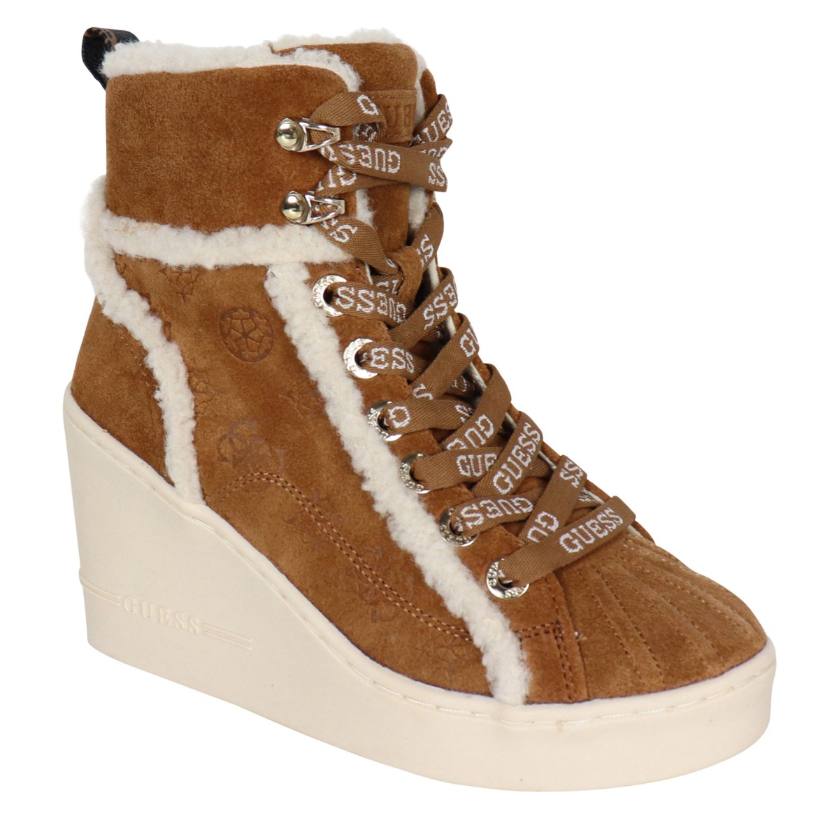 Guess γυναικείο μποτάκι σε tabac χρώμα κατασκευασμένο από δέρμα καστόρι. Ύψος σόλας 8.5εκ.
