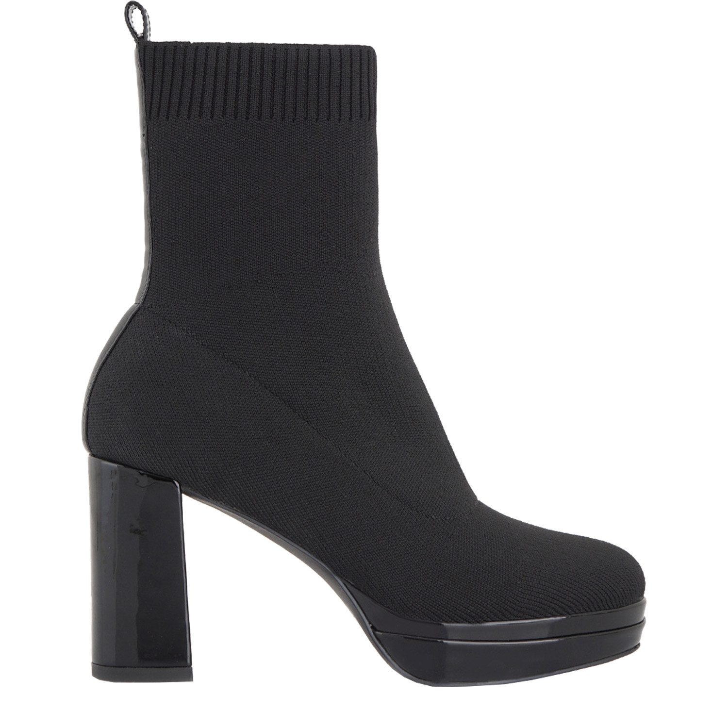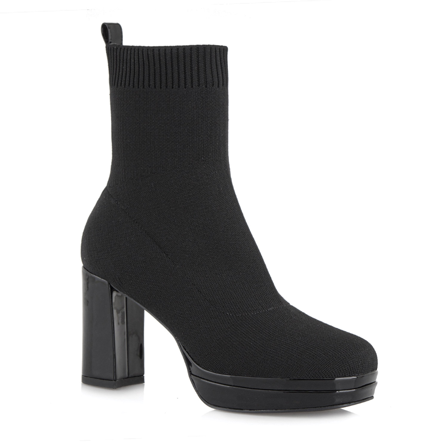 Exe γυναικείο μποτάκι, σε μαύρο χρώμα, κατασκευασμένο από οικολογικό δέρμα. Ύψος τακουνιού 9εκ.