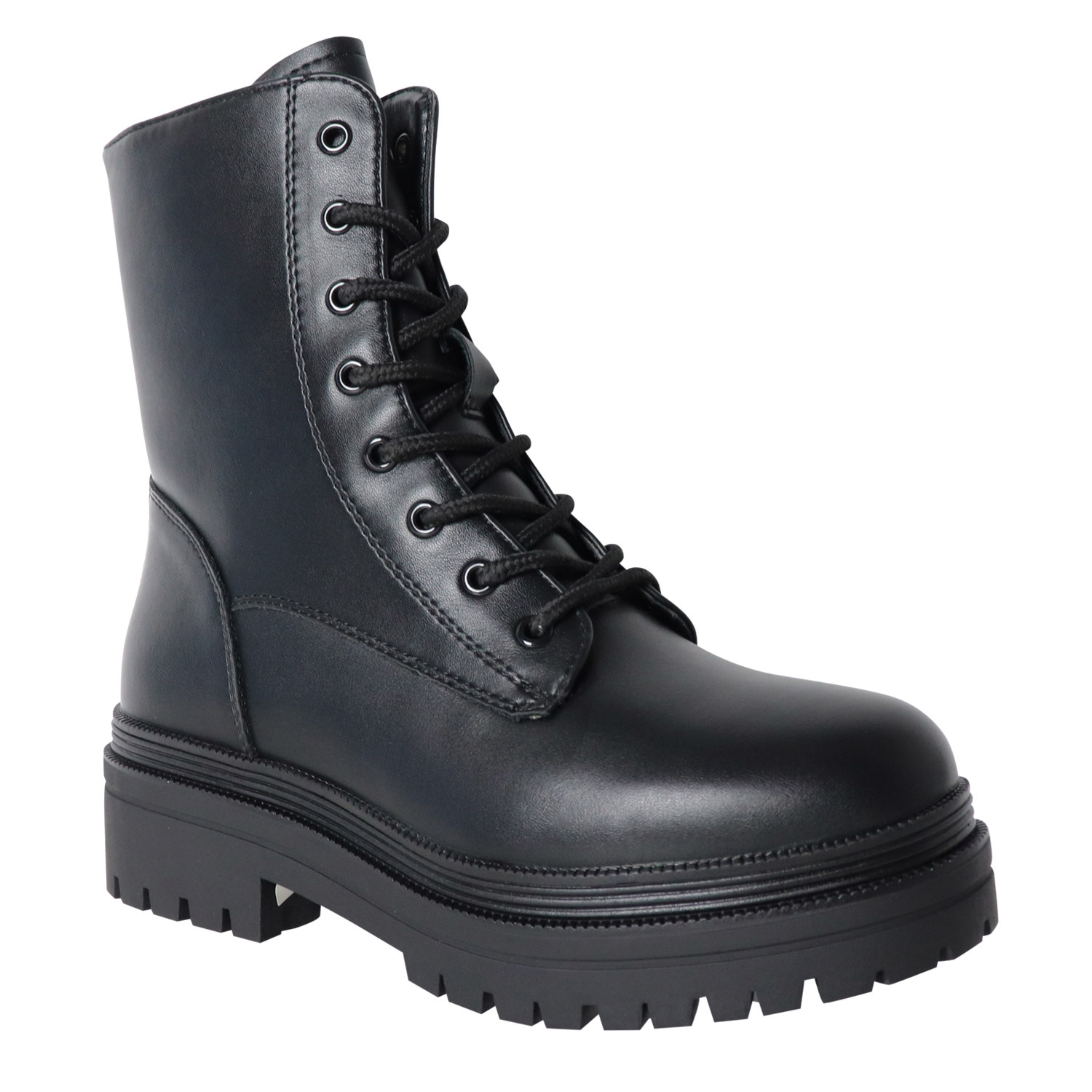 Exe γυναικείο μποτάκι, σε μαύρο χρώμα, κατασκευασμένο από οικολογικό δέρμα. Ύψος σόλας 5εκ.