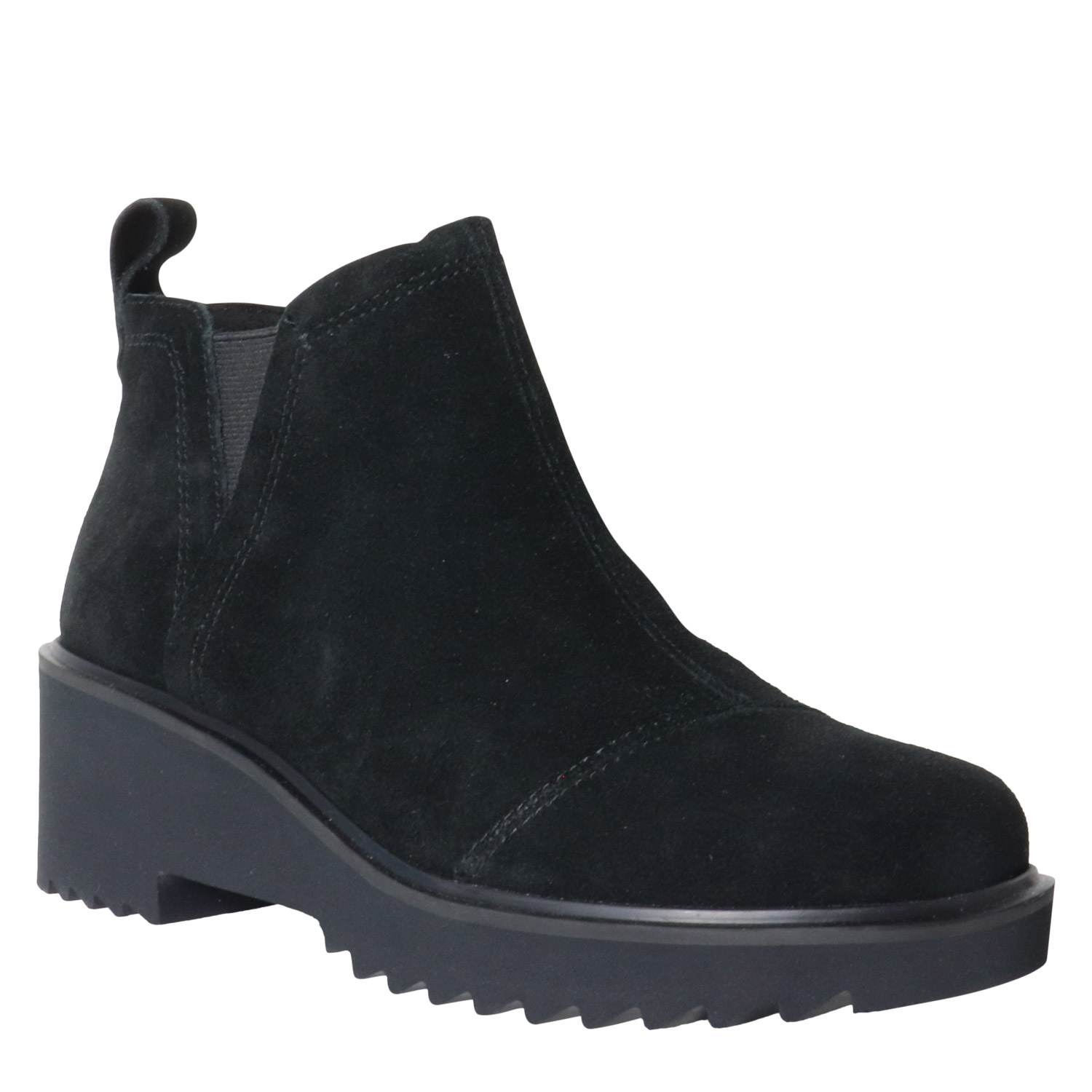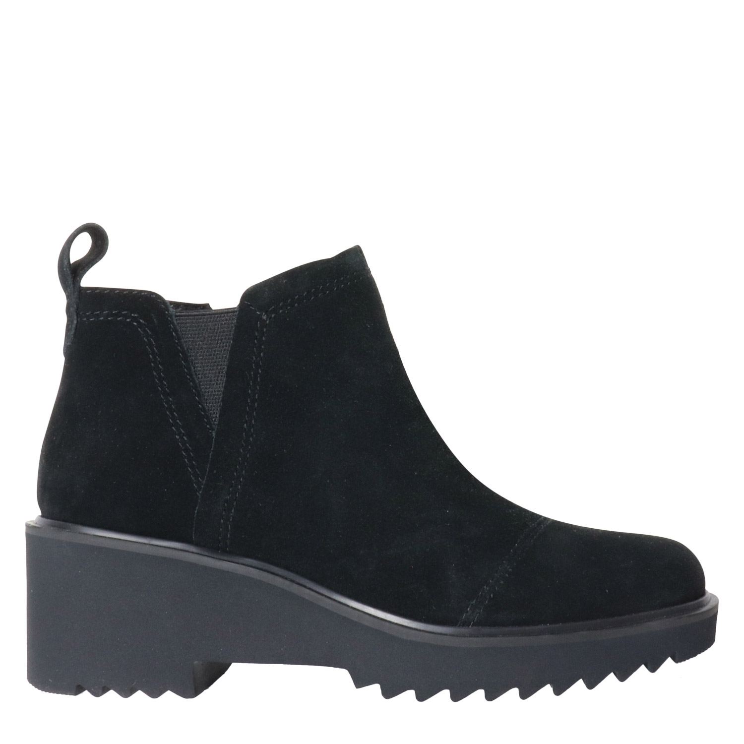 Toms γυναικείο μποτάκι, σε μαύρο χρώμα, κατασκευασμένο από δέρμα καστόρι. Ύψος σόλας 5.8εκ.